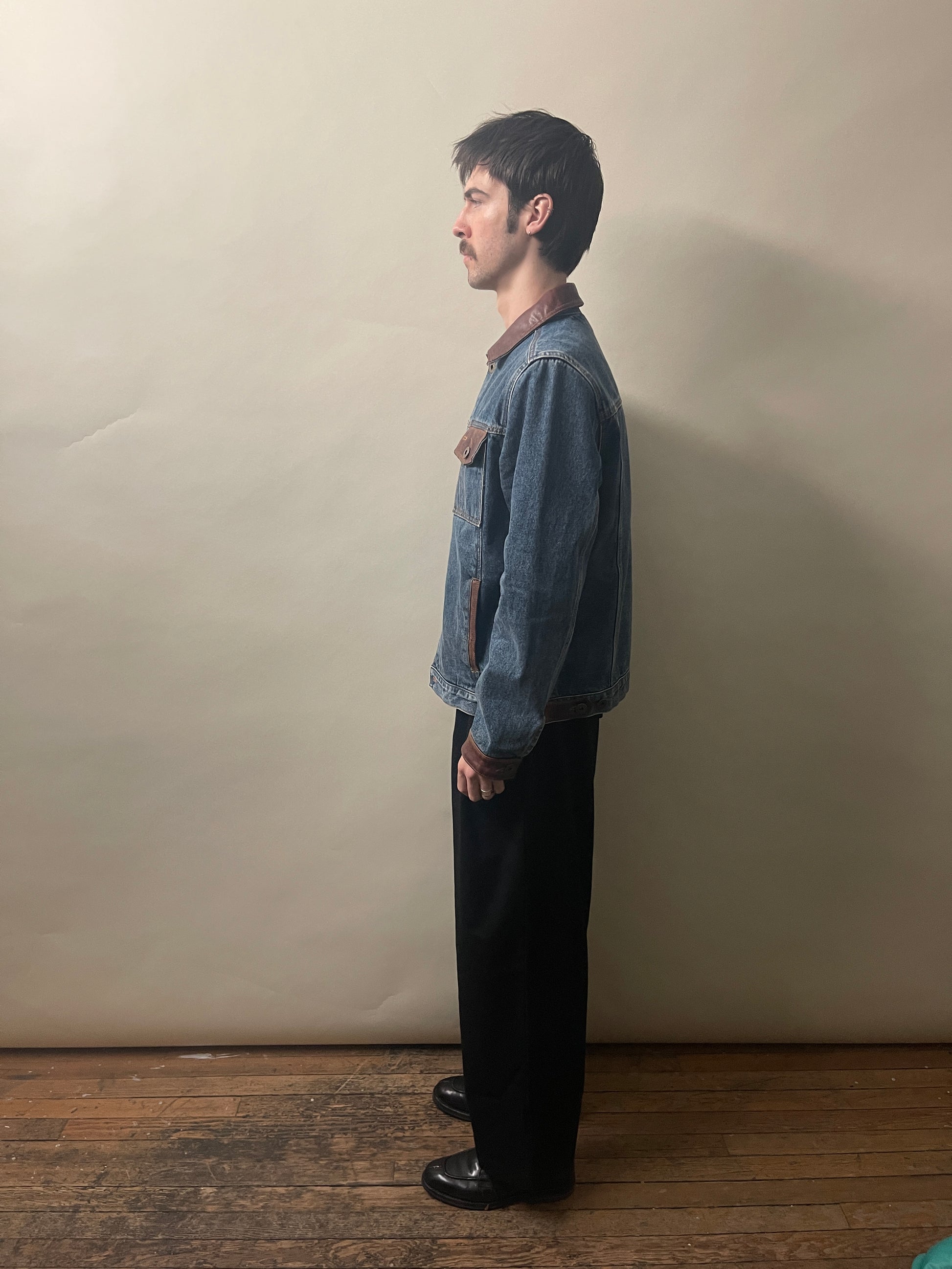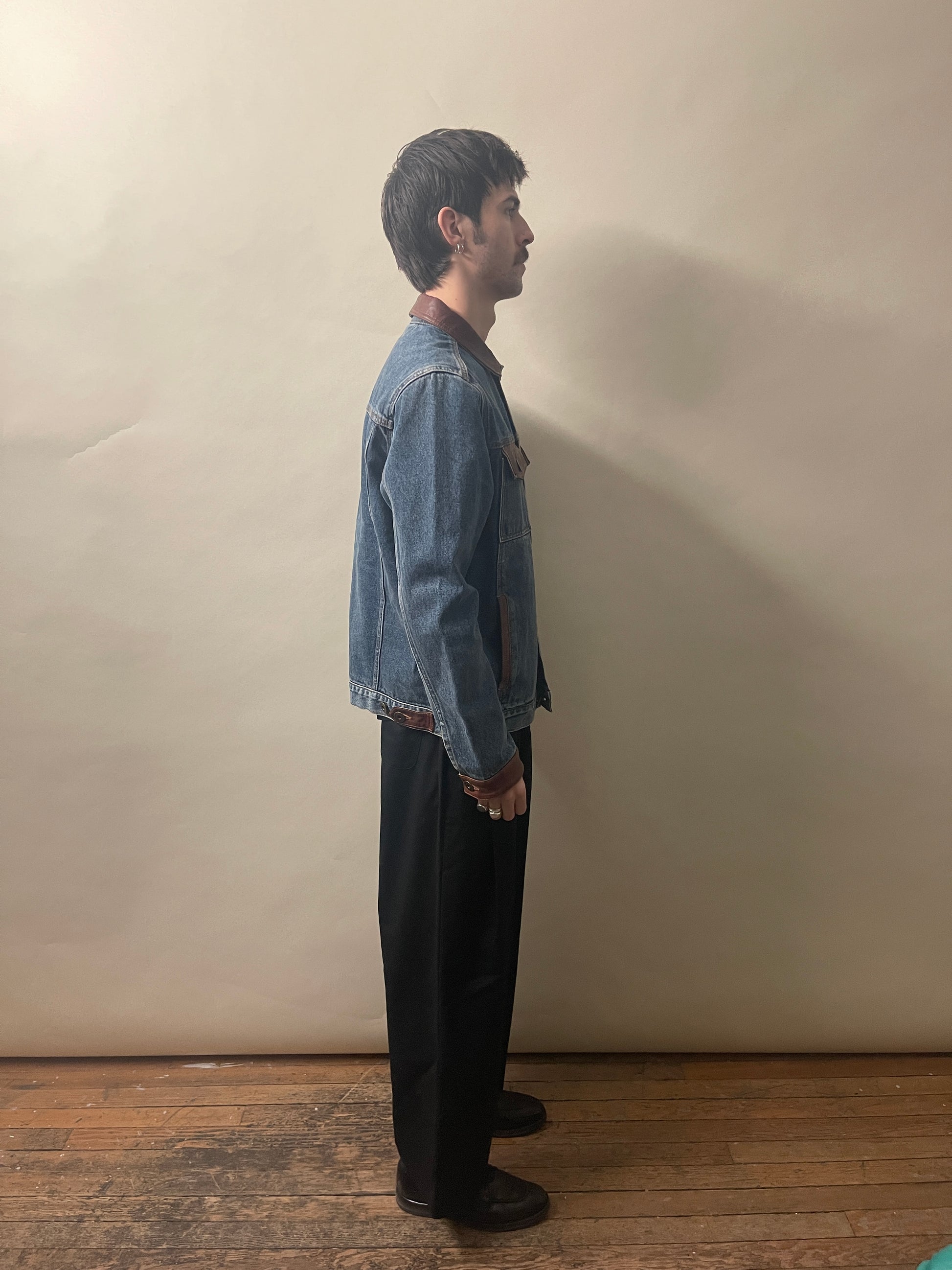Mavericks of Scottsdale Mid Blue & Brown Denim & Leather Trucker Jacket Medium - Made in India