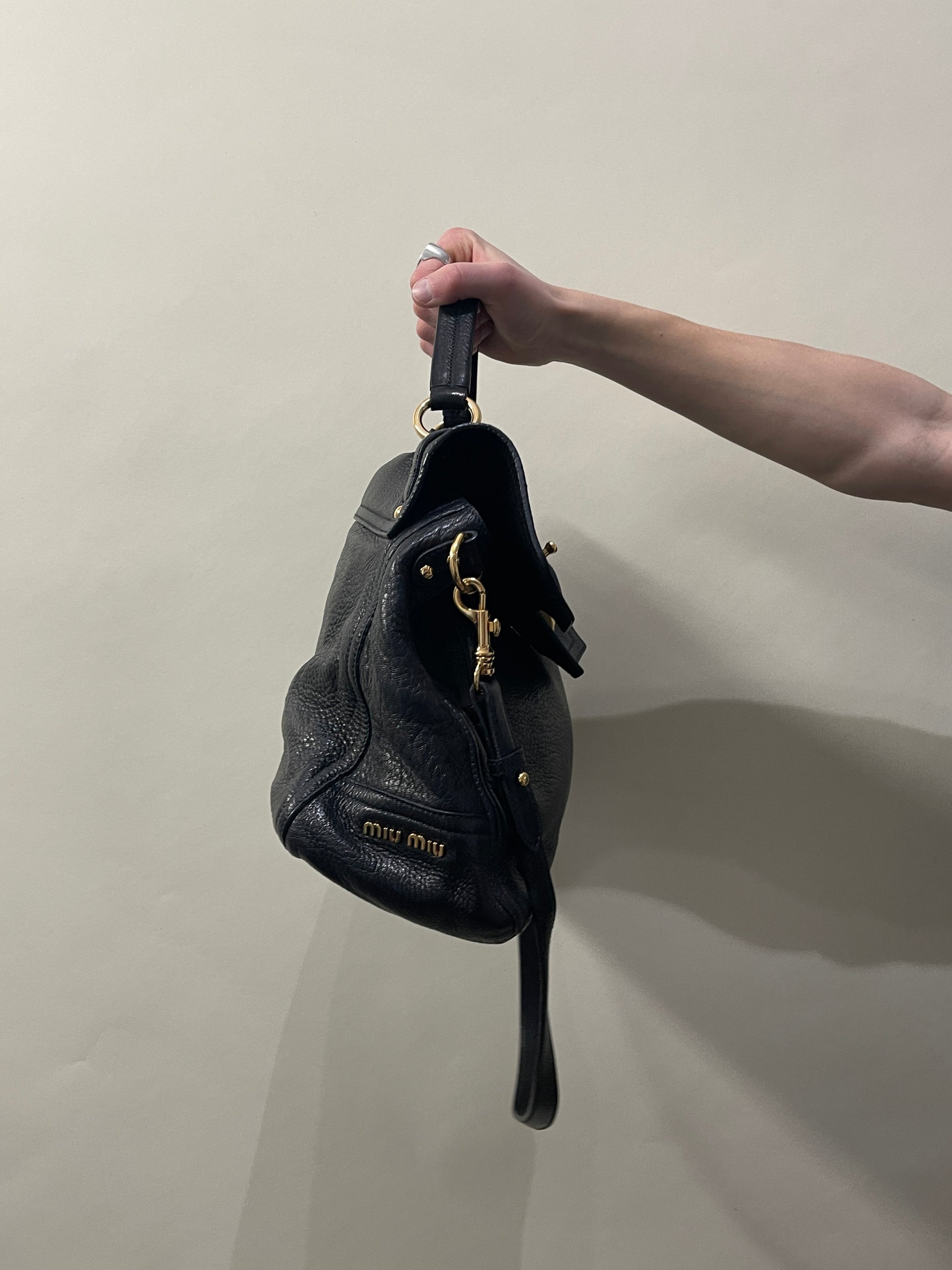 Miu Miu Black Leather Turnlock Shoulder Bag