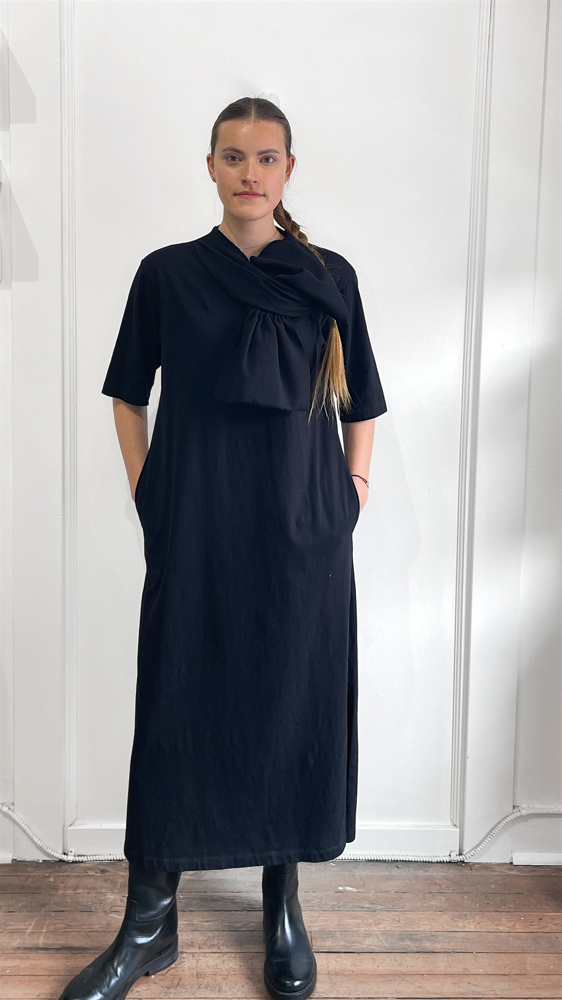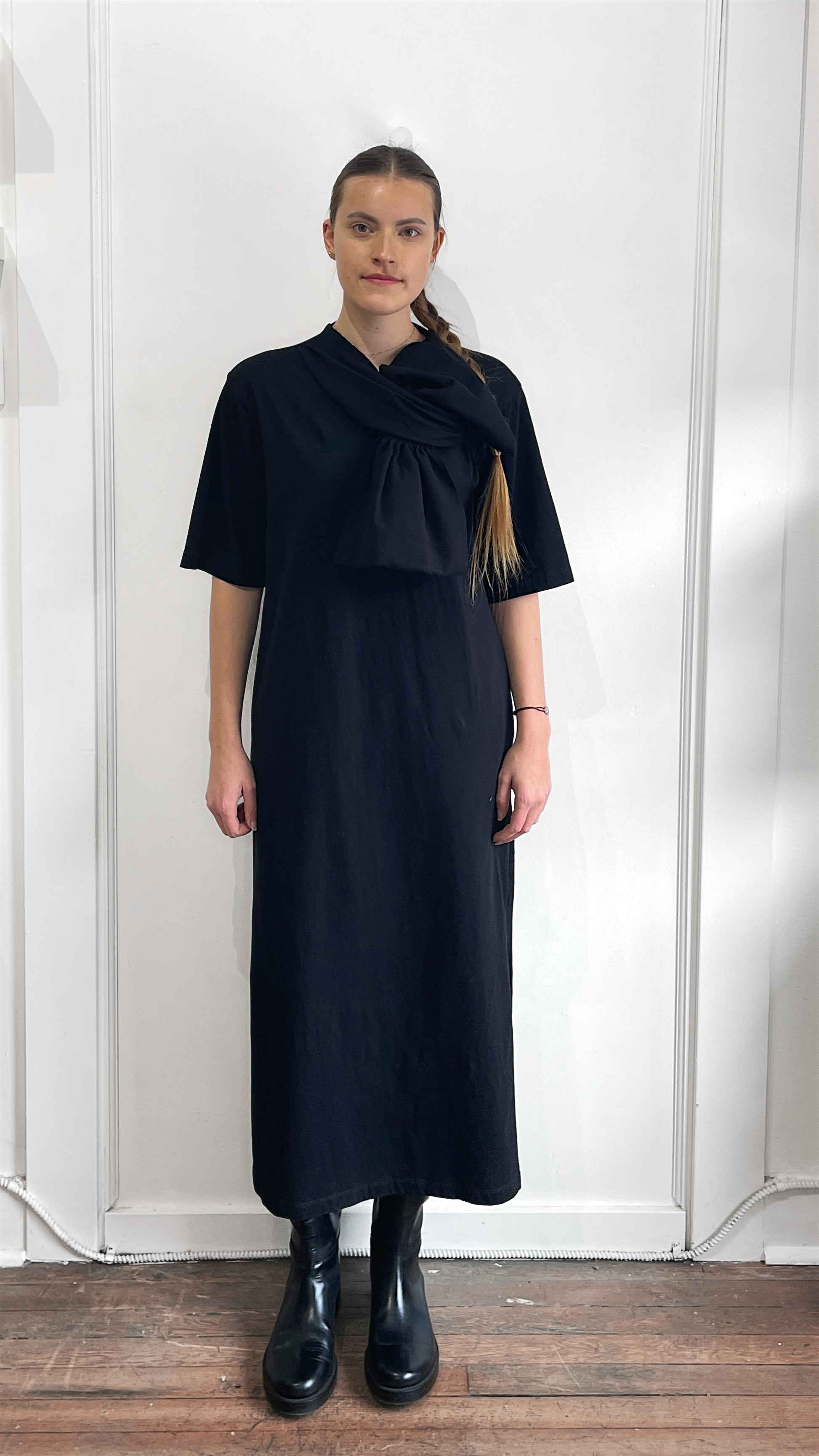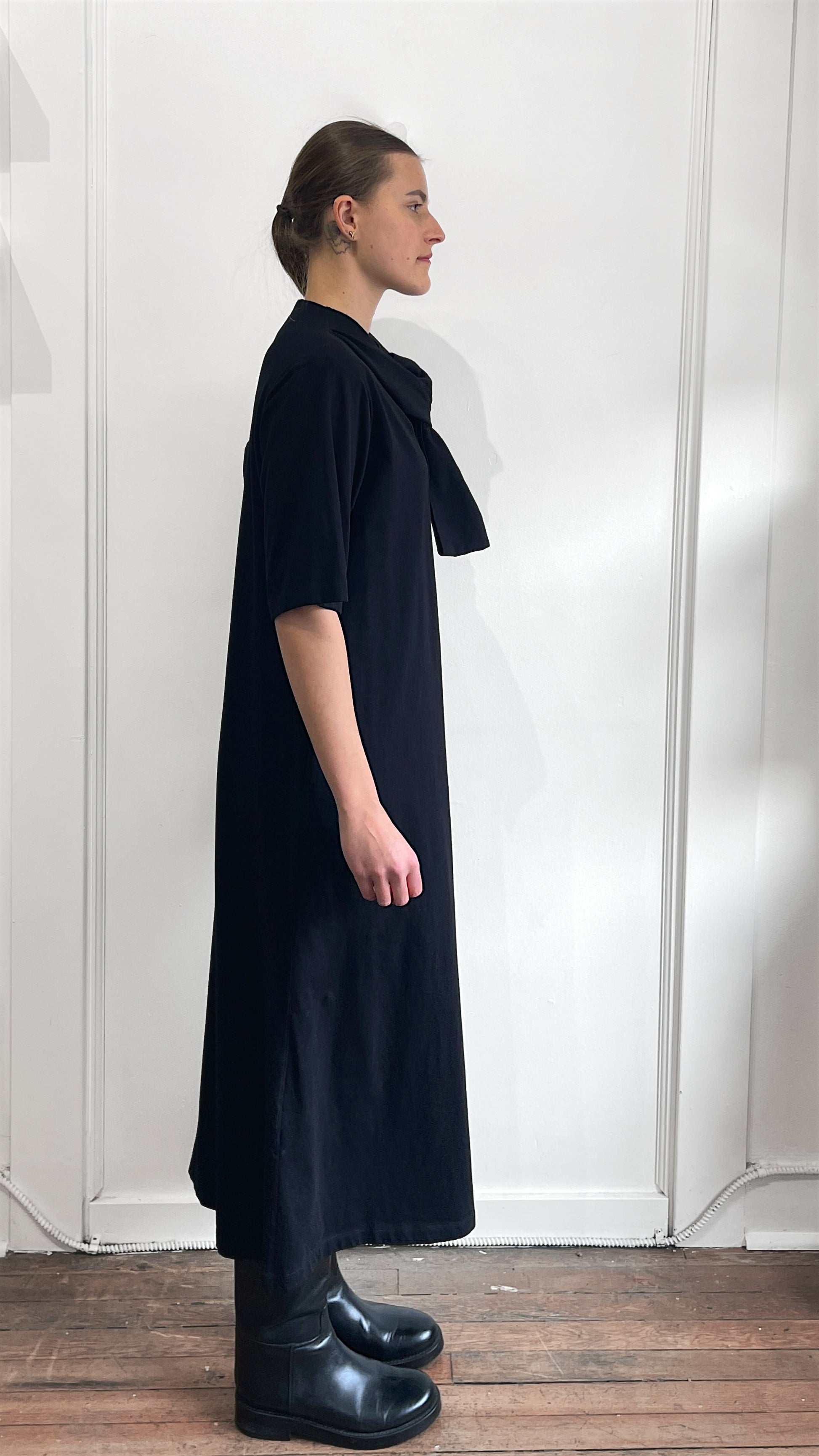 Item: MM6 Black Cotton Bow Motif T-Shirt Dress Medium