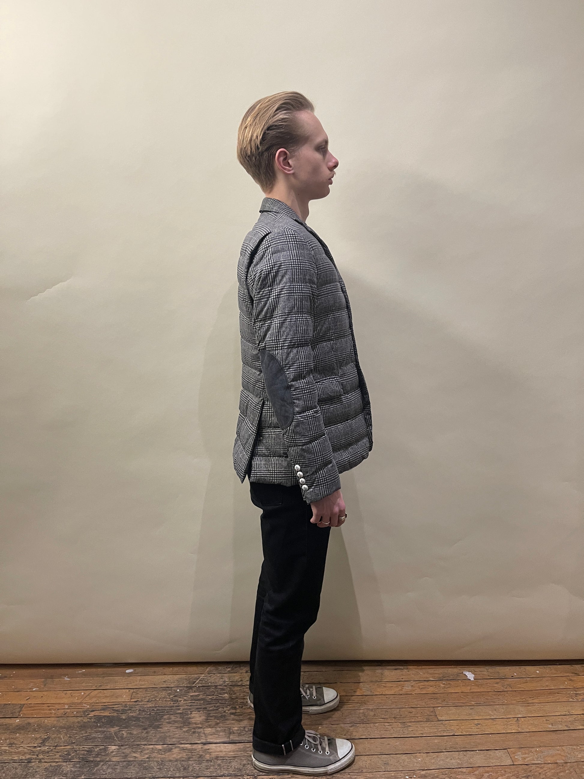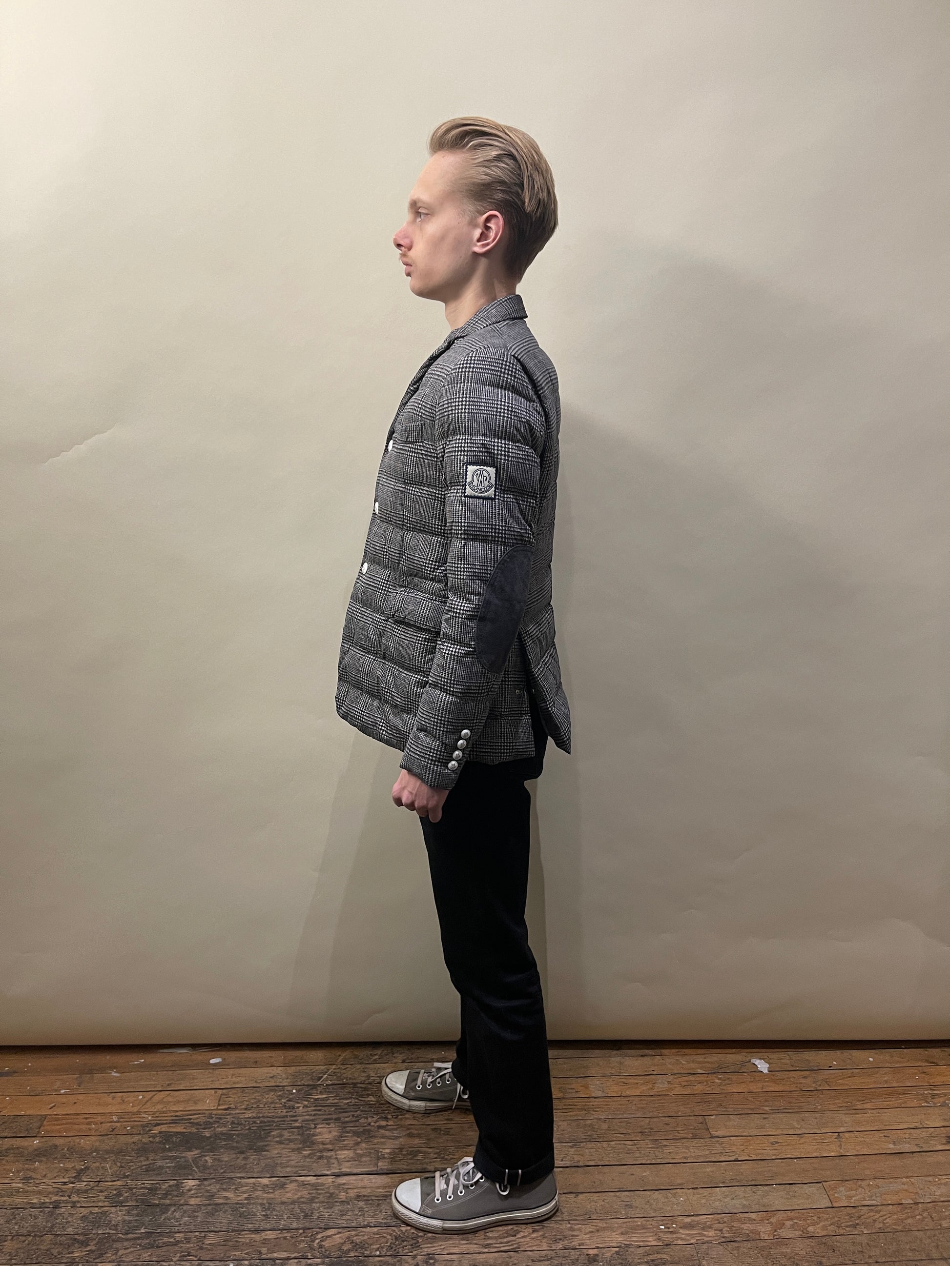 Moncler Gamme Bleu Grey Glen Check Down Filled Sport Coat Jacket 2 / Medium - Made in Italy