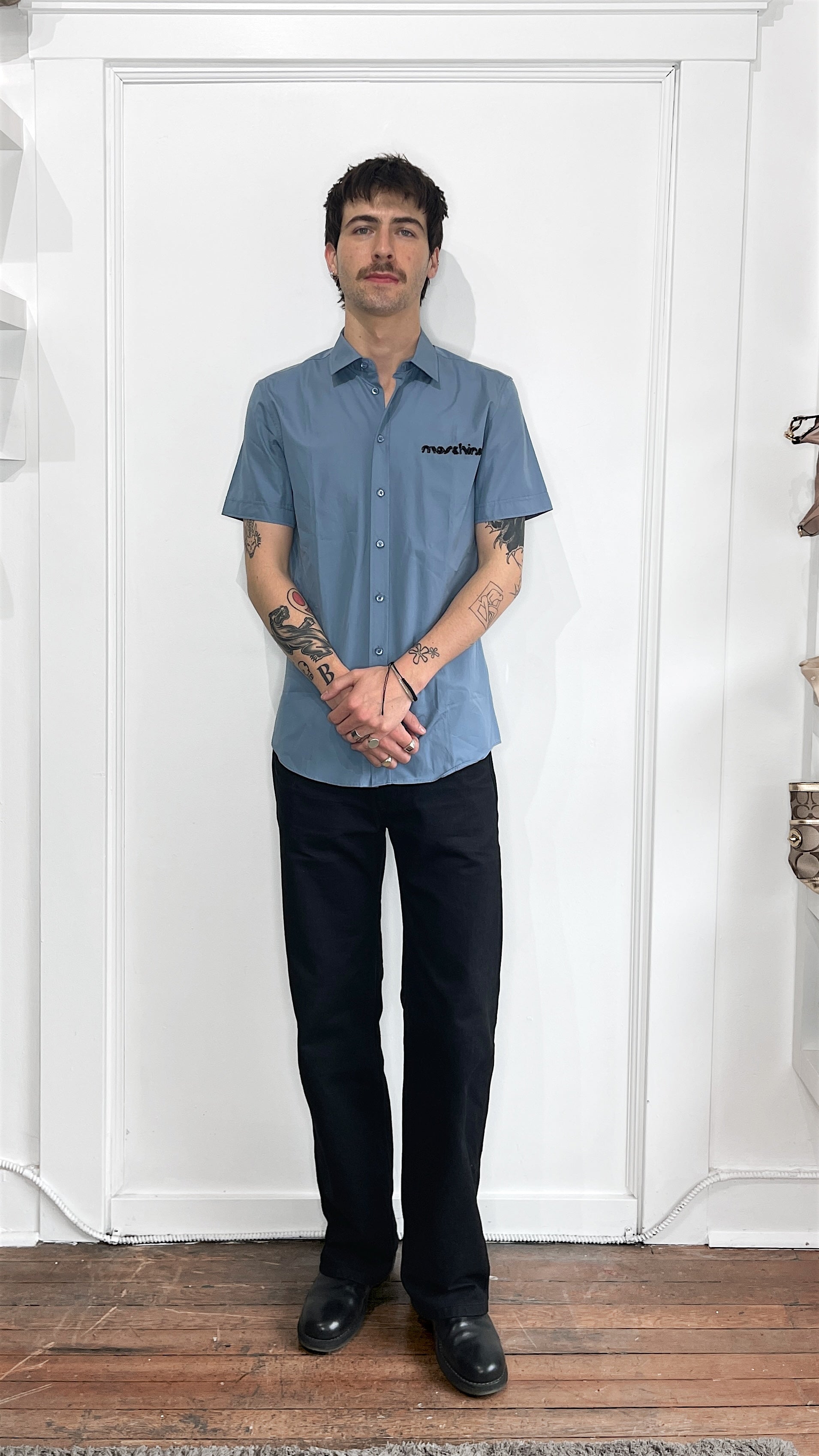 Item: Moschino Baby Blue Chest Logo SS Button Up Shirt 15.5 / Small