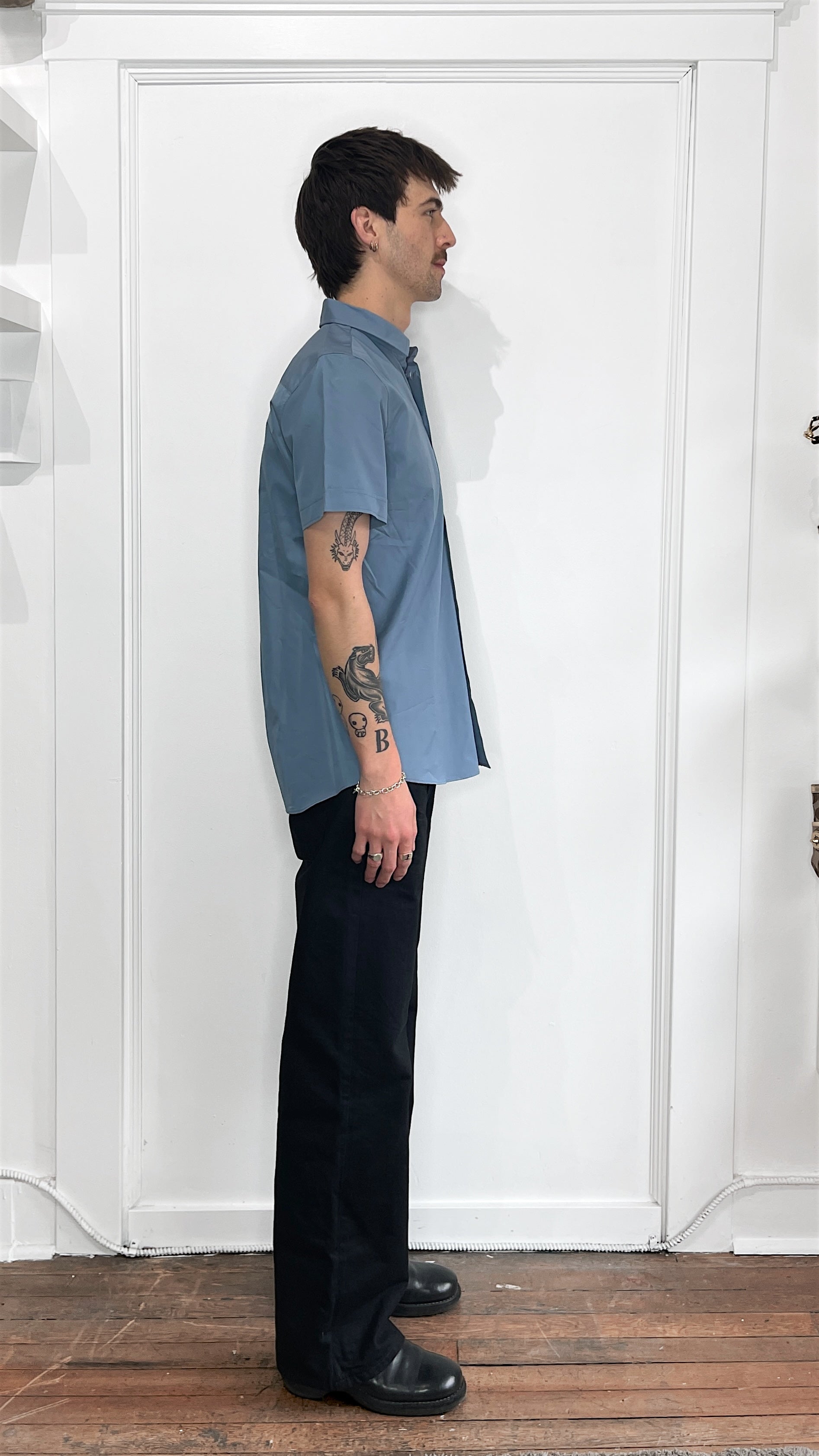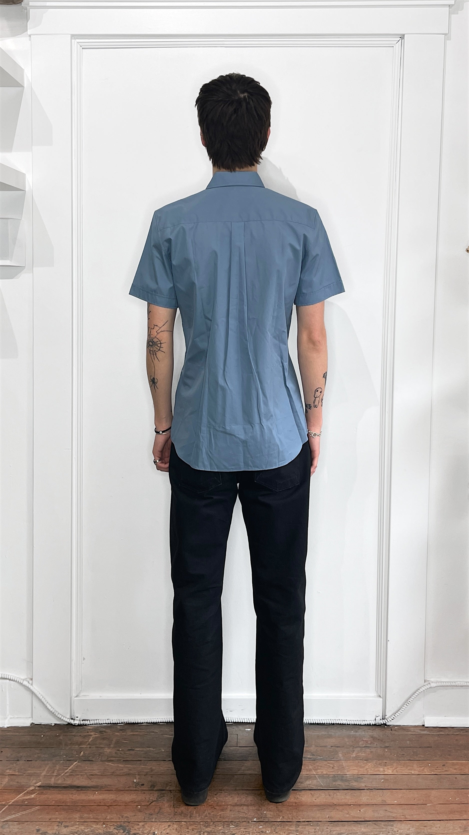 Moschino Baby Blue Chest Logo SS Button Up Shirt 15.5