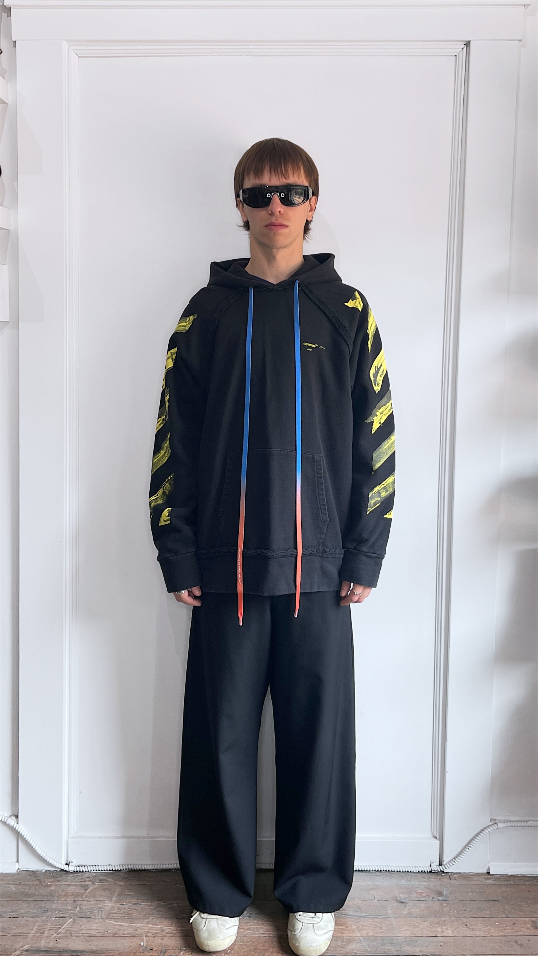 Item: Off-White Black & Yellow 2019 Arrows Hoodie W/ Blue & Orange Extended Drawstrings Small