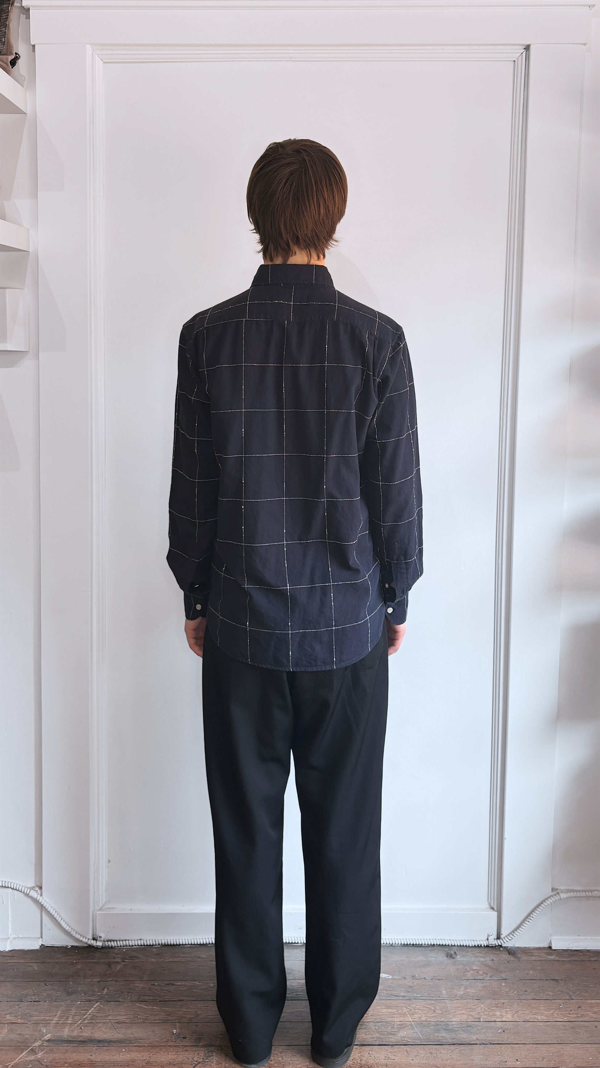 Our Legacy Navy & White Windowpane Cotton LS Button Up Shirt 38