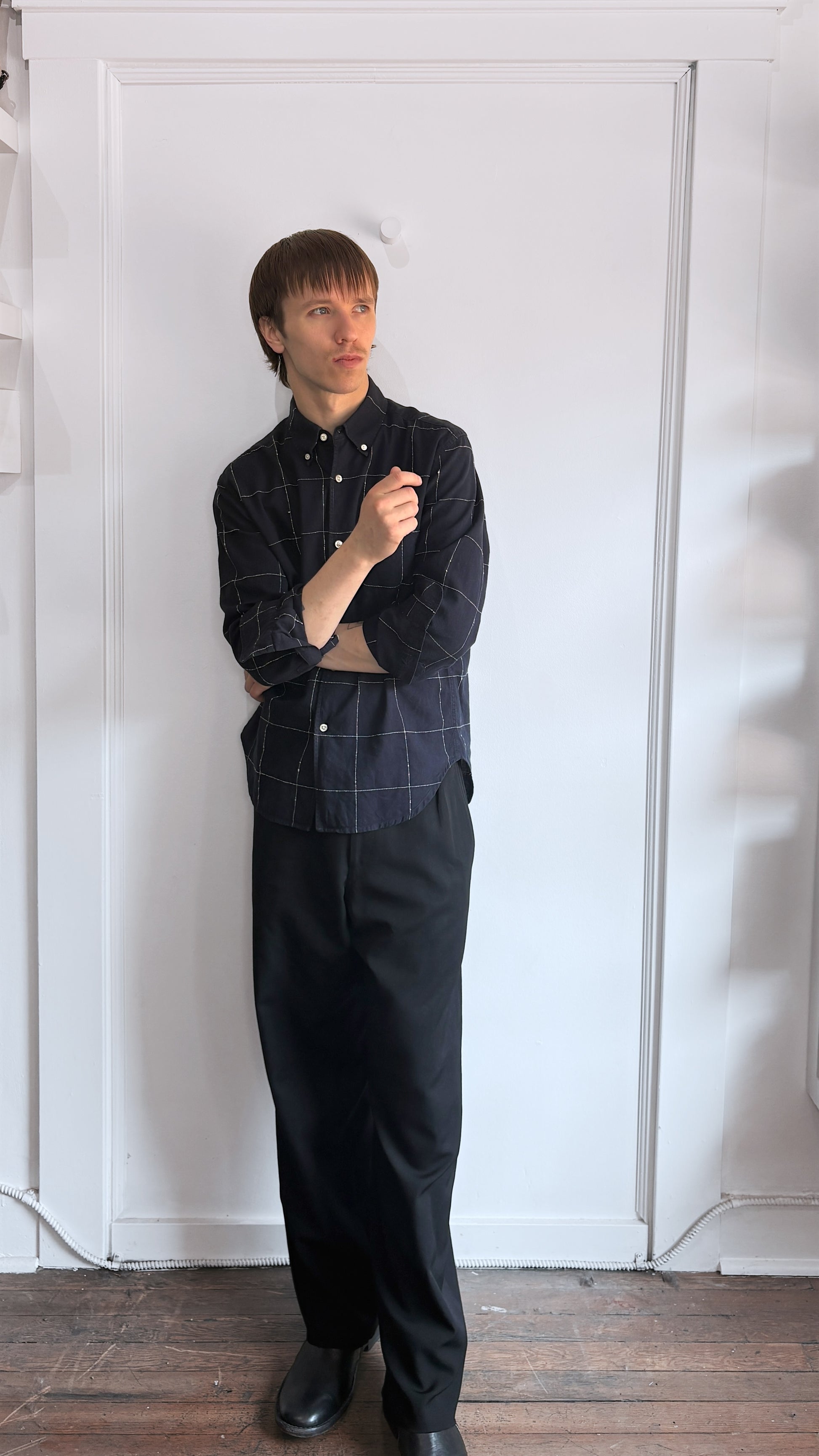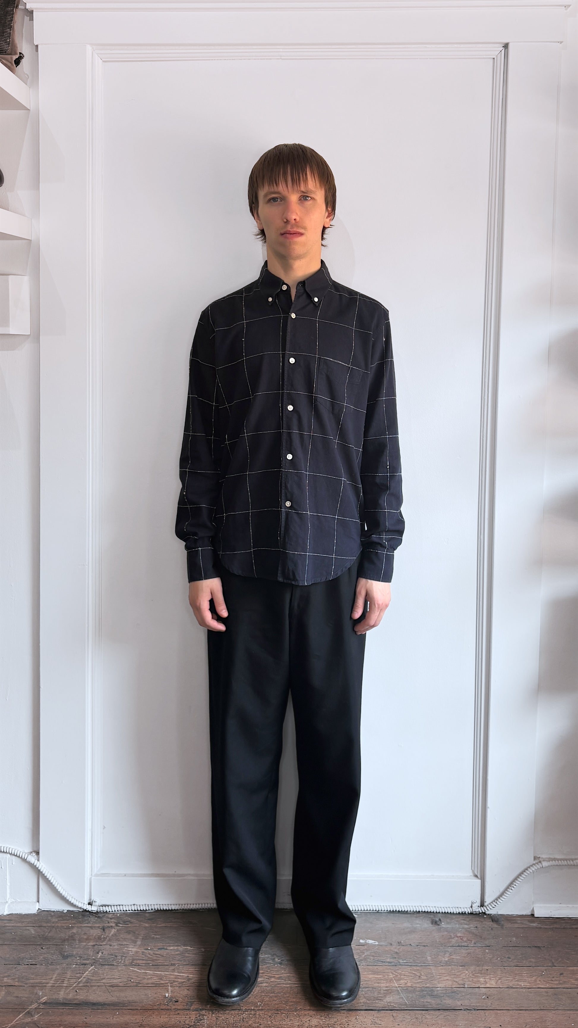 Item: Our Legacy Navy & White Heavy Cotton Windowpane Button Up Shirt 38 / Medium