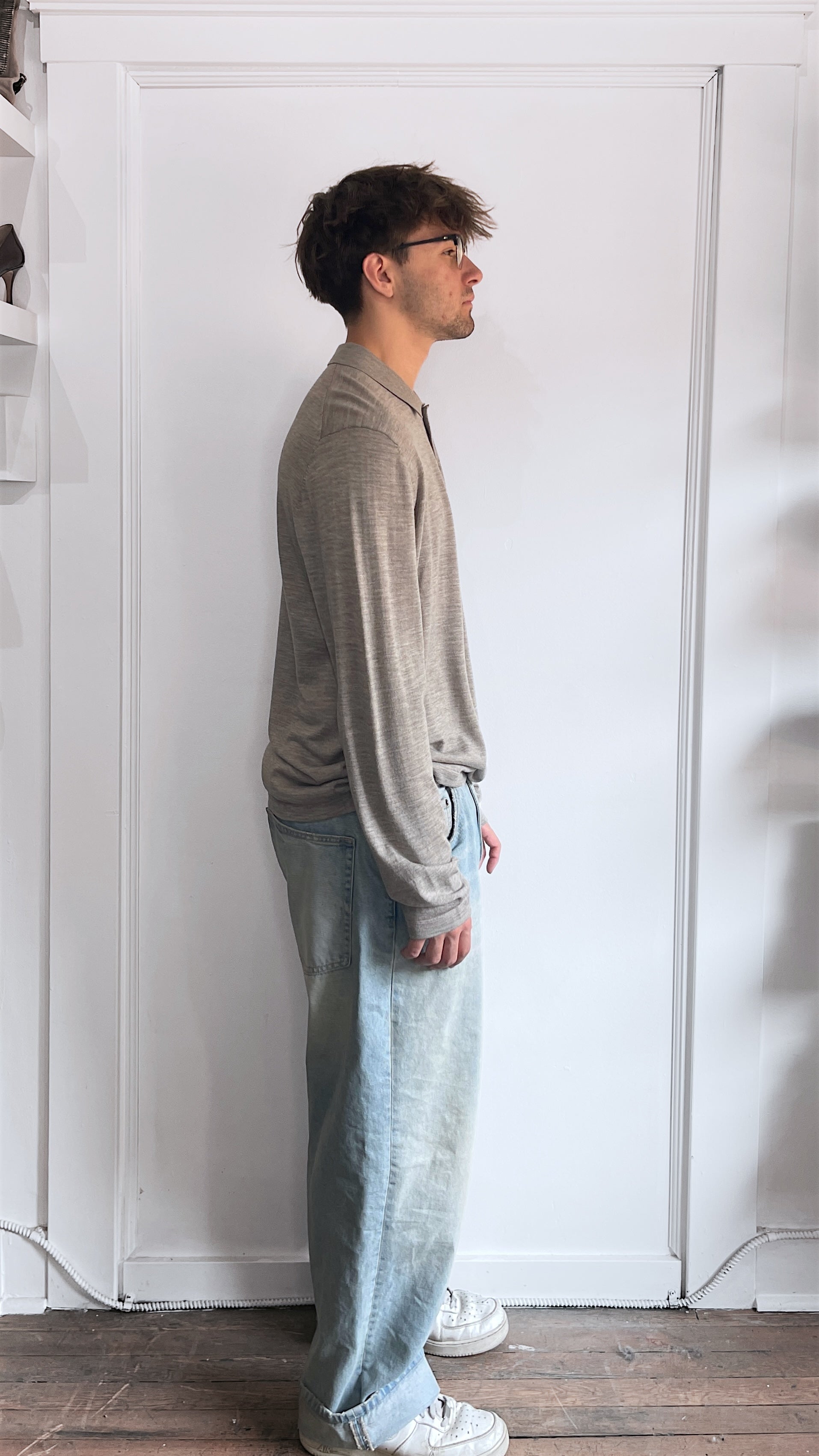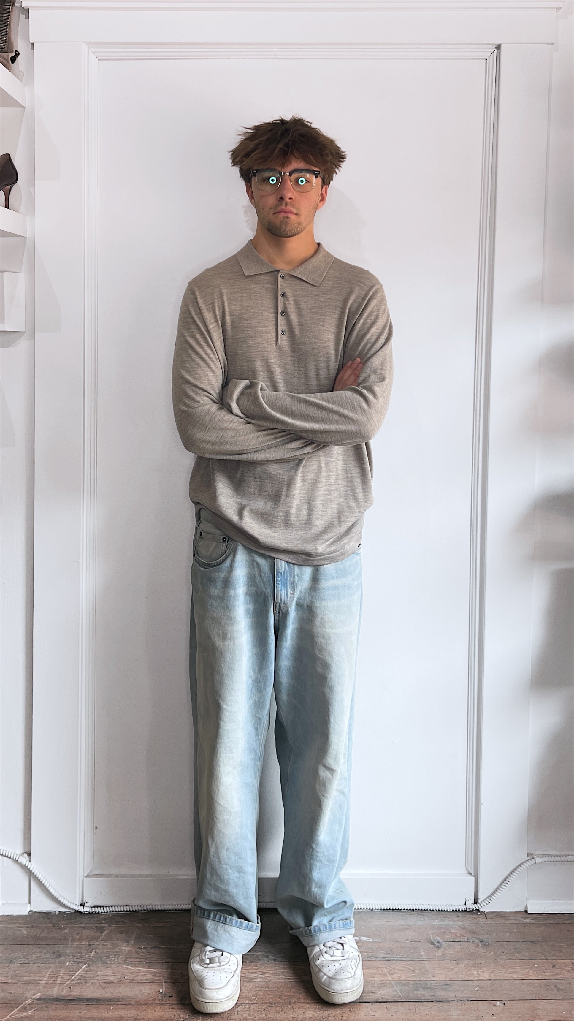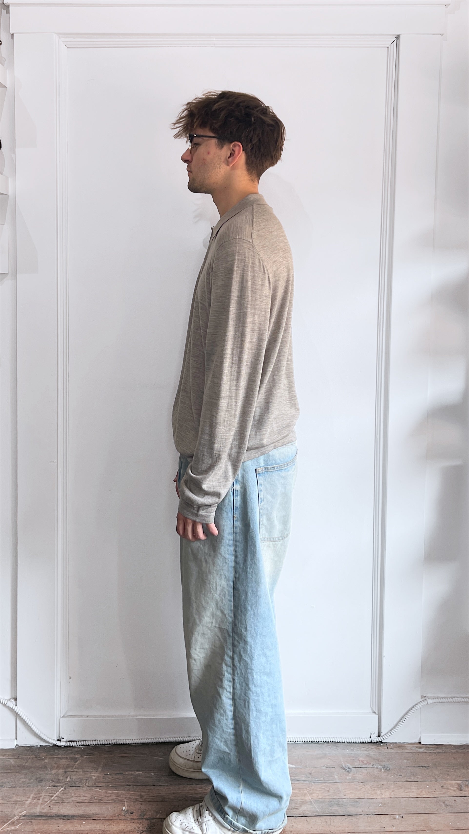 Item: Patrick Assaraf Light Taupe Merino Wool Polo Sweater XXL
