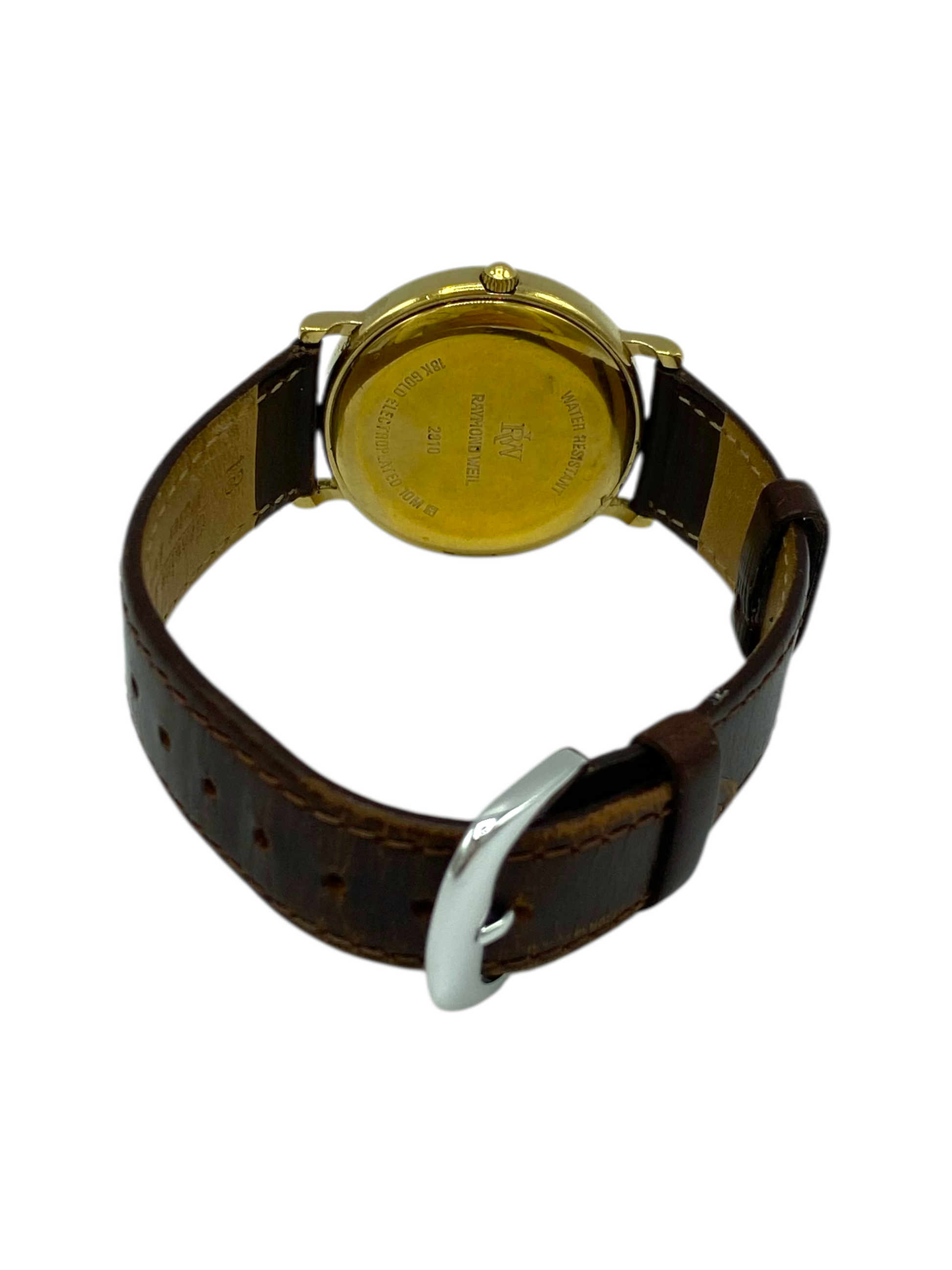 Raymond Weil 18K Gold Electroplated Round Watch W/ Inset Gems & Brown Smooth Leather Strap OS - Made in Switzerland