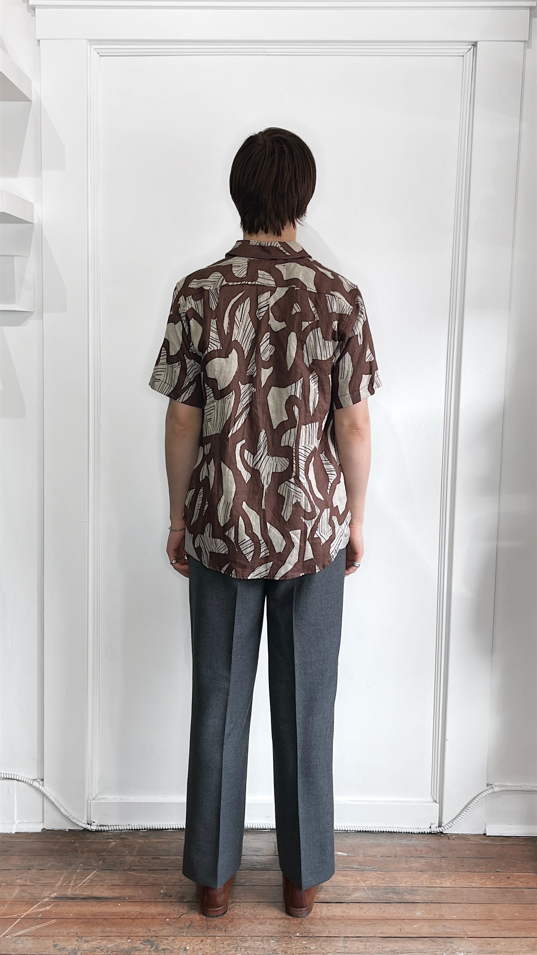 Rogue Territory Brown & Tan Graffiti-Esque Pattern Linen SS Button Up Shirt Small