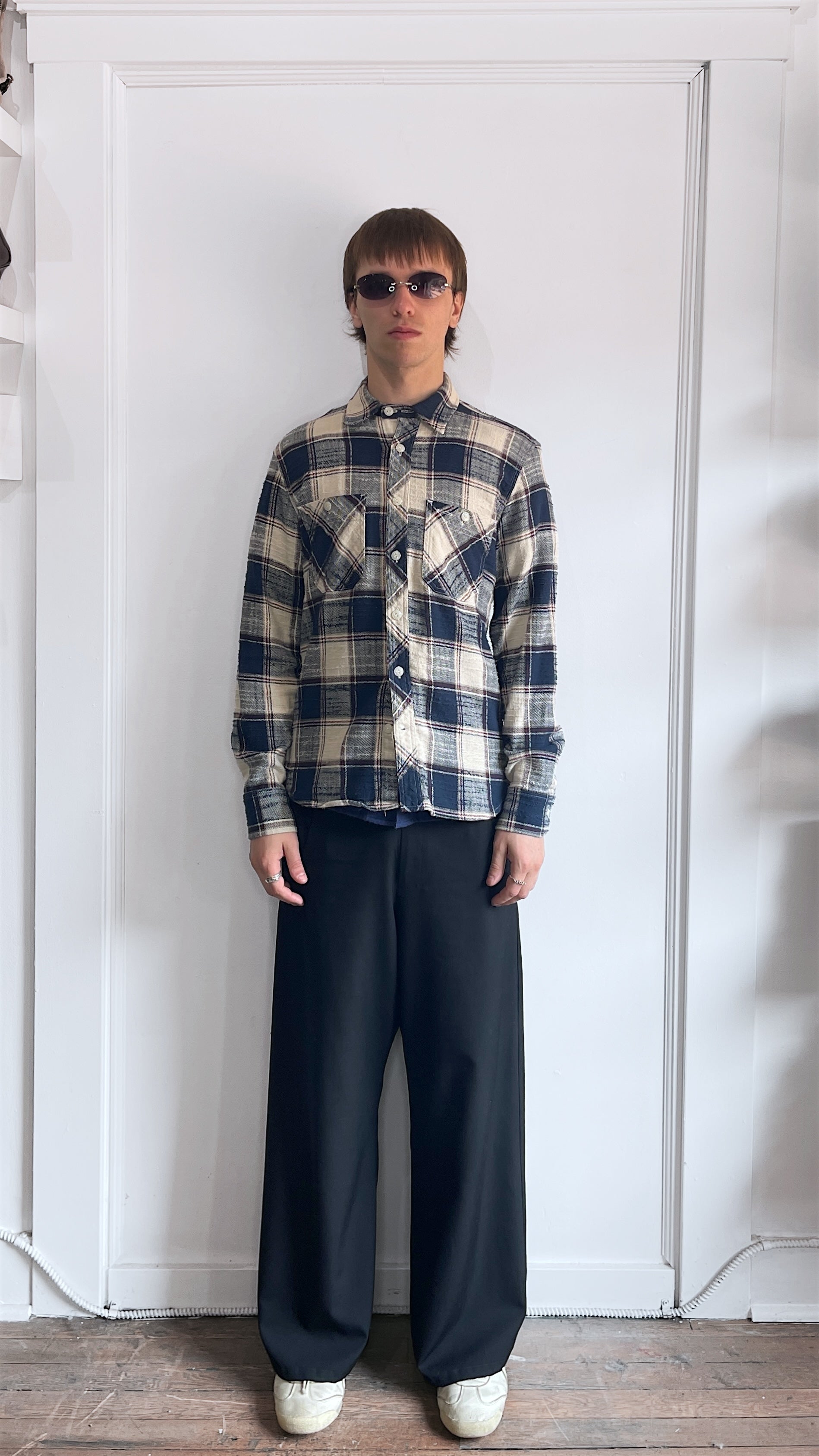 Rogue Territory Navy, White, & Red Plaid Flannel LS Button Up Medium