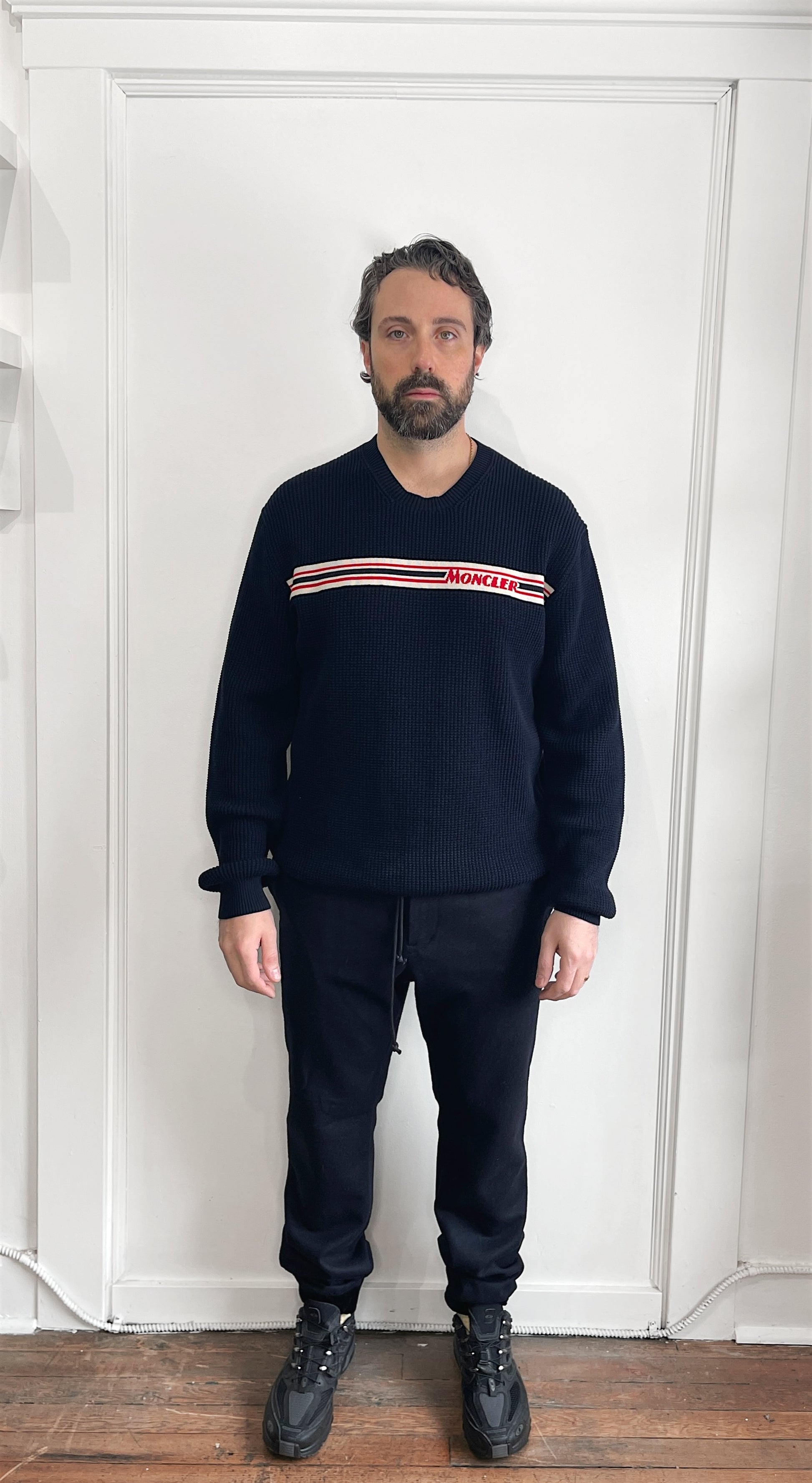 Item: Sacai Midnight Navy Wool Sweatpants W/ Black Velvet Cuffs & Waistband Large