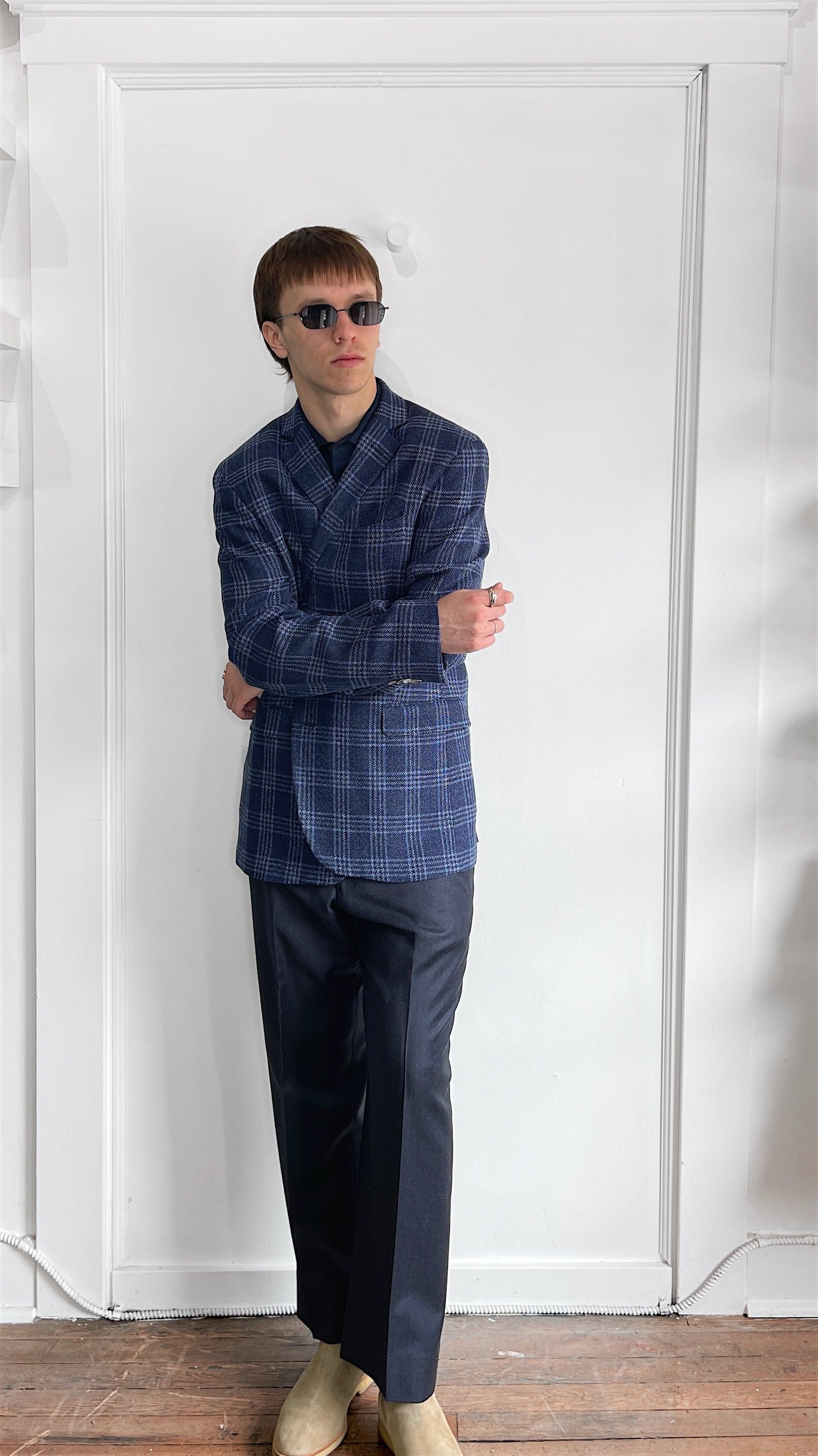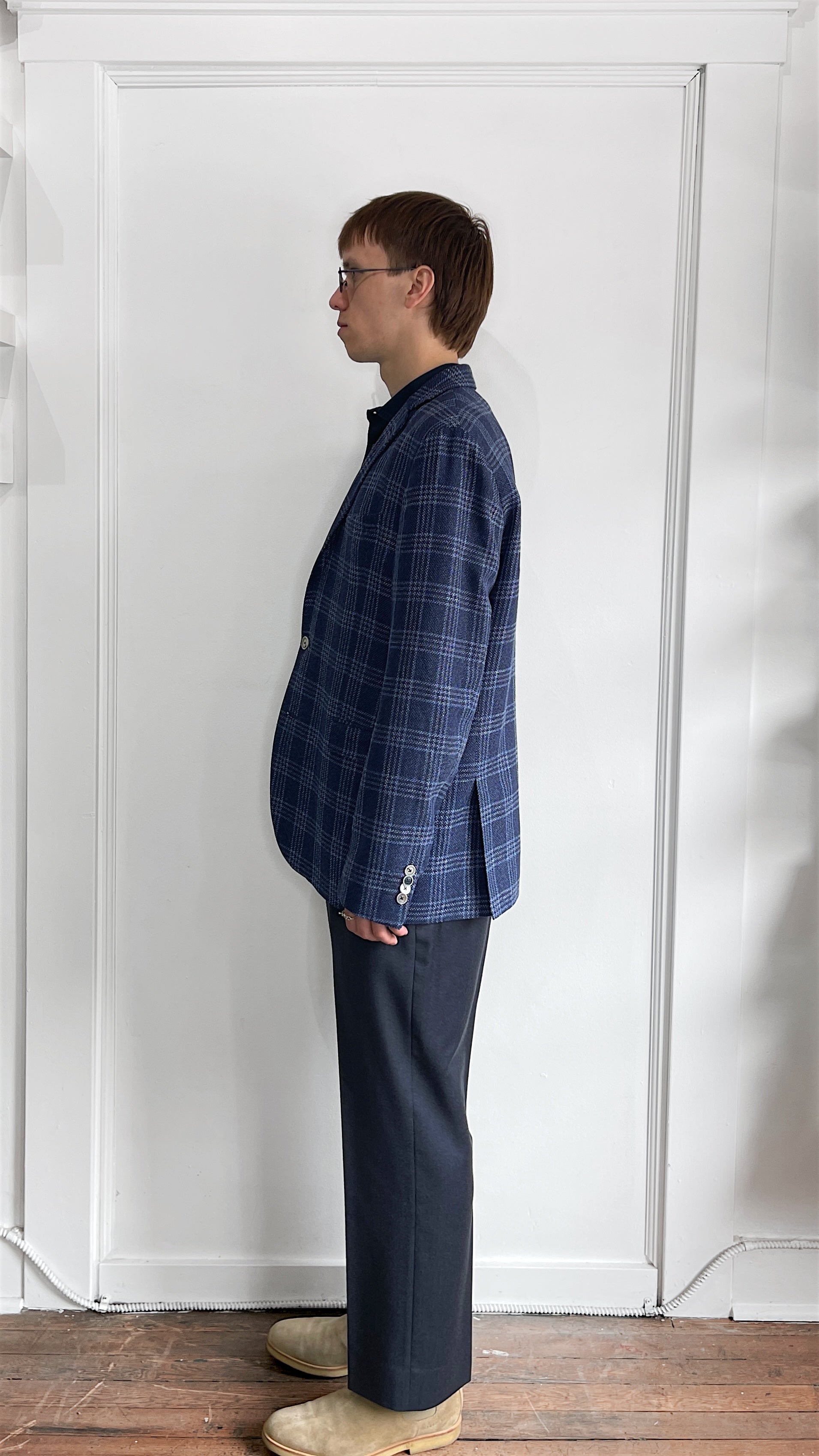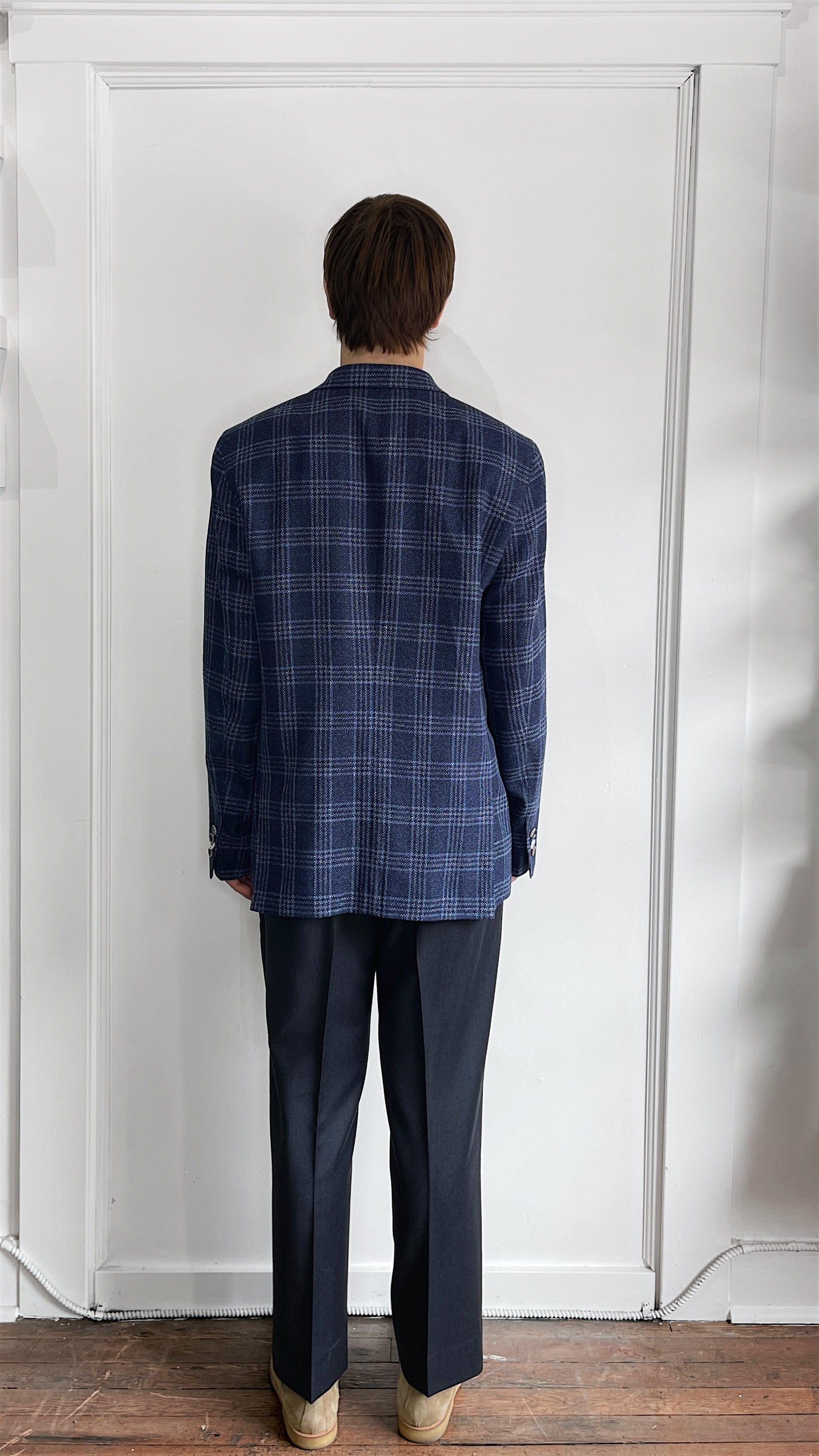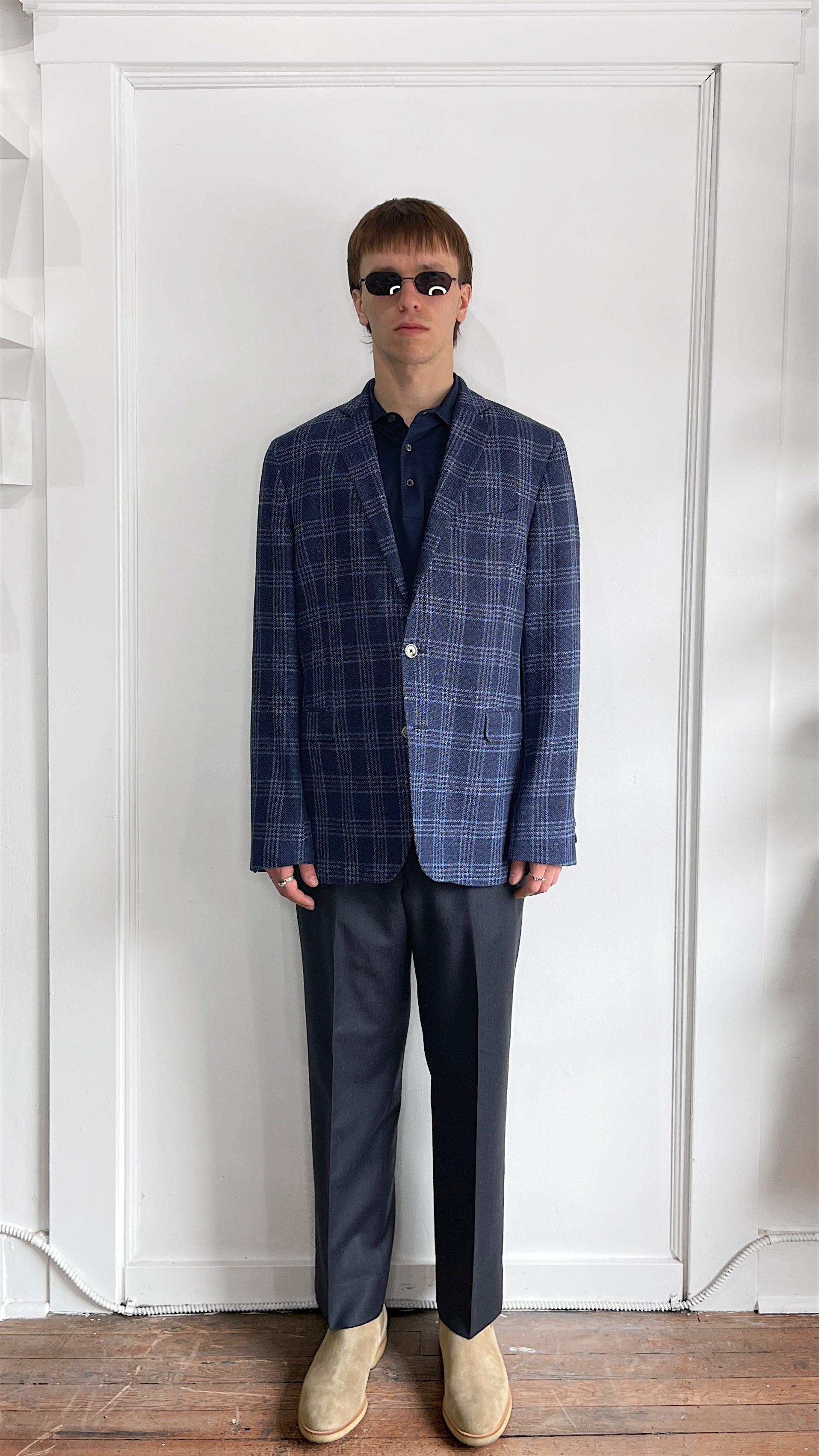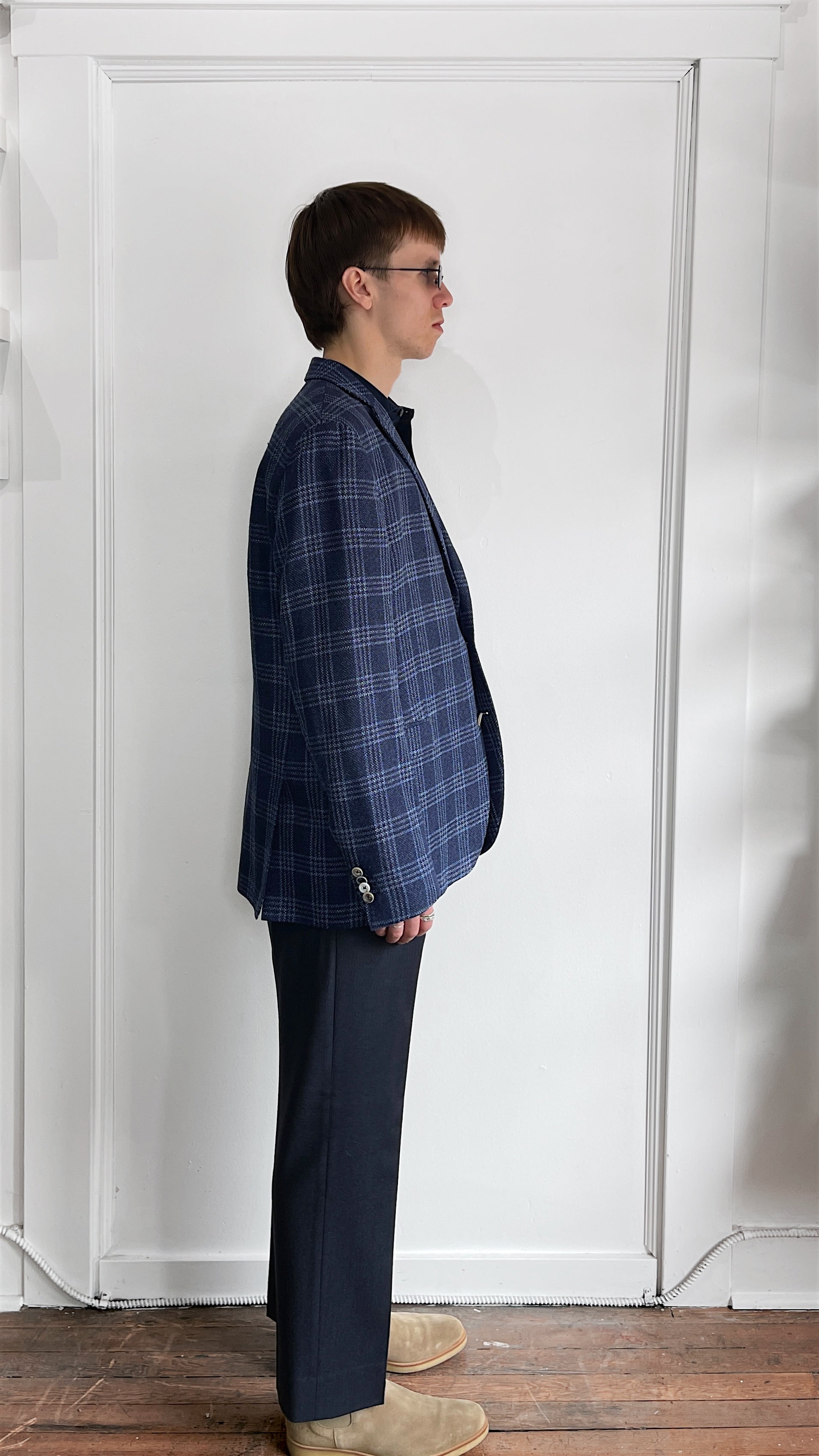 Item: Sand Copenhagen Navy & Light Blue Glen Check Wool Linen Sport Coat 44