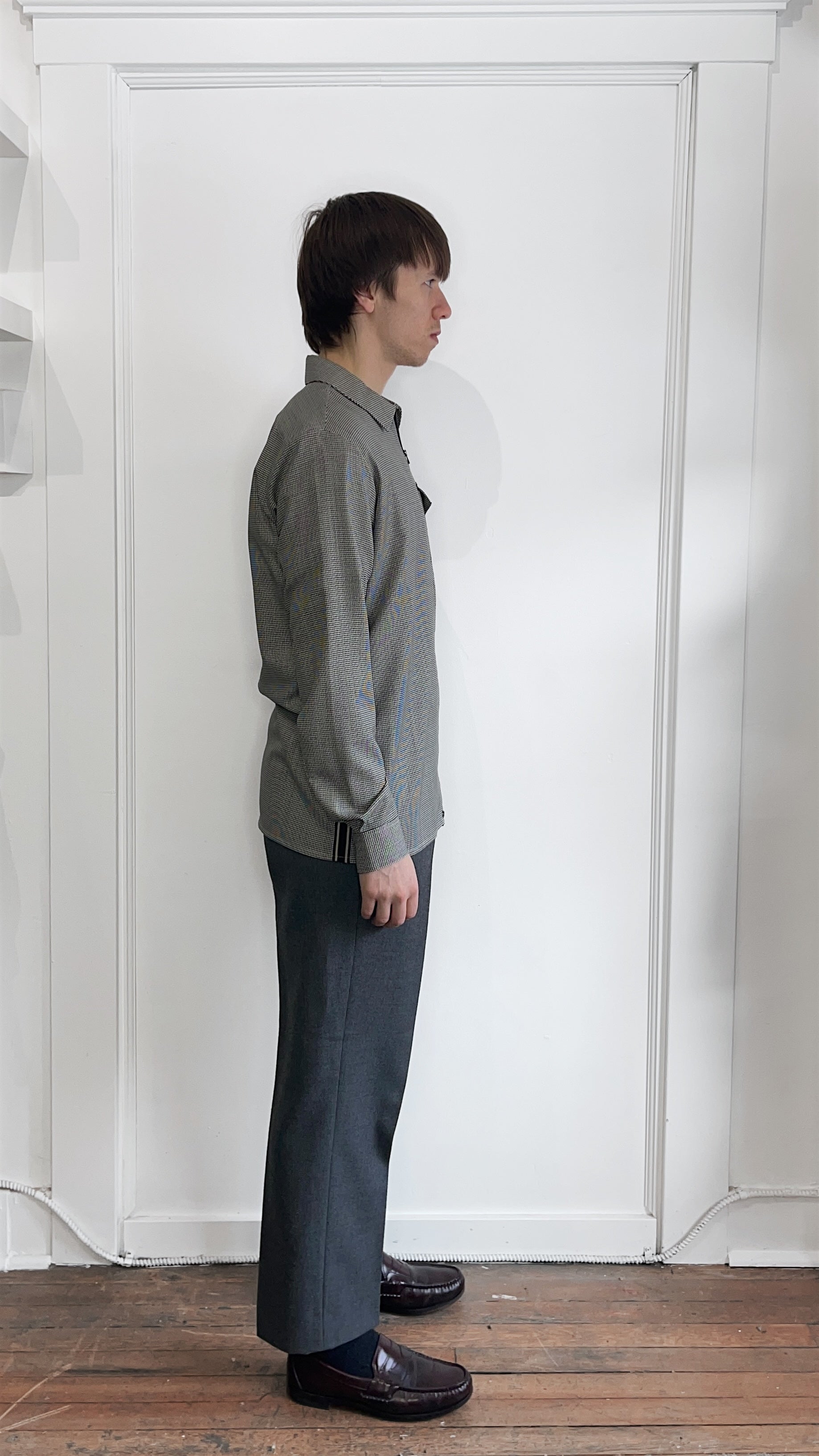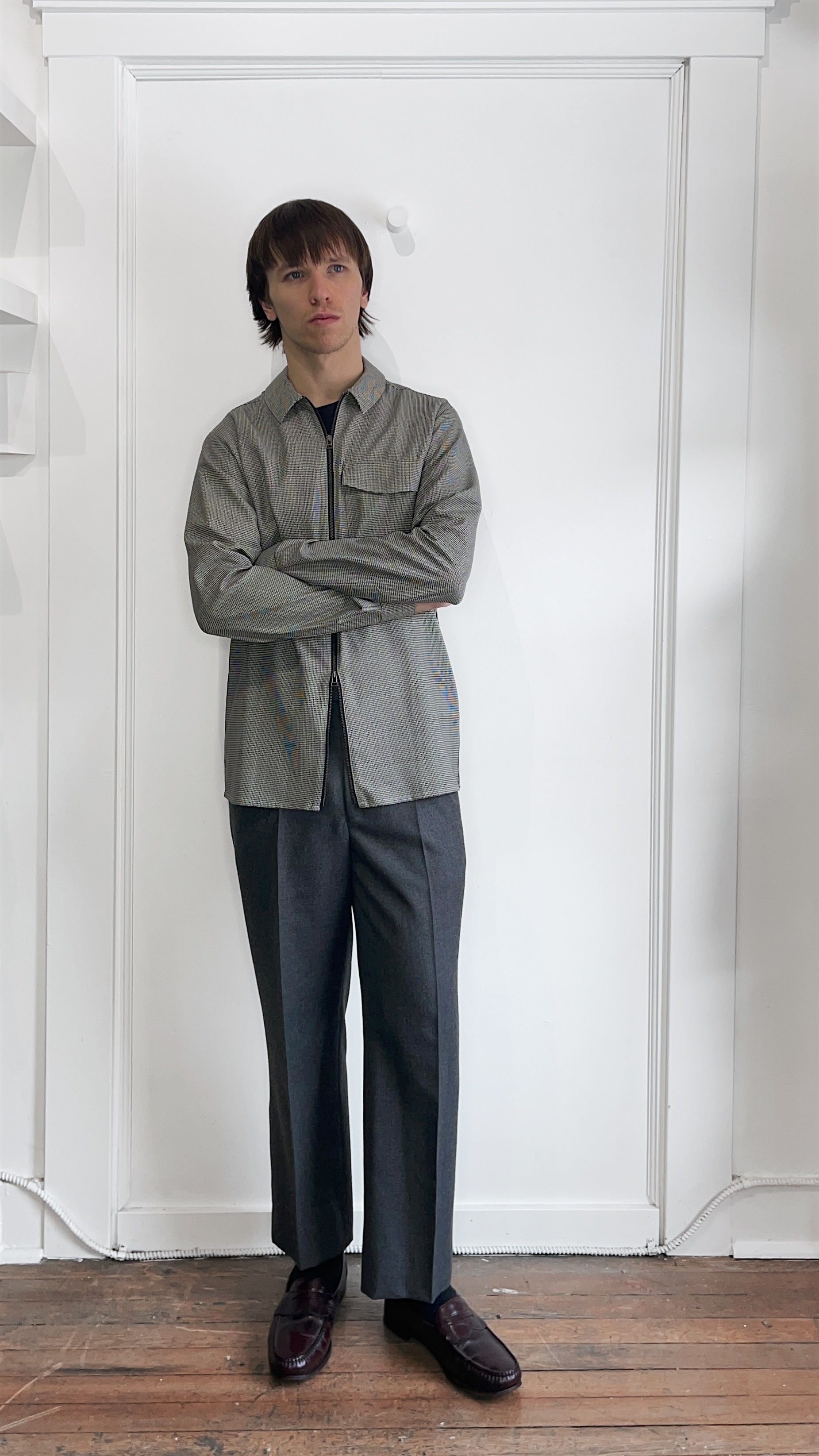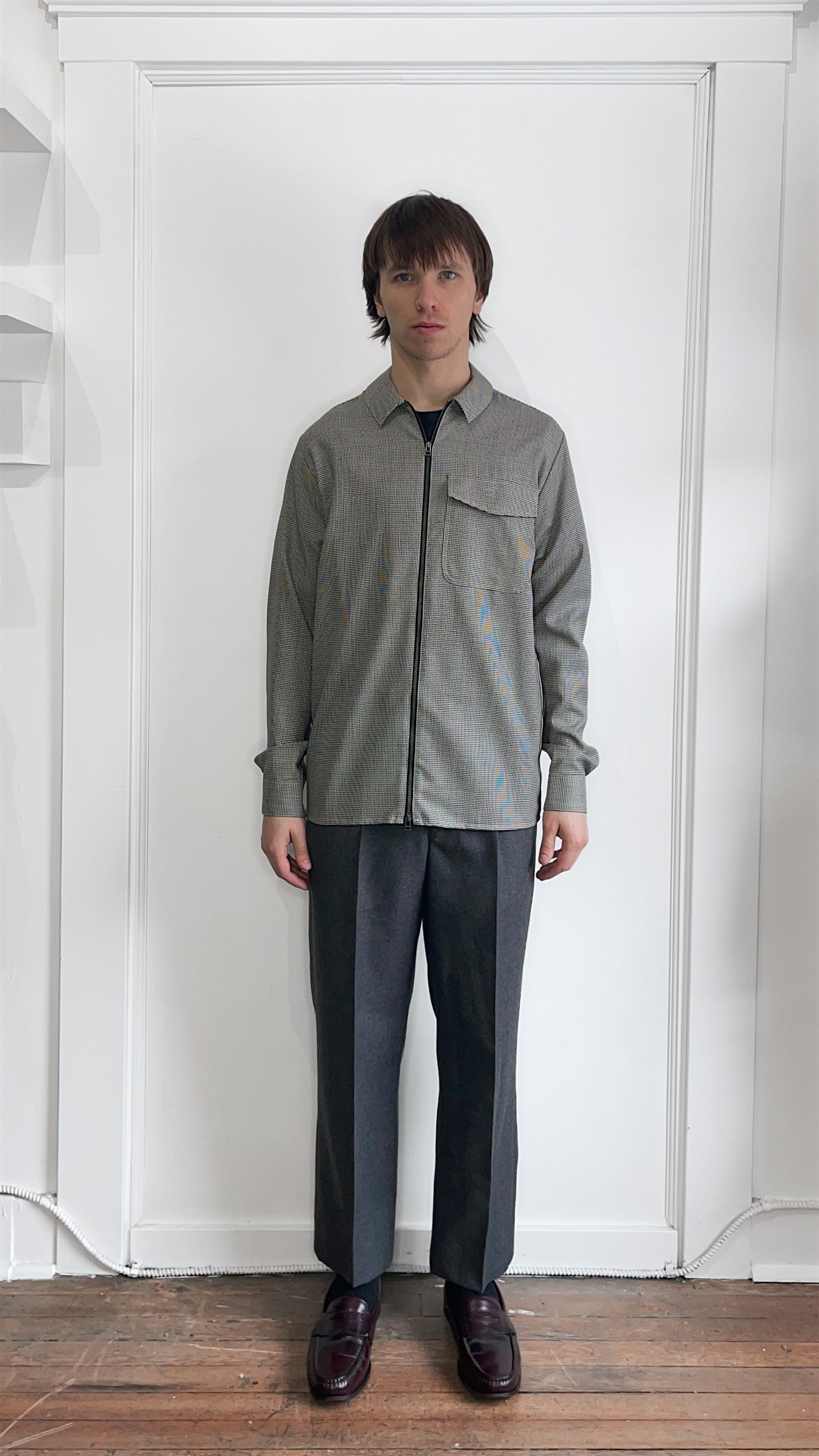Item: Schnayderman's Black & White Houndstooth Wool Zip Shirt with Side Stripe 15