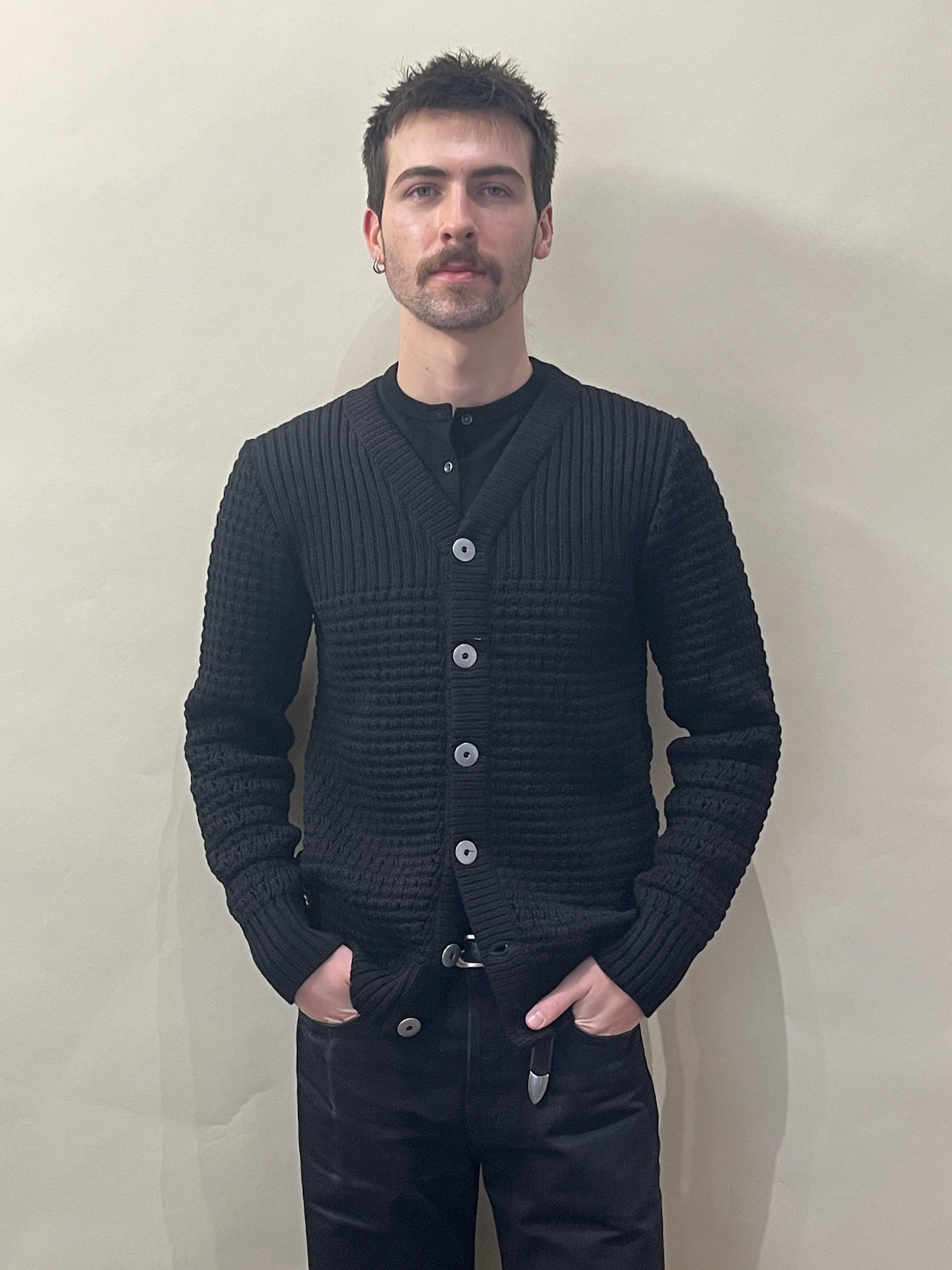 S.N.S. Herning Black Virgin Wool Knit Cardigan Small - Made in Denmark & Latvia