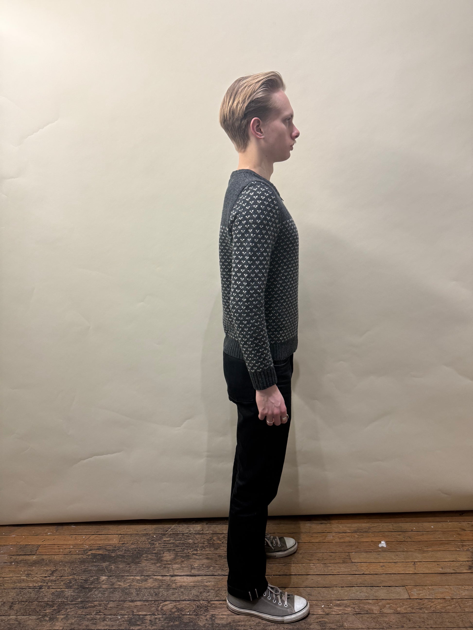 Steven Alan Dark Grey & White Fair Isle Pattern Knit Zip Up Sweater Extra Small - Made in