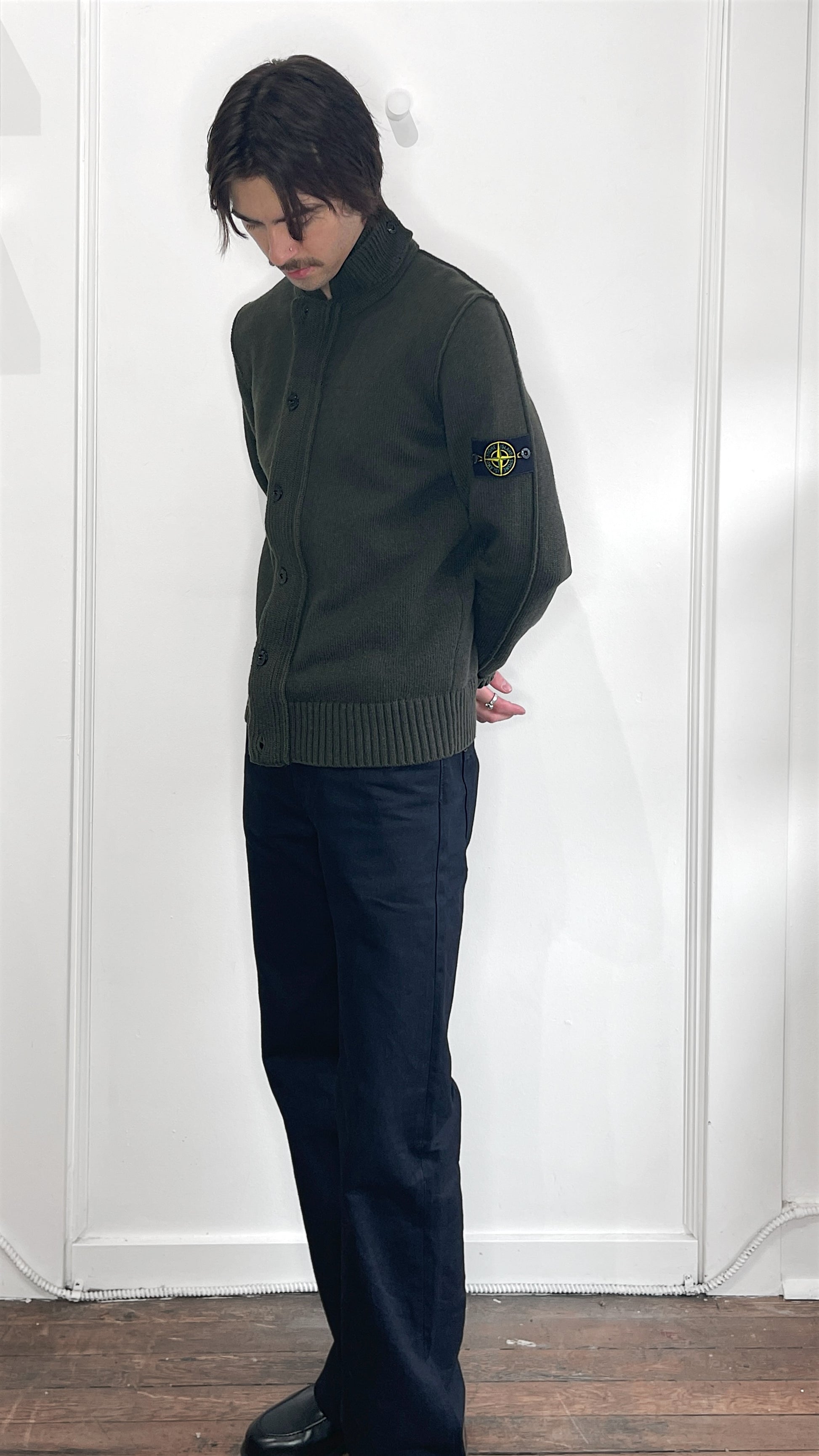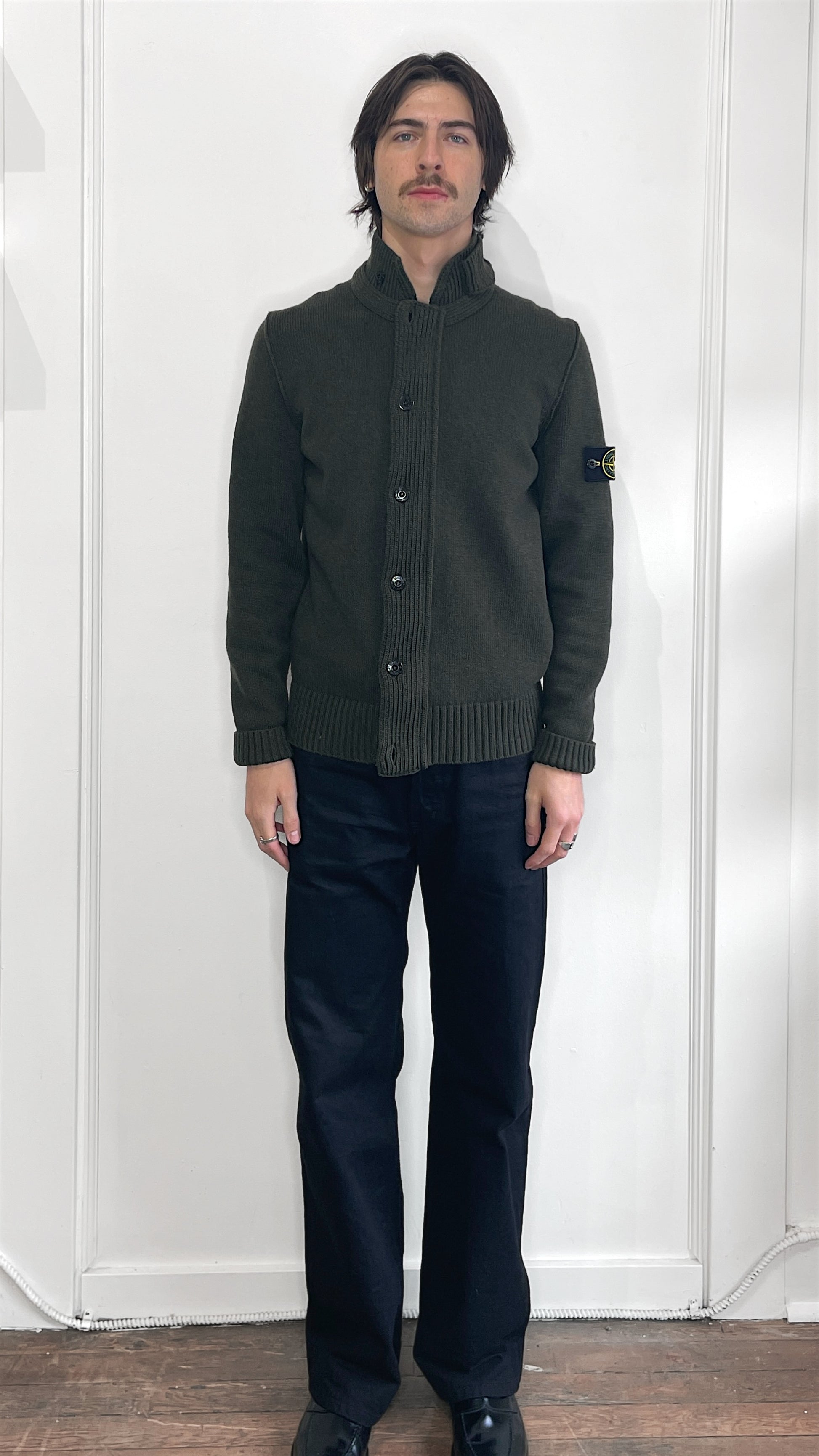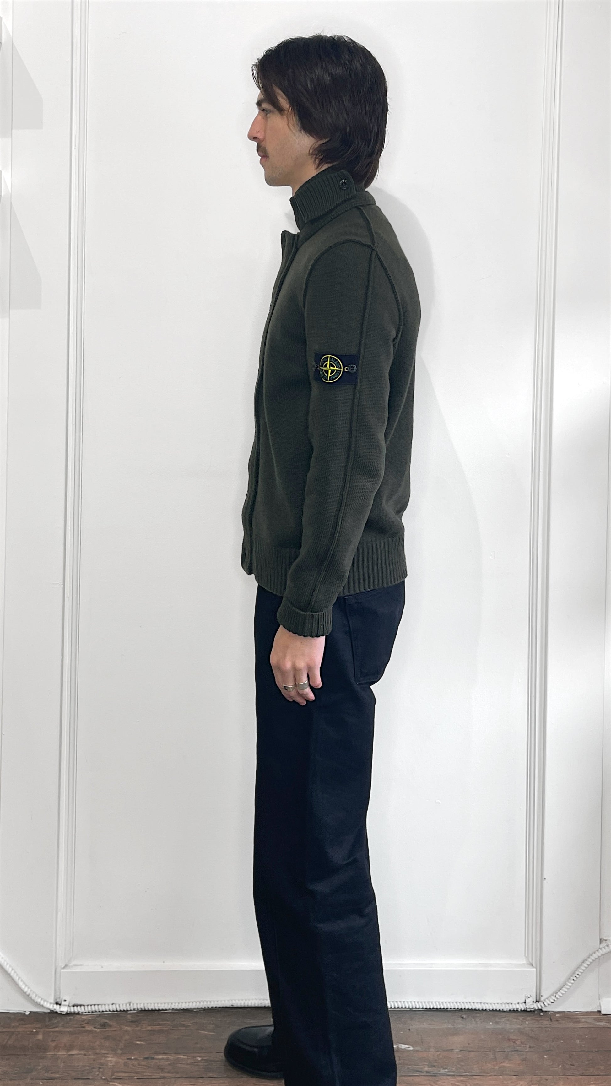 Stone Island Olive Green Wool Blend Zip Cardigan Medium - M