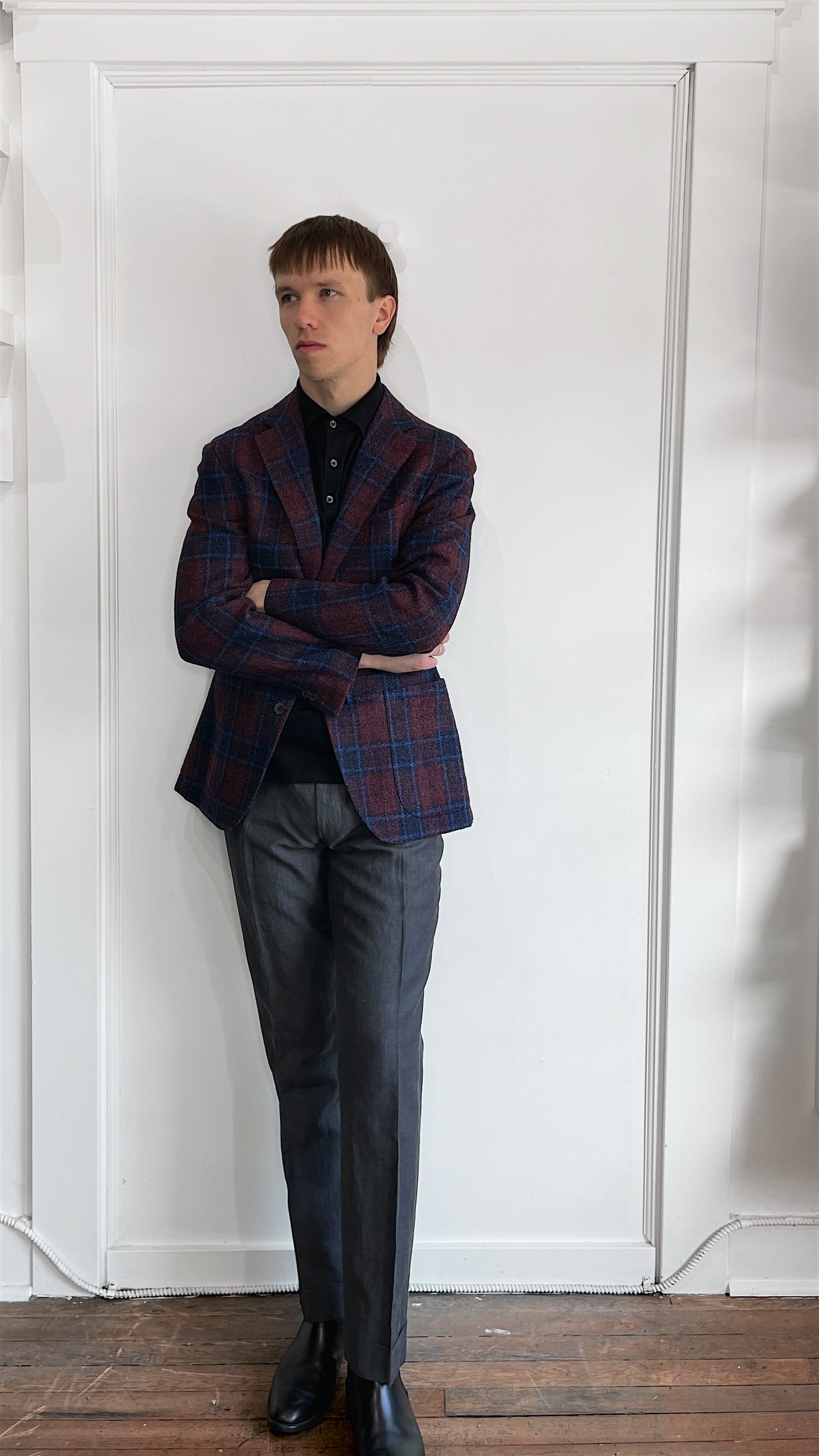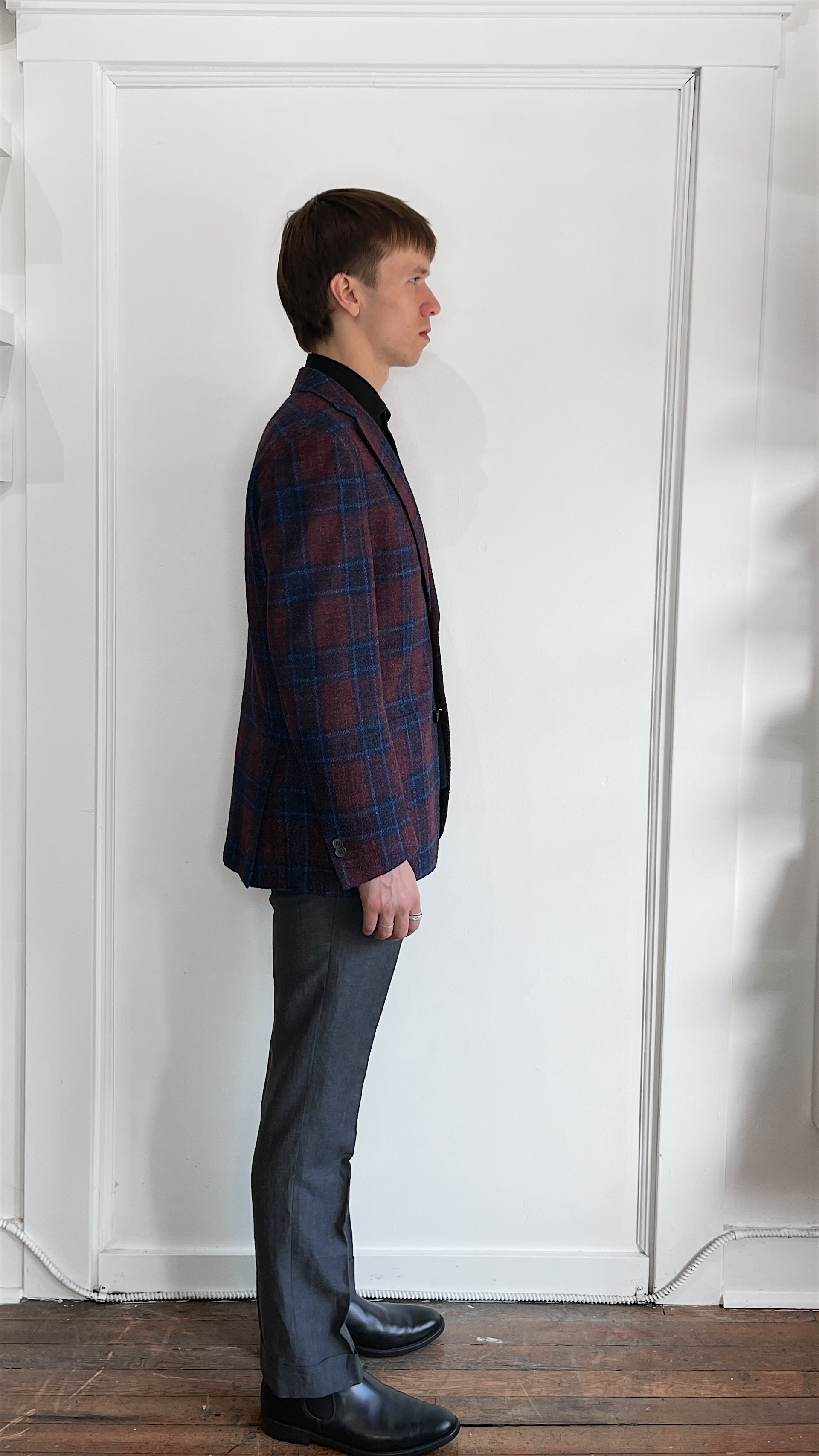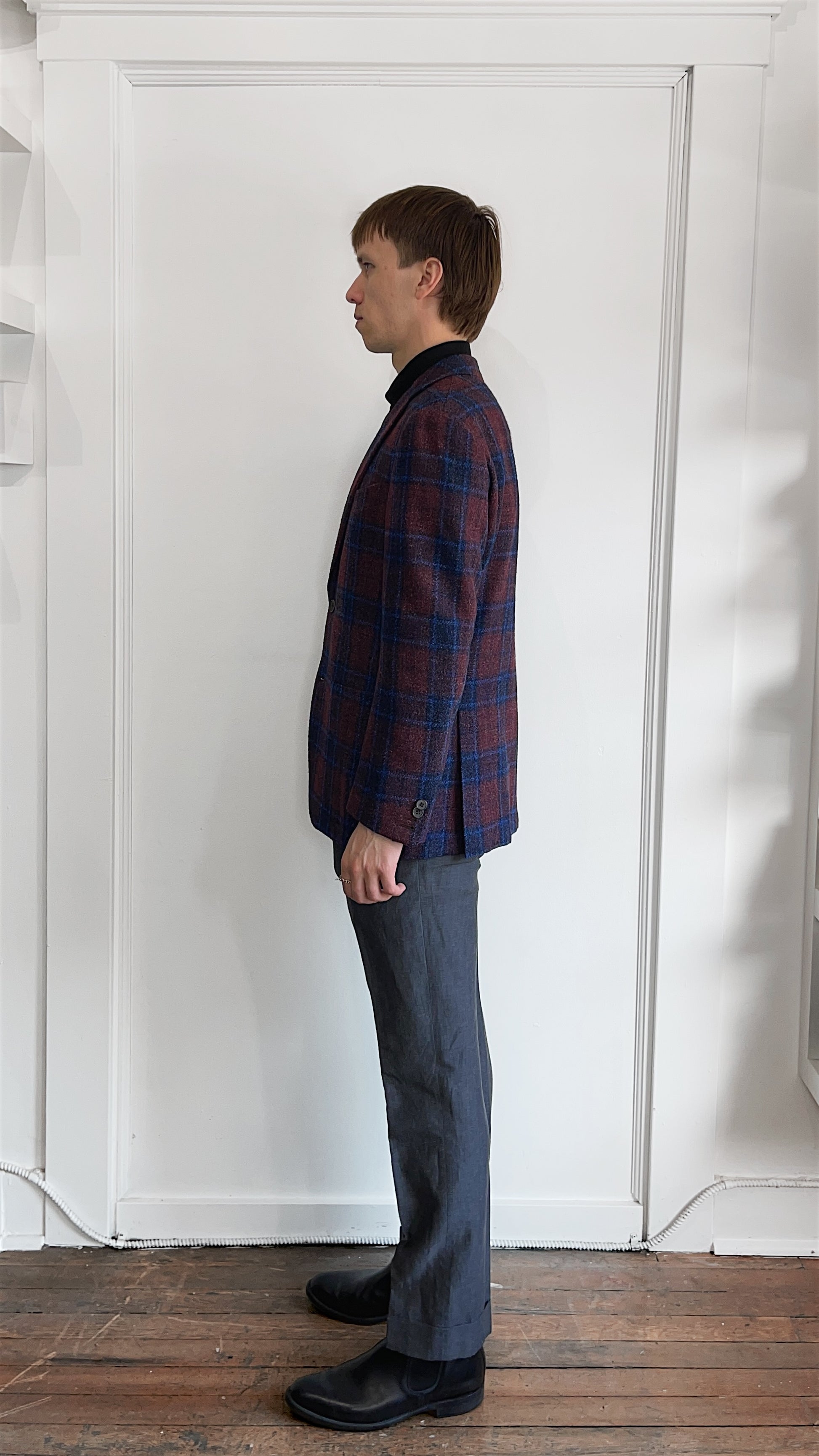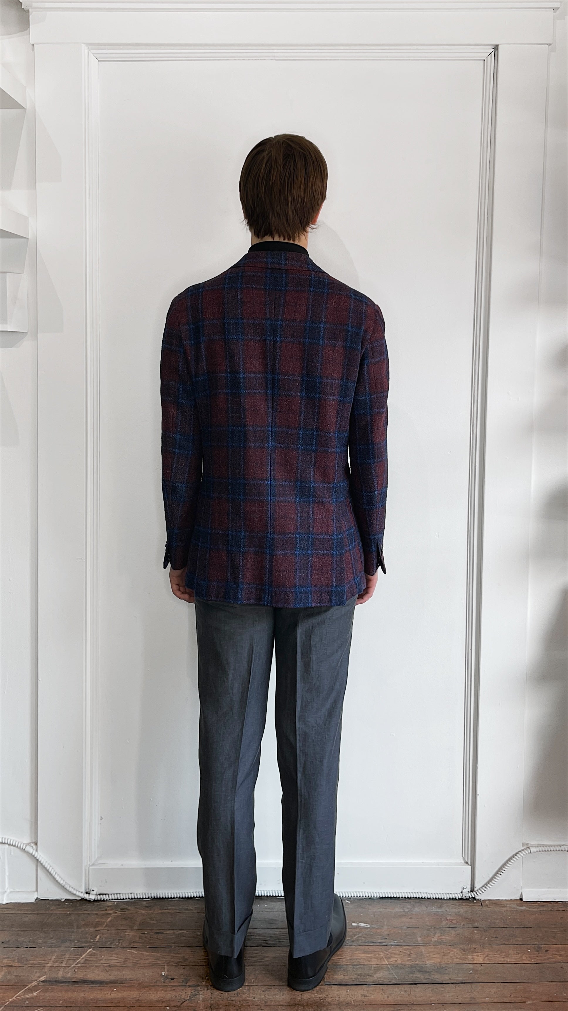 Suitsupply Maroon & Navy Plaid Wool Silk Linen Sport Coat 38