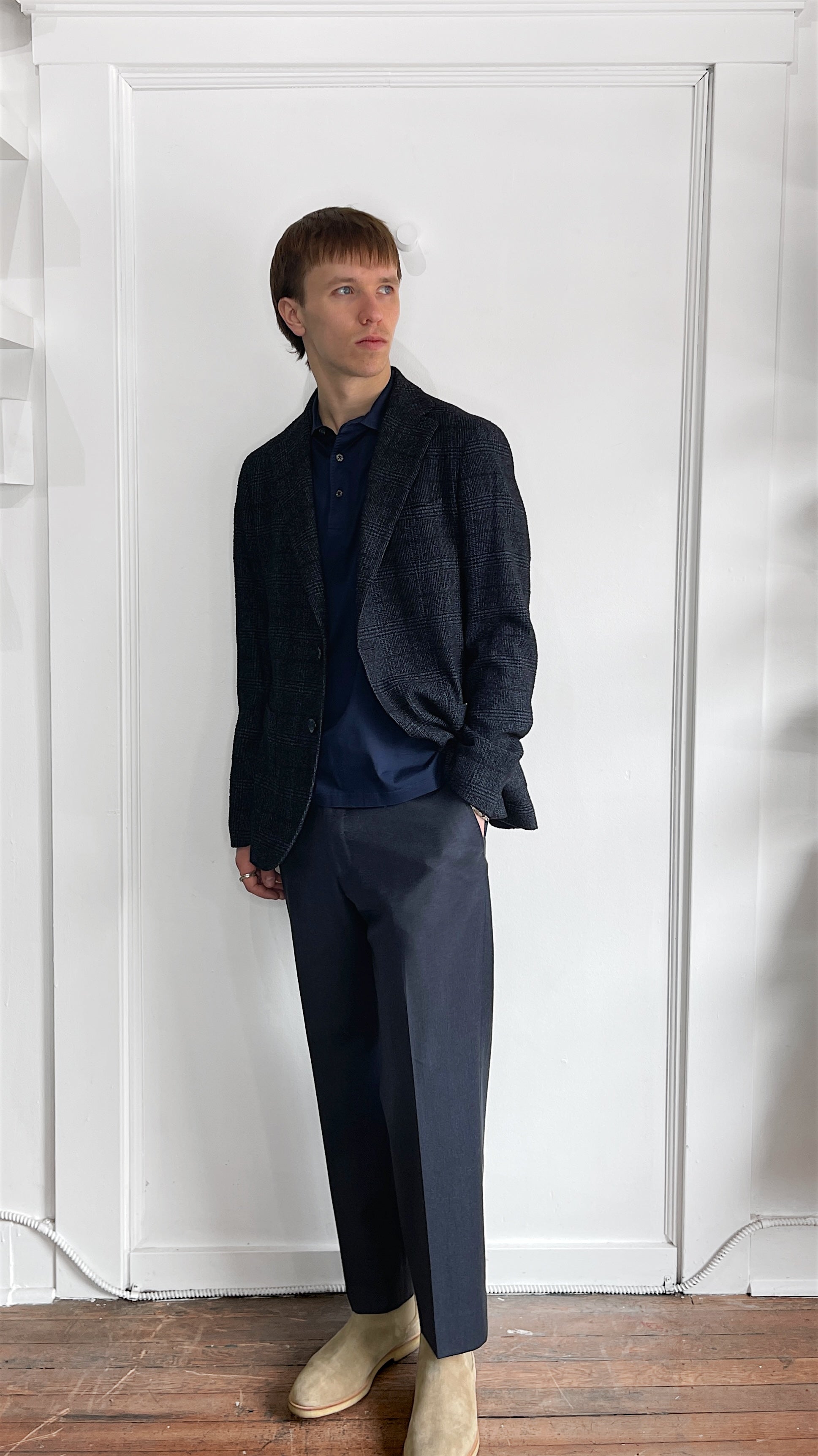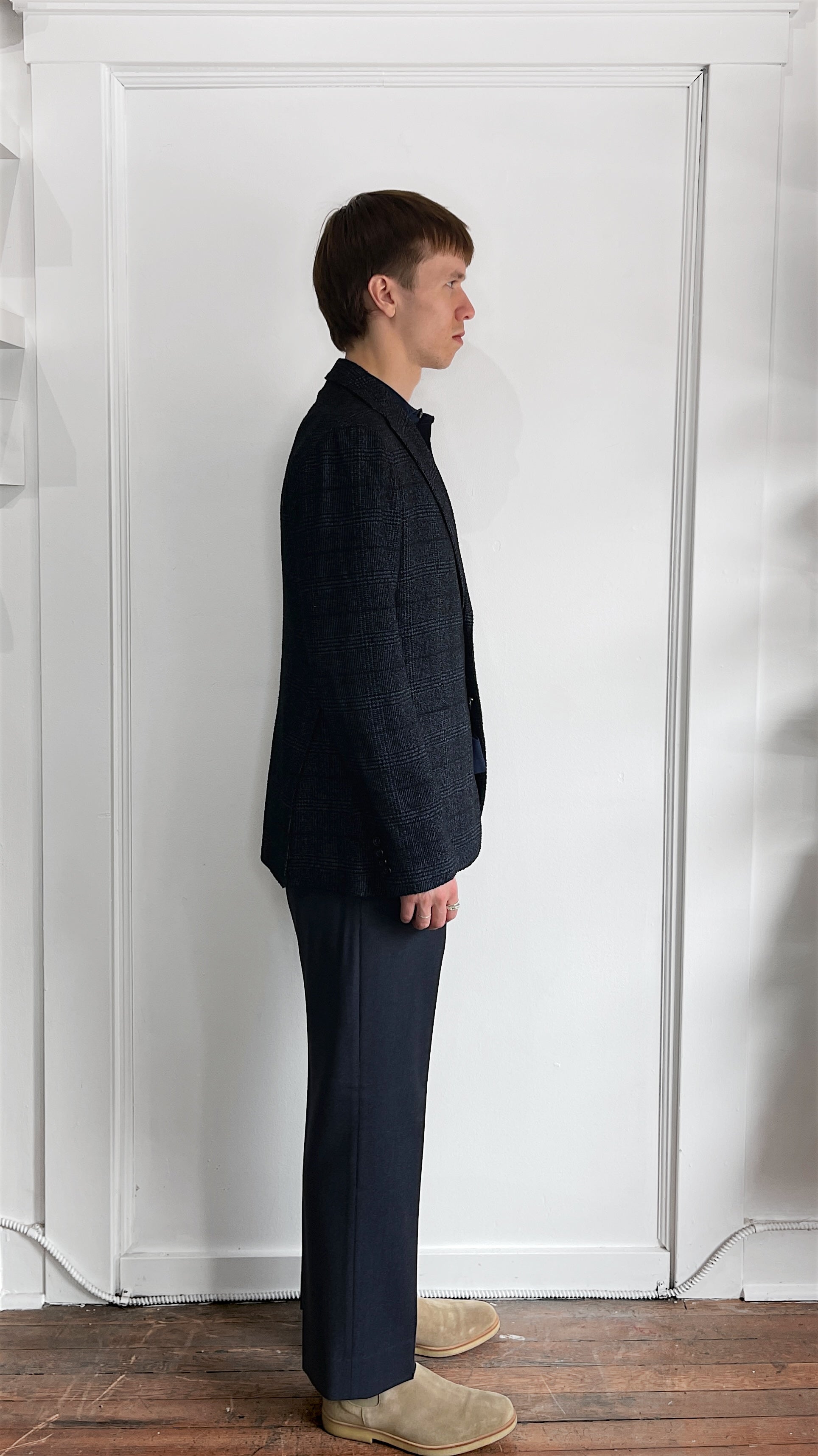 Item: Tagliatore Blue & Black Textured Glen Check Wool Poly Blend Unlined Sport Coat 40R