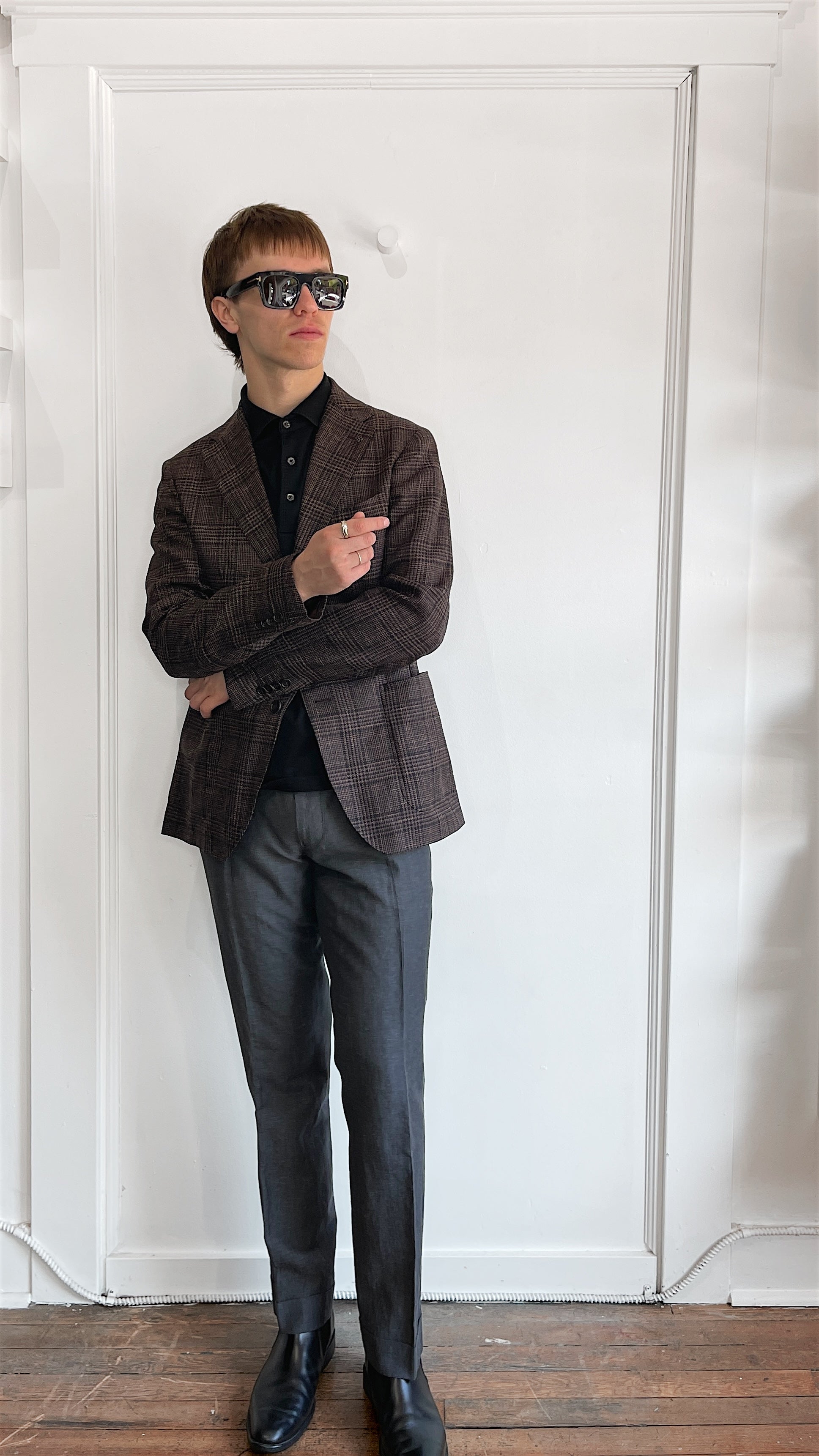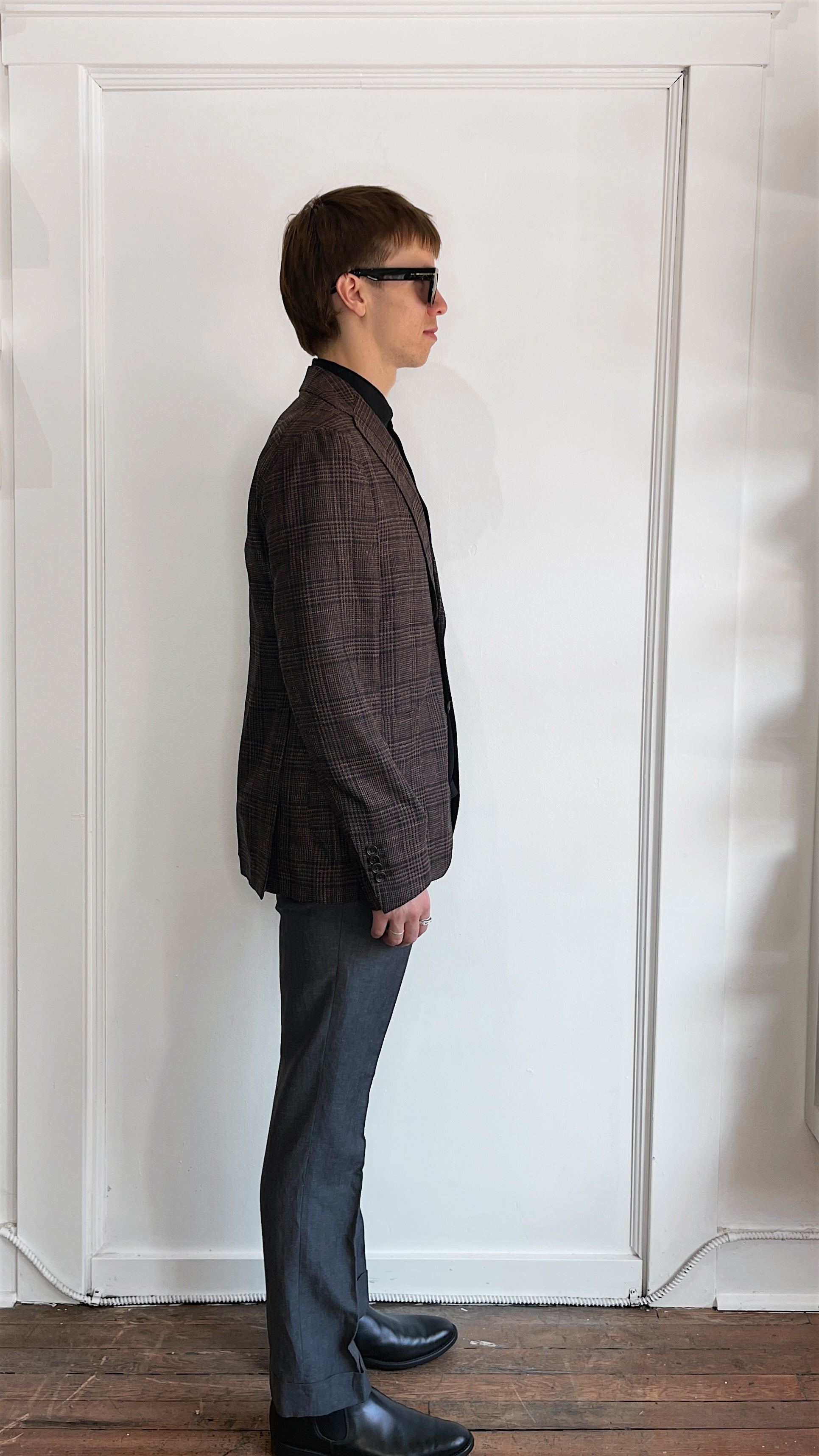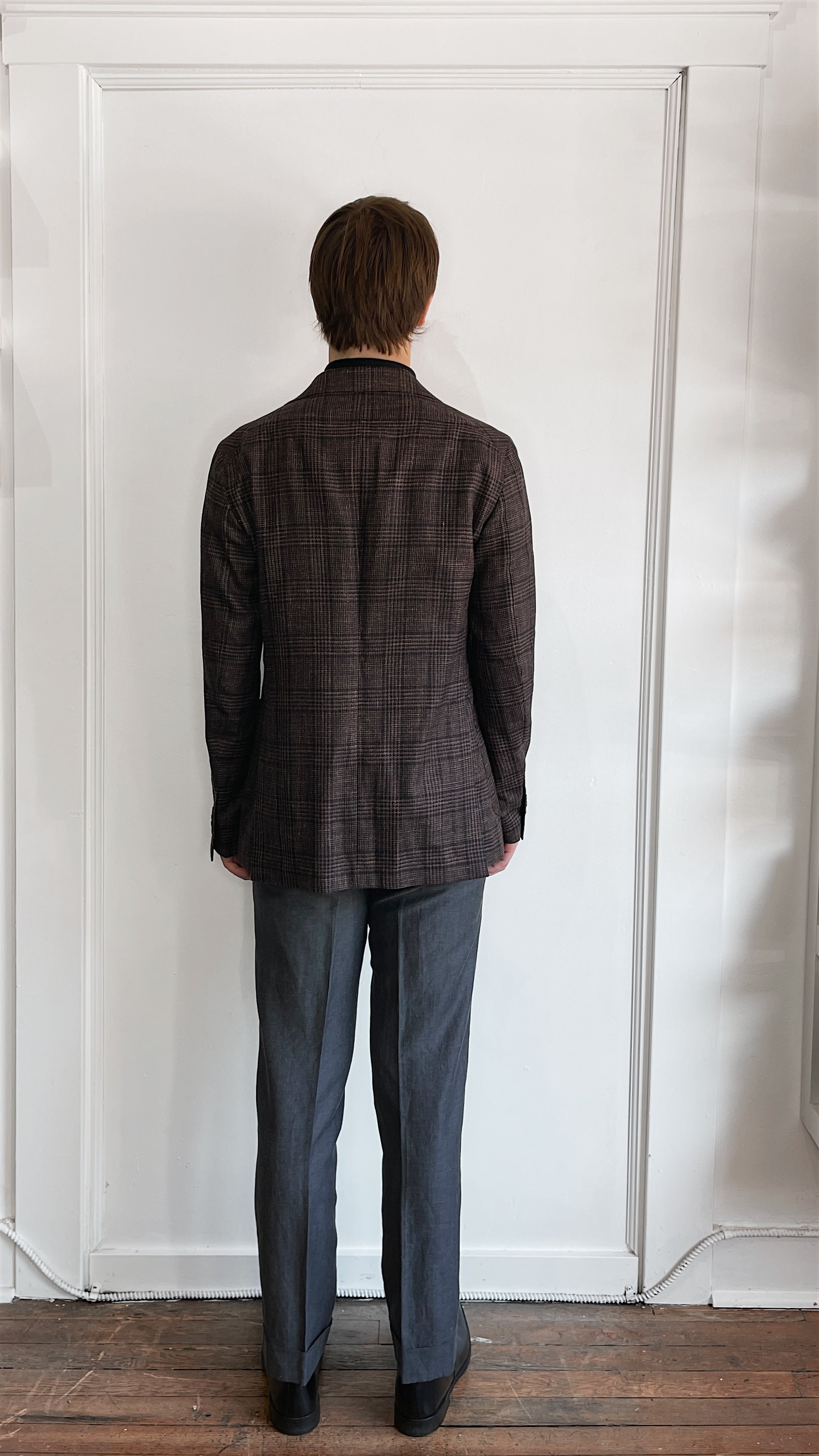 Item: Tagliatore Brown Tonal Glen Check Wool Silk Linen Unlined Sport Coat 40