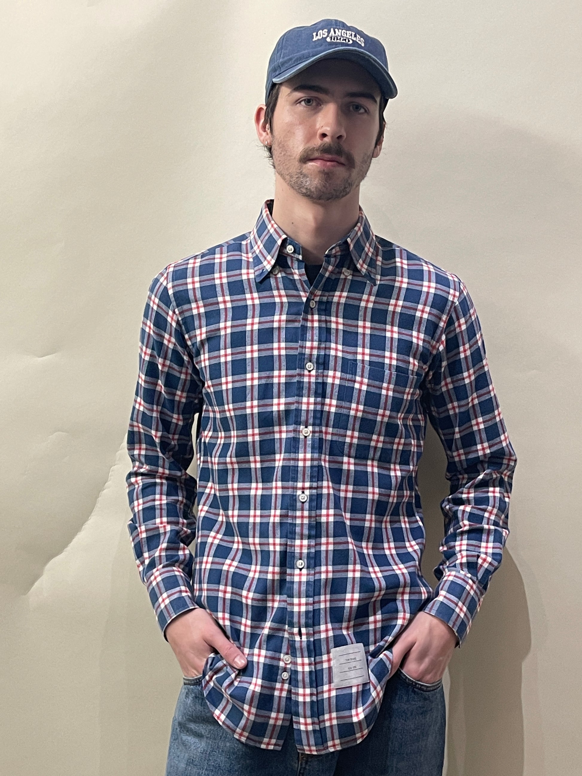Thom Browne Blue & Red Plaid Cotton Flannel Button Up Small - S