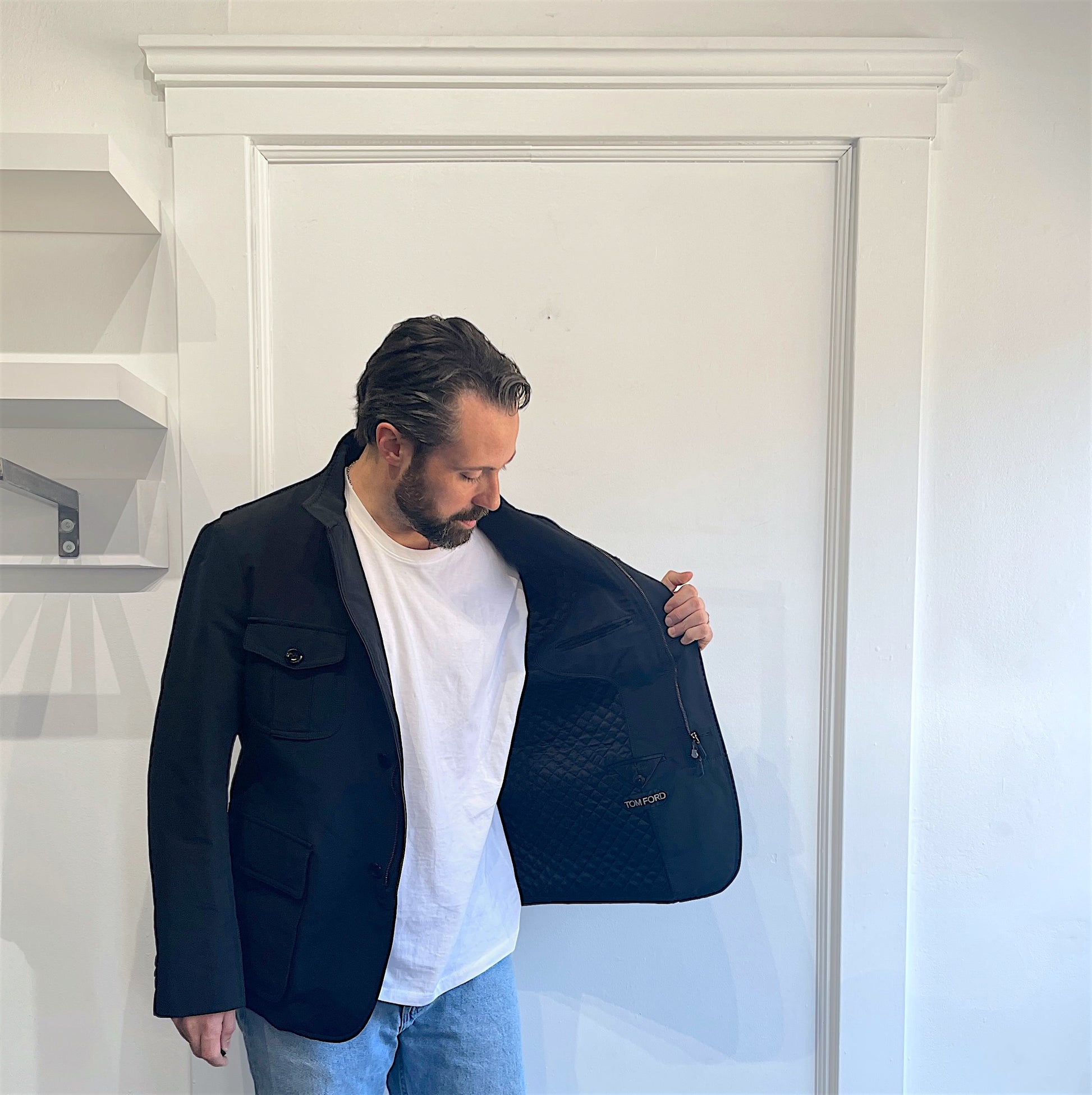 Tom Ford Black Cotton Blend Lined Field Jacket 44
