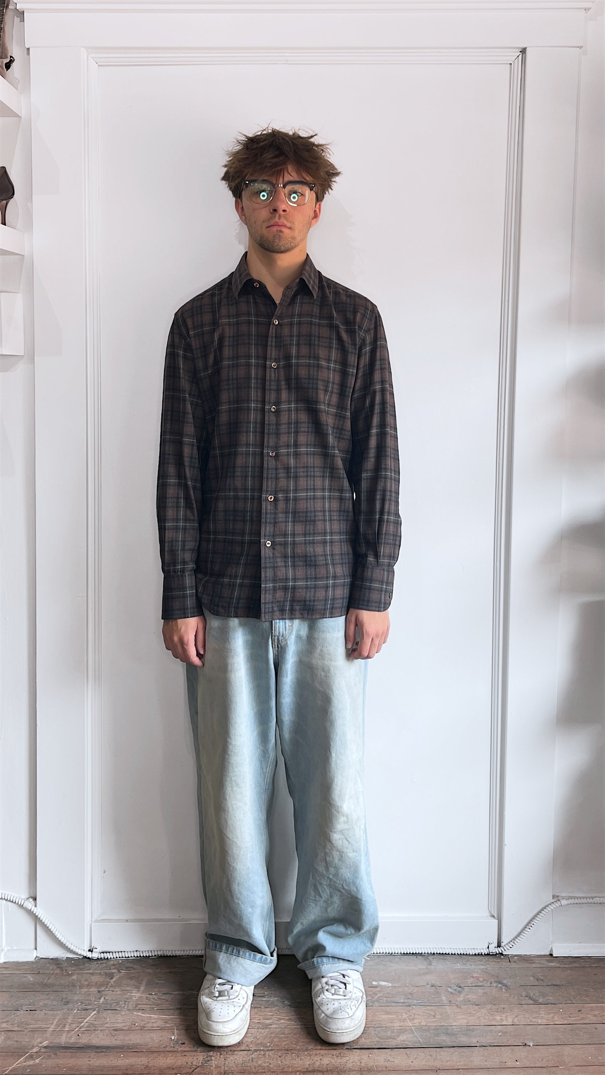 Tom Ford Brown & Black Plaid Cotton Flannel Shirt 16