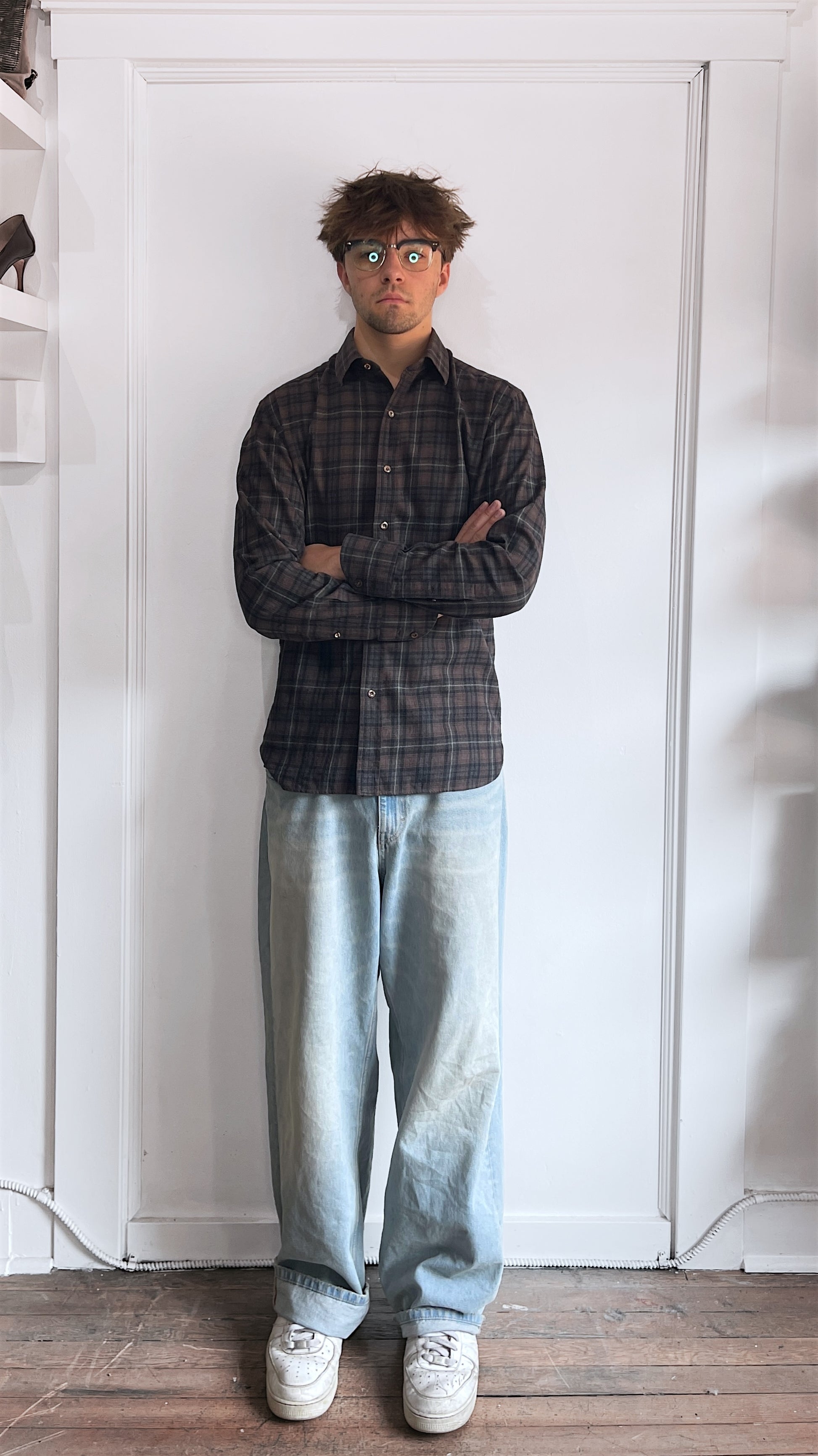 Item: Tom Ford Brown & Black Plaid Cotton LS Flannel Shirt 16