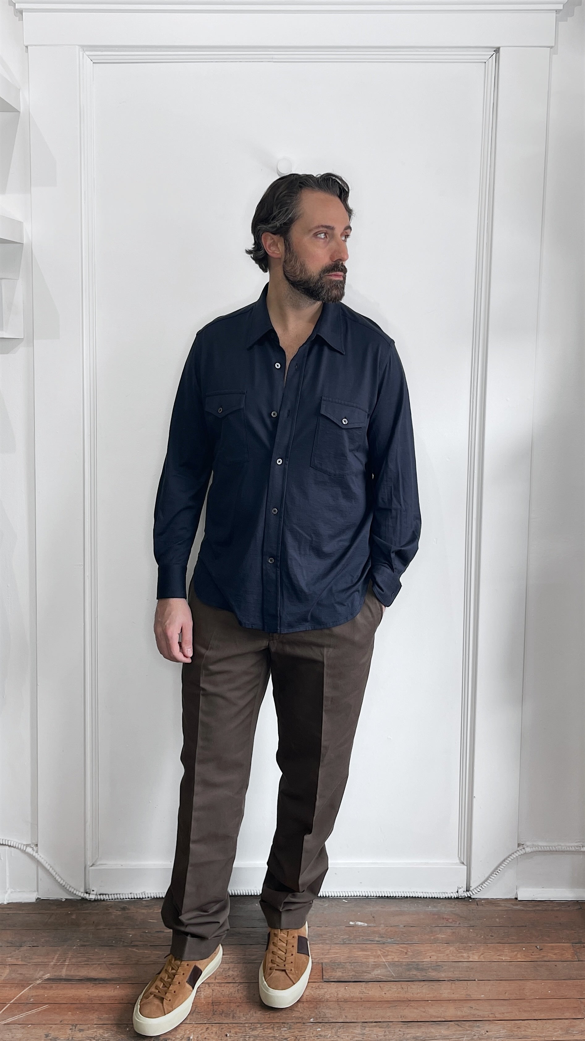 Item: Tom Ford Brown Heavy Cotton Linen Blend Straight Fit Cuffed Trousers 36