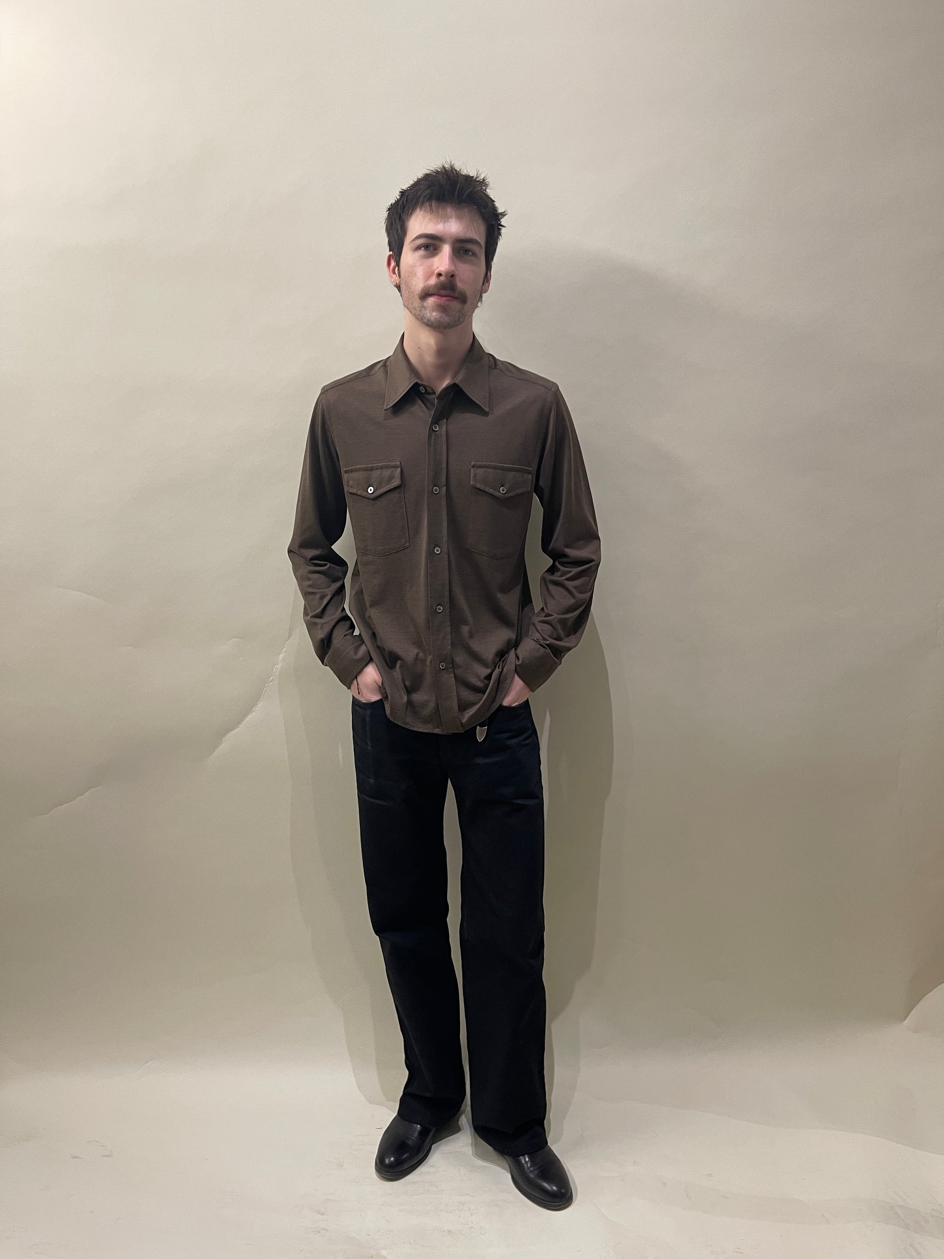 Tom Ford Brown Silk Cotton Double Pocket Long Sleeve Casual Button Up Shirt 38 - Made in Portugal