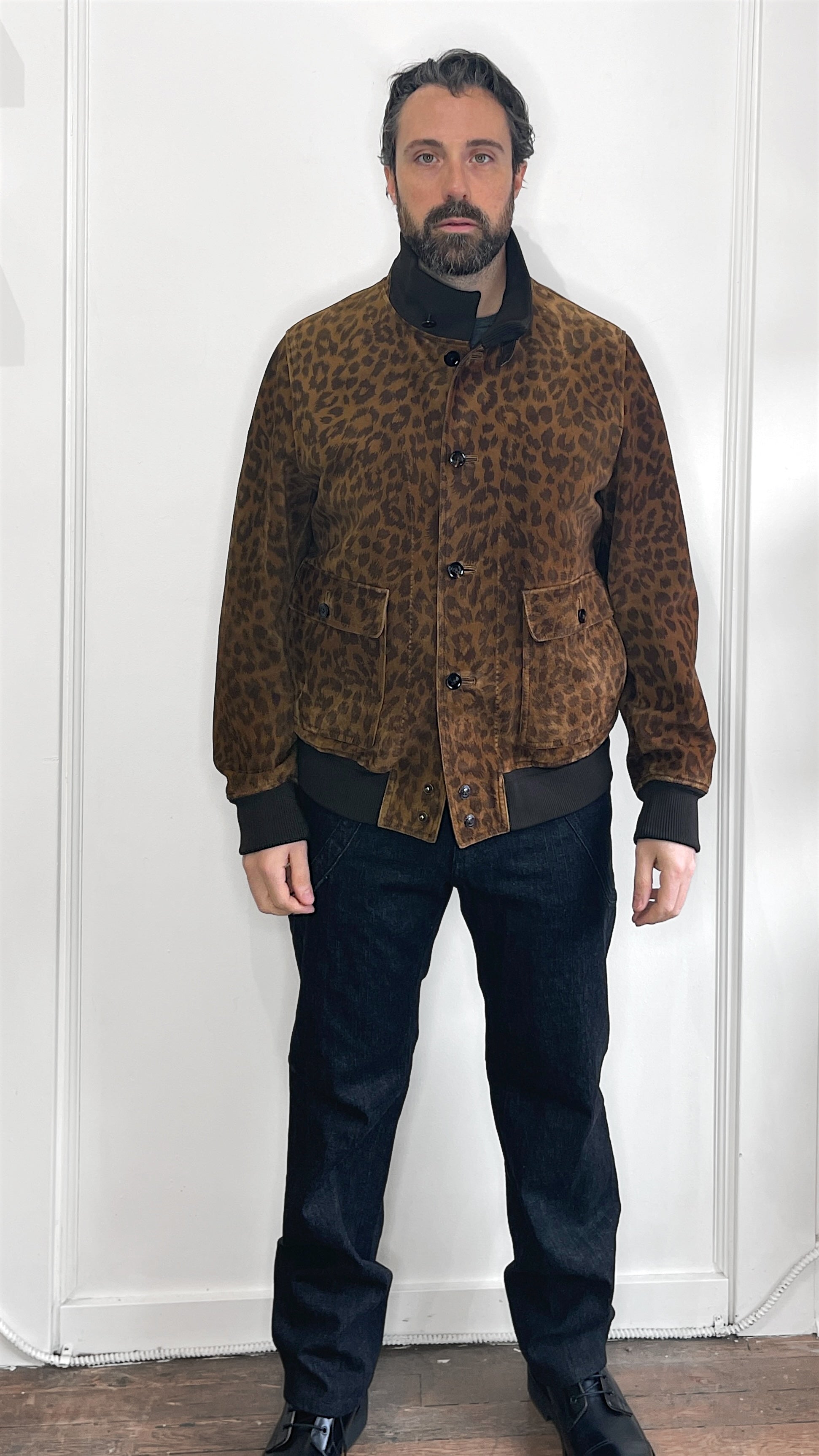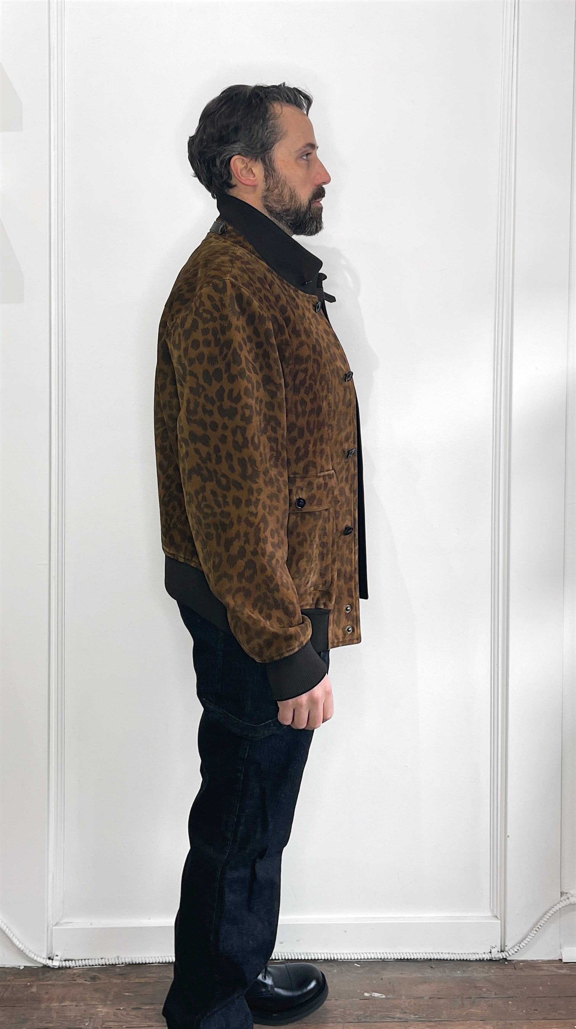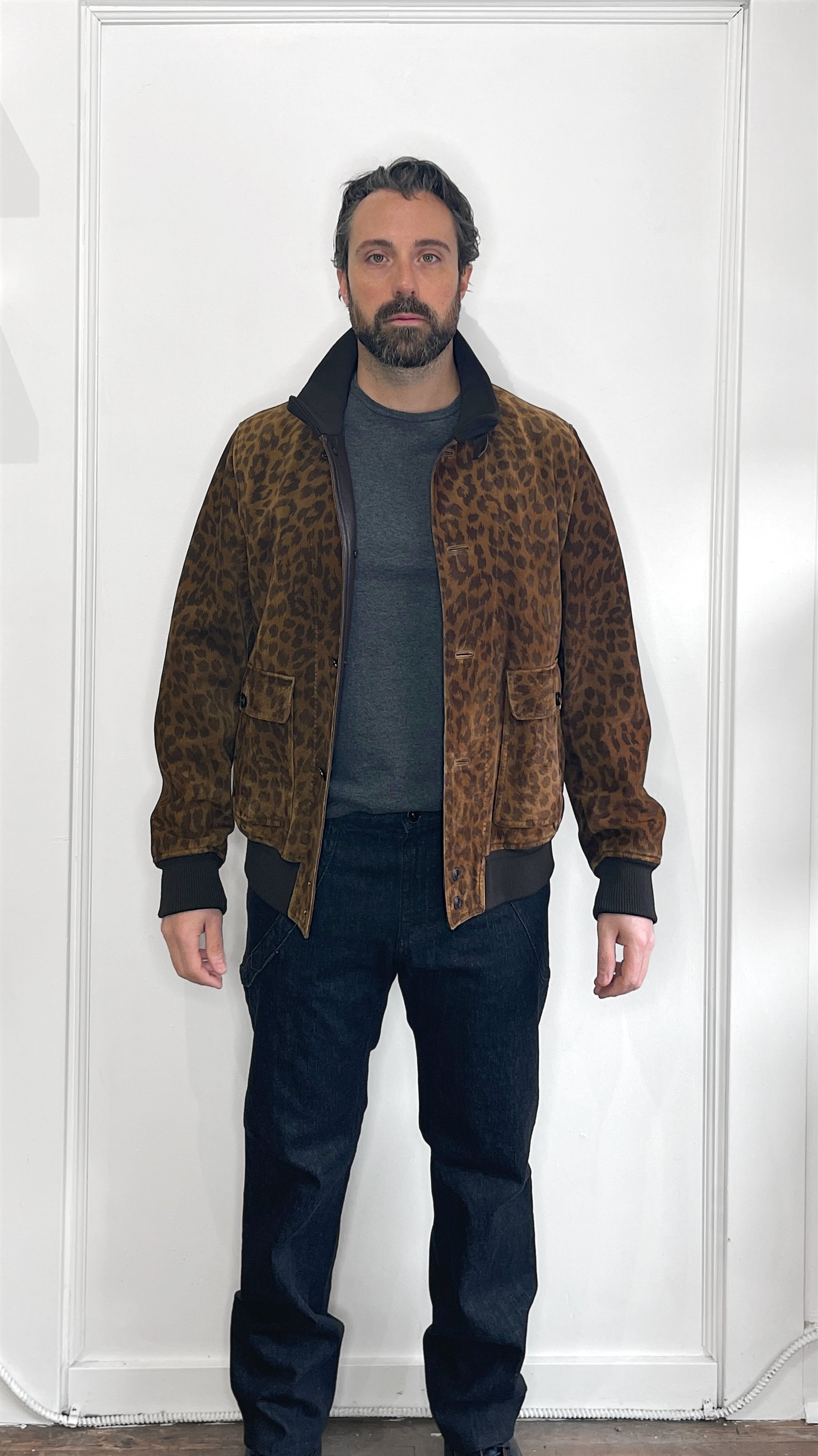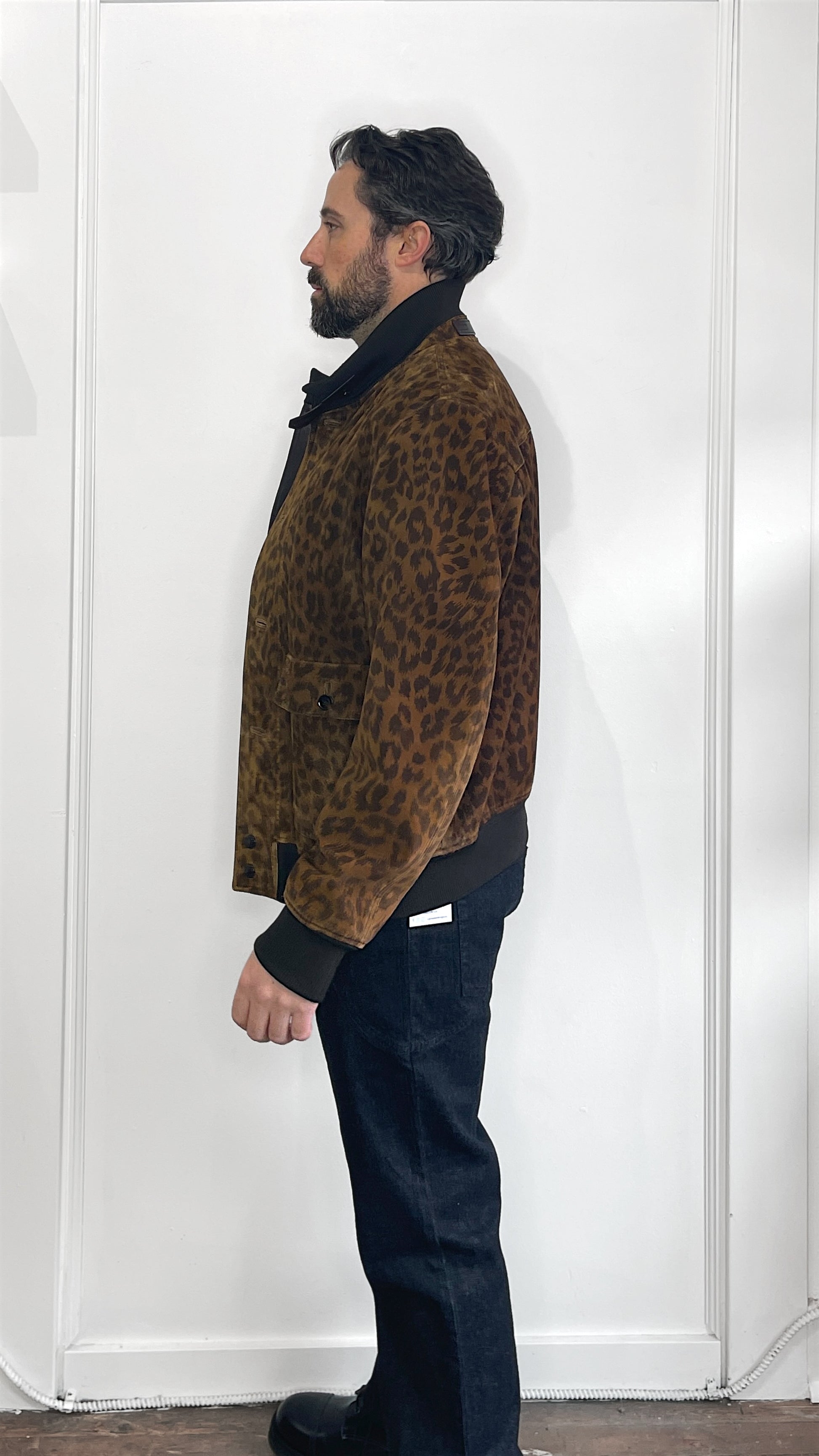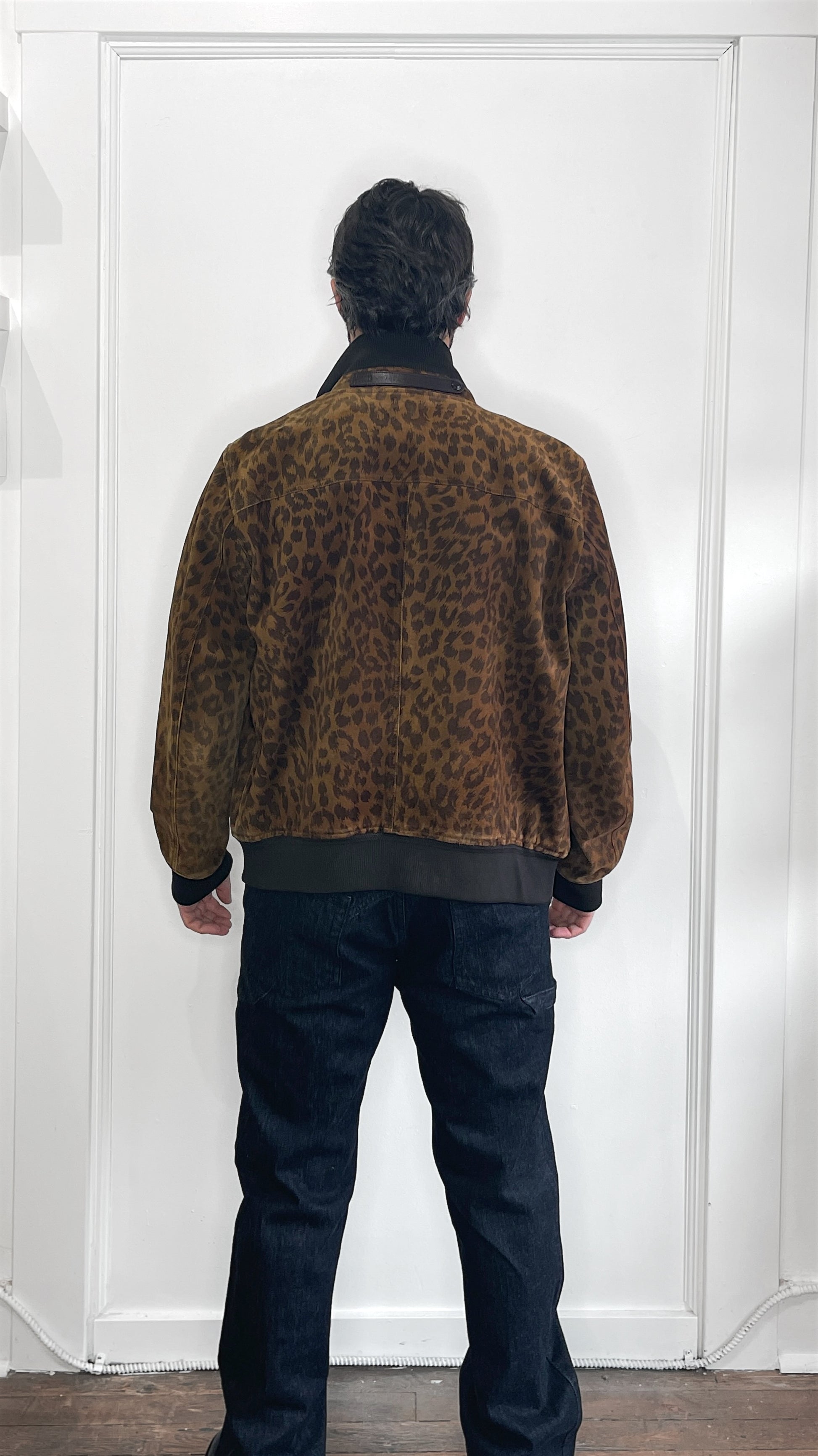 Item: Tom Ford Brown Suede Leopard Print Bomber Jacket W/ Leather Details 46