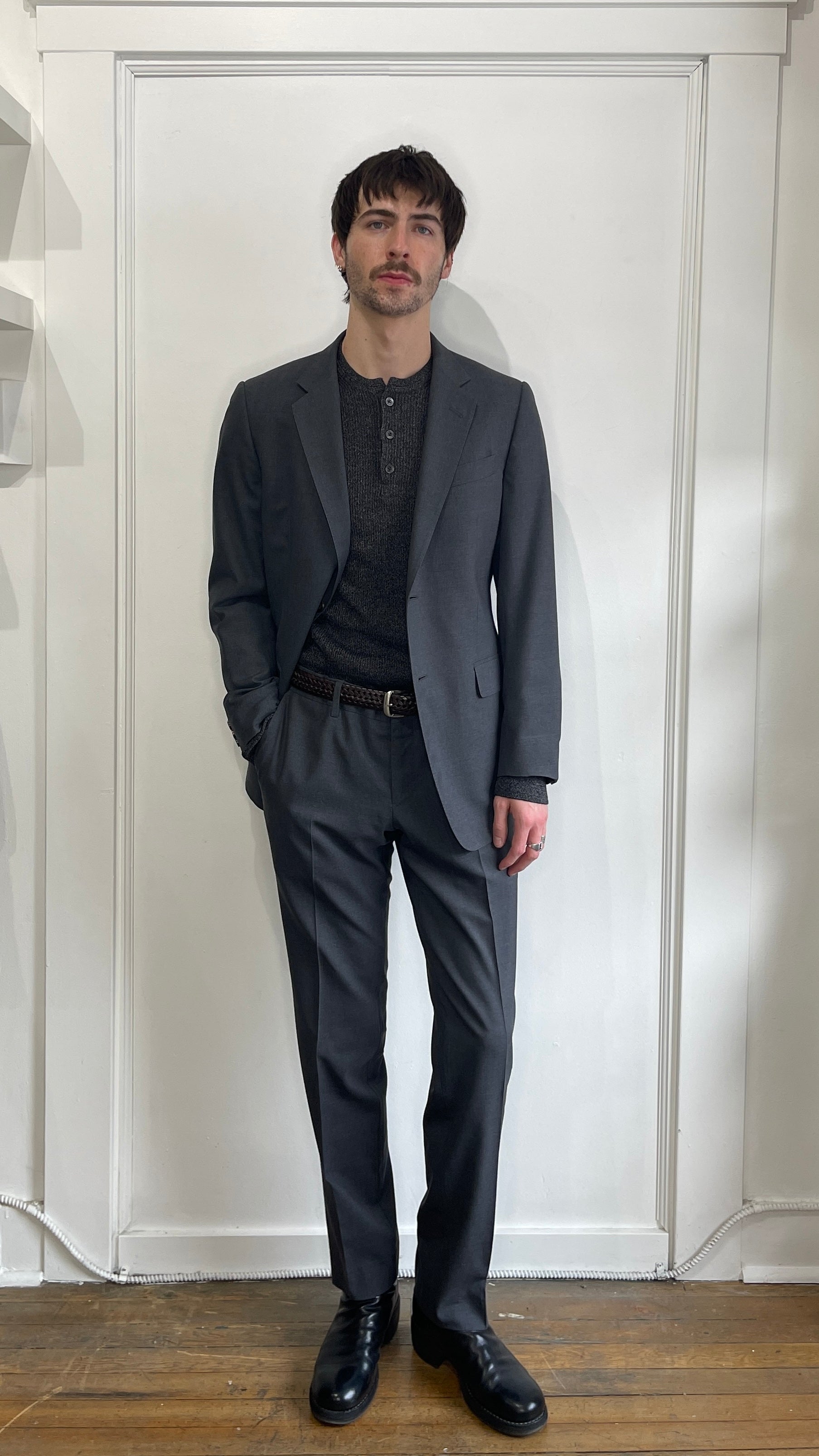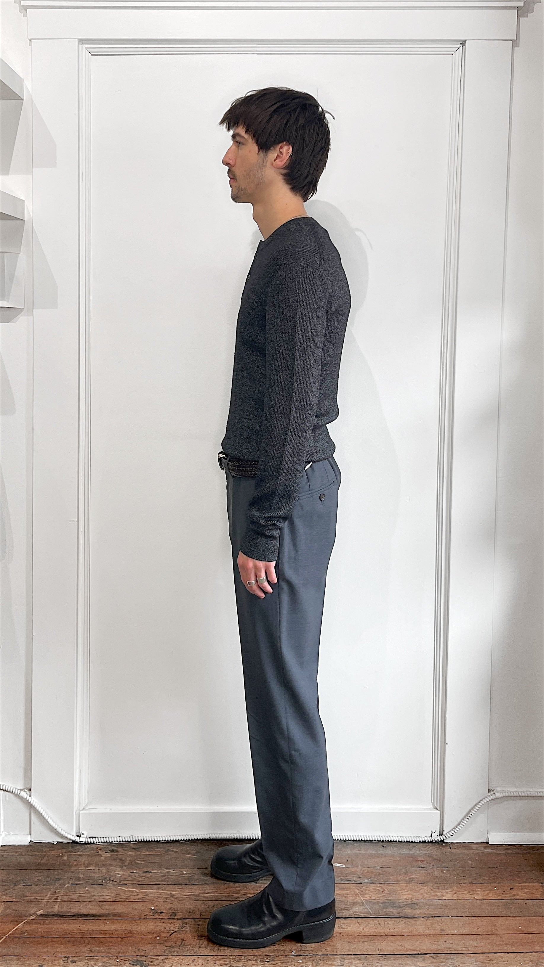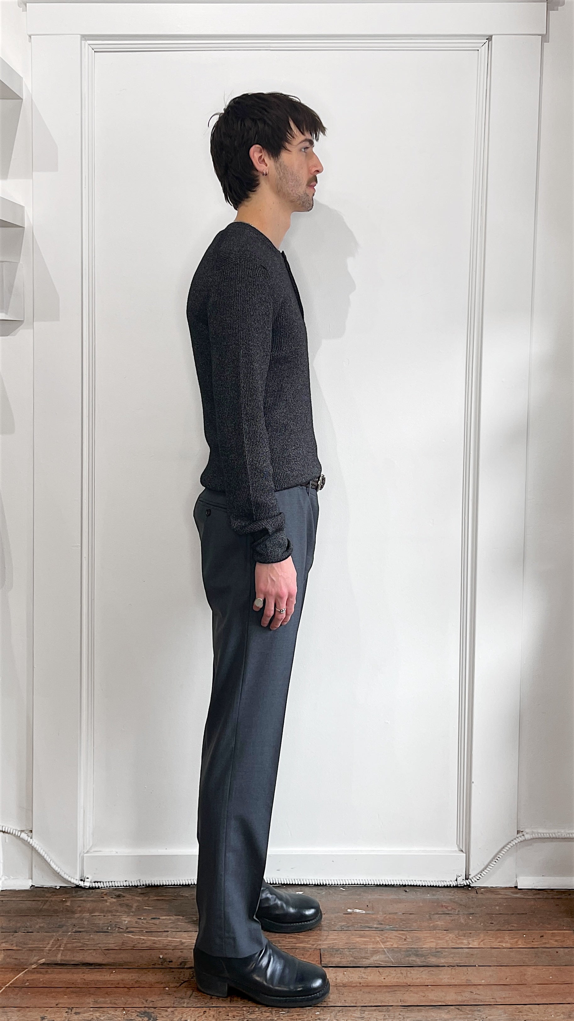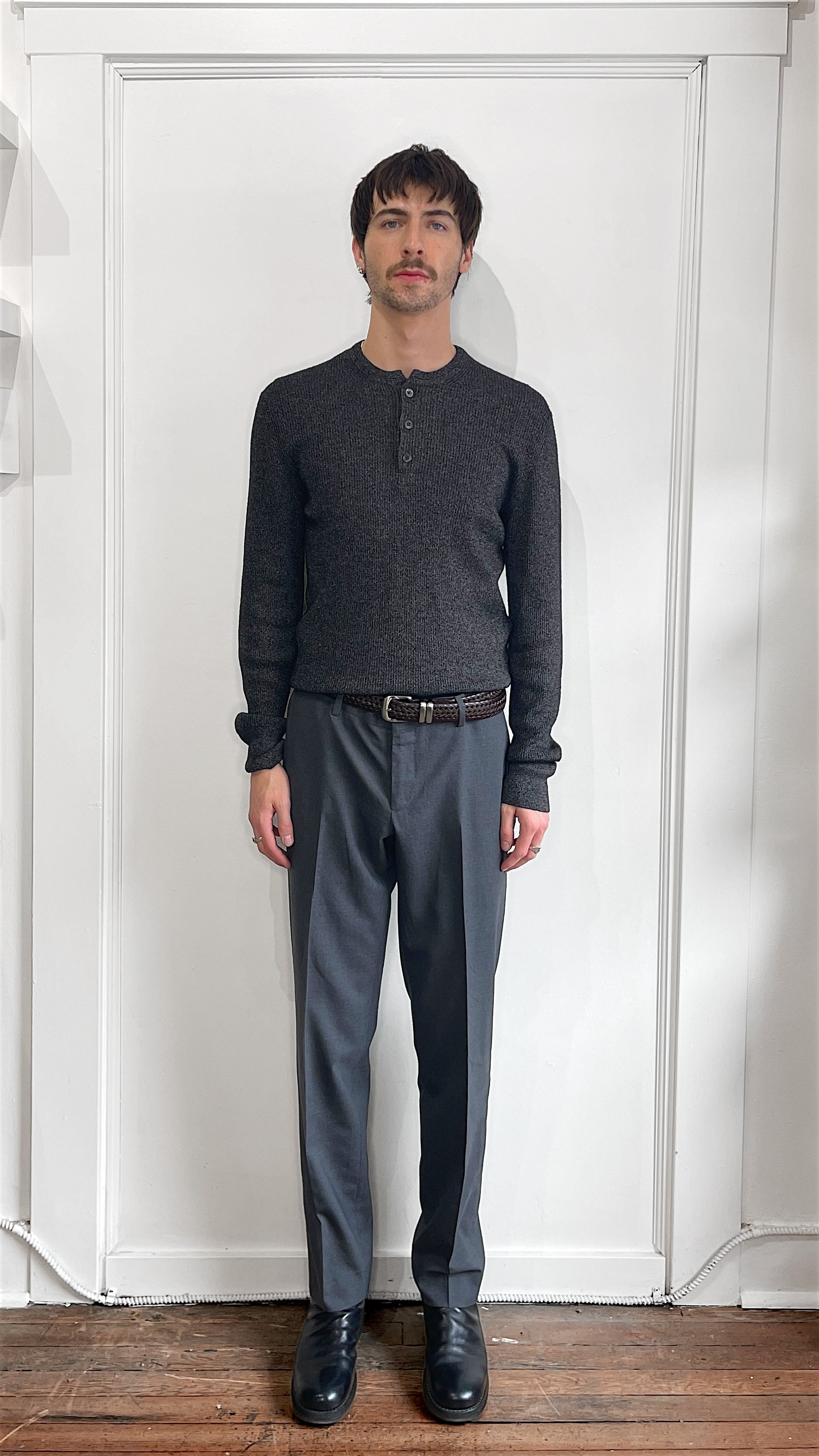 Item: Tom Ford Charcoal Grey Melange Silk Wool Blend Henley Sweater 42