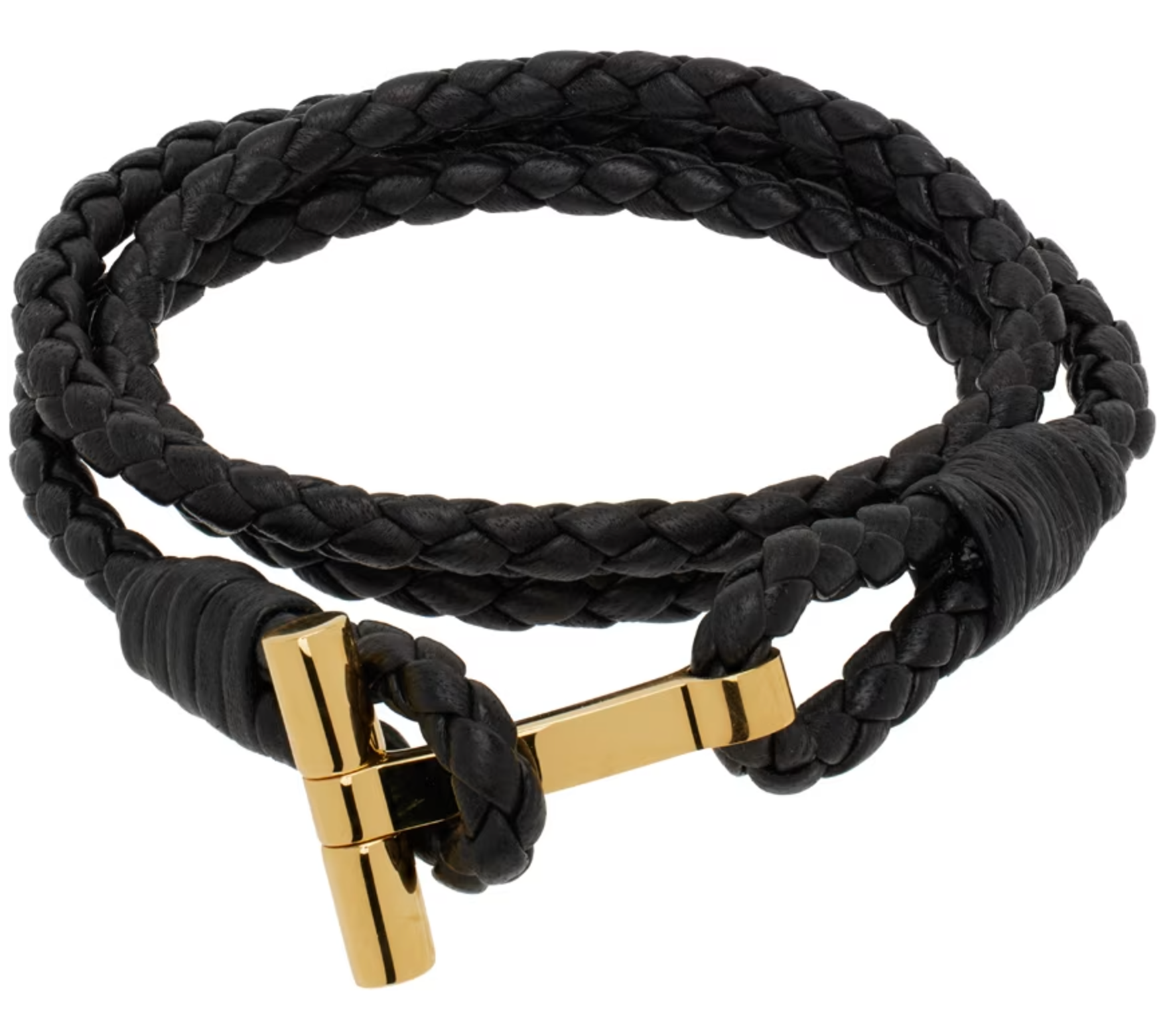 Tom Ford Dark Brown Leather Braided Wrap Bracelet W/ Gold T Buckle OS - Made in Italy