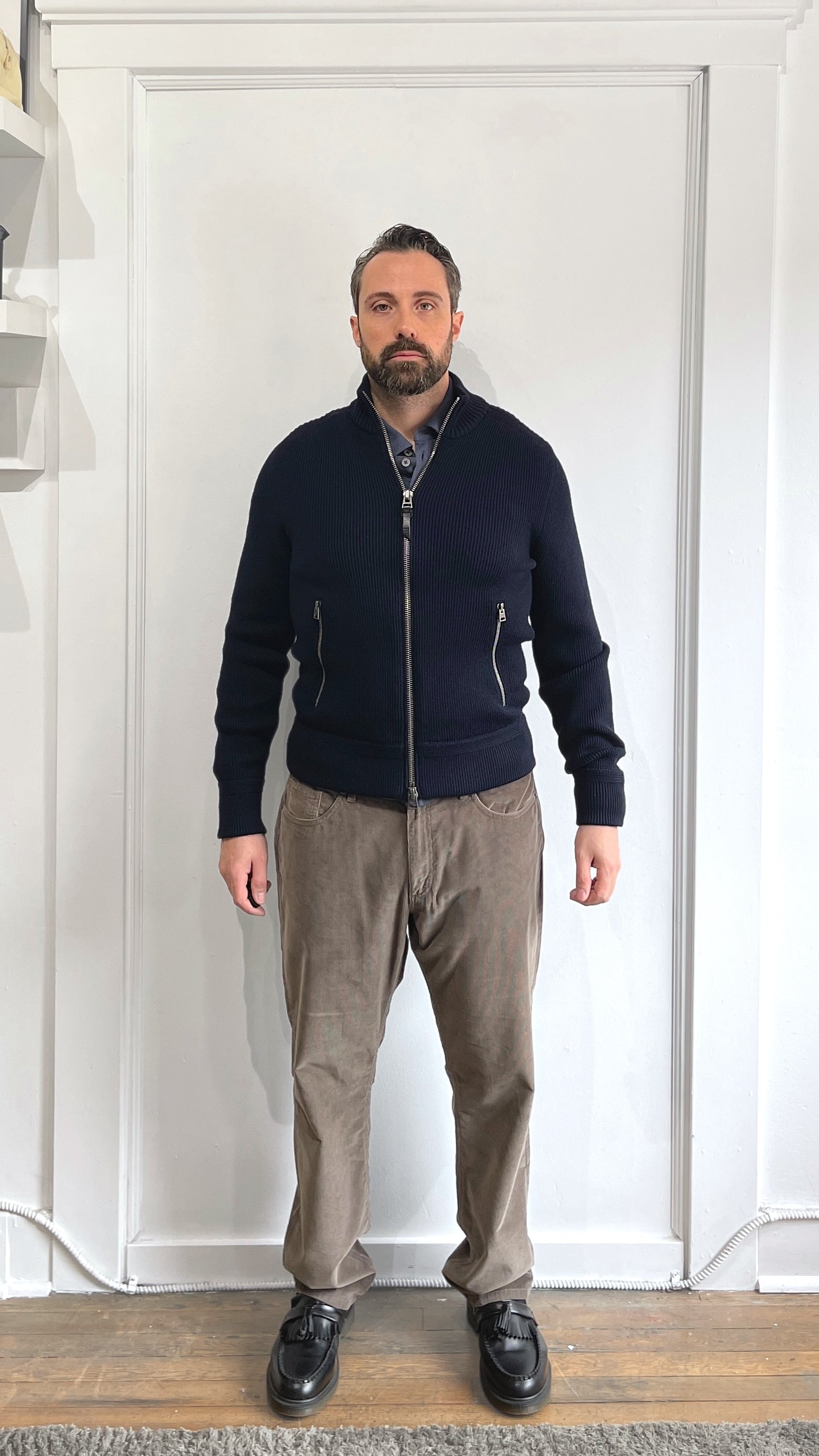 Item: Tom Ford Dark Brown/Grey Micro Corduroy Straight Fit Pants 32