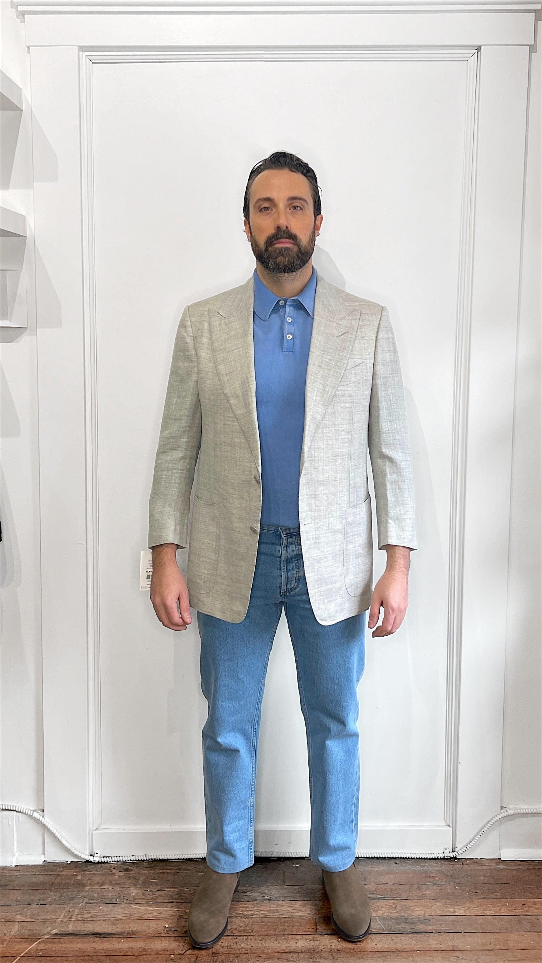 Tom Ford Light Grey Linen Wool Silk Blend Peak Lapel Sport Coat 42S