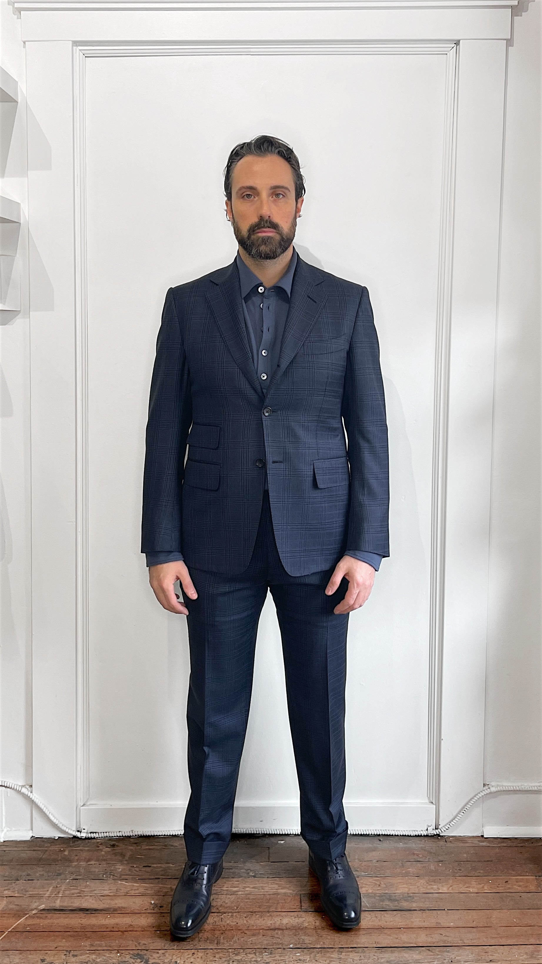Item: Tom Ford Navy & Black Glen Check Wool 3 Roll 2 Suit 40