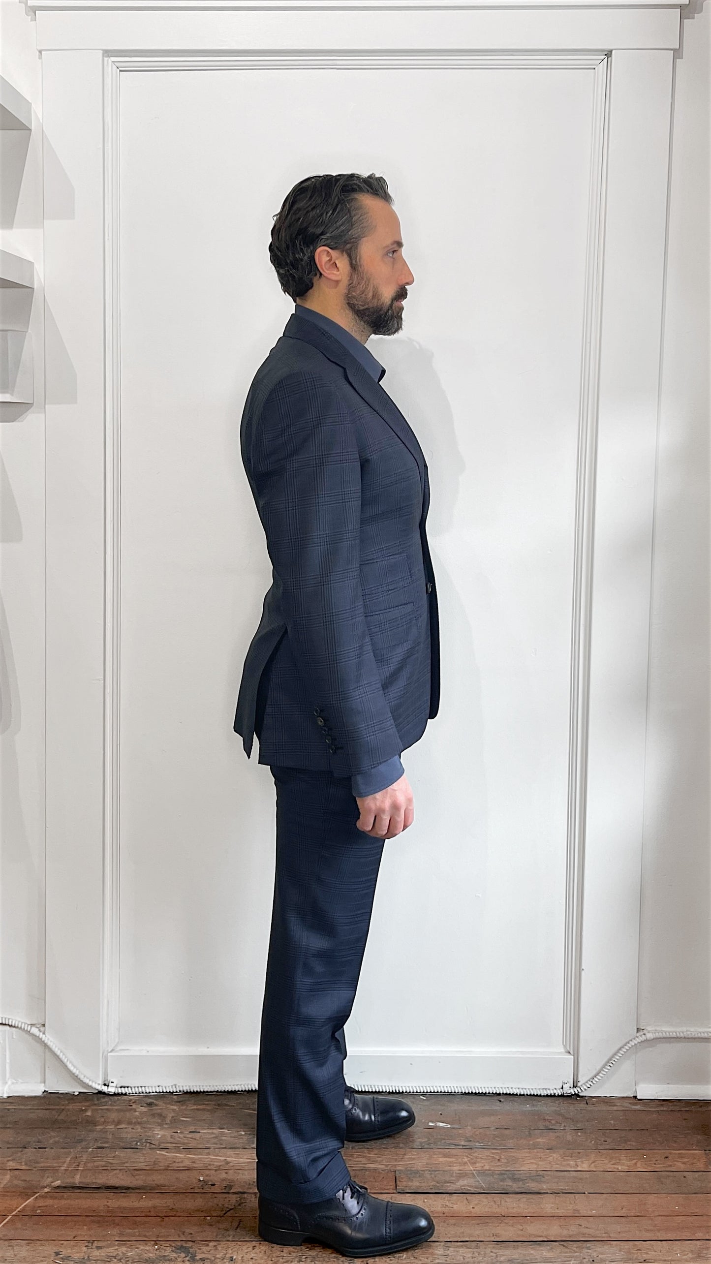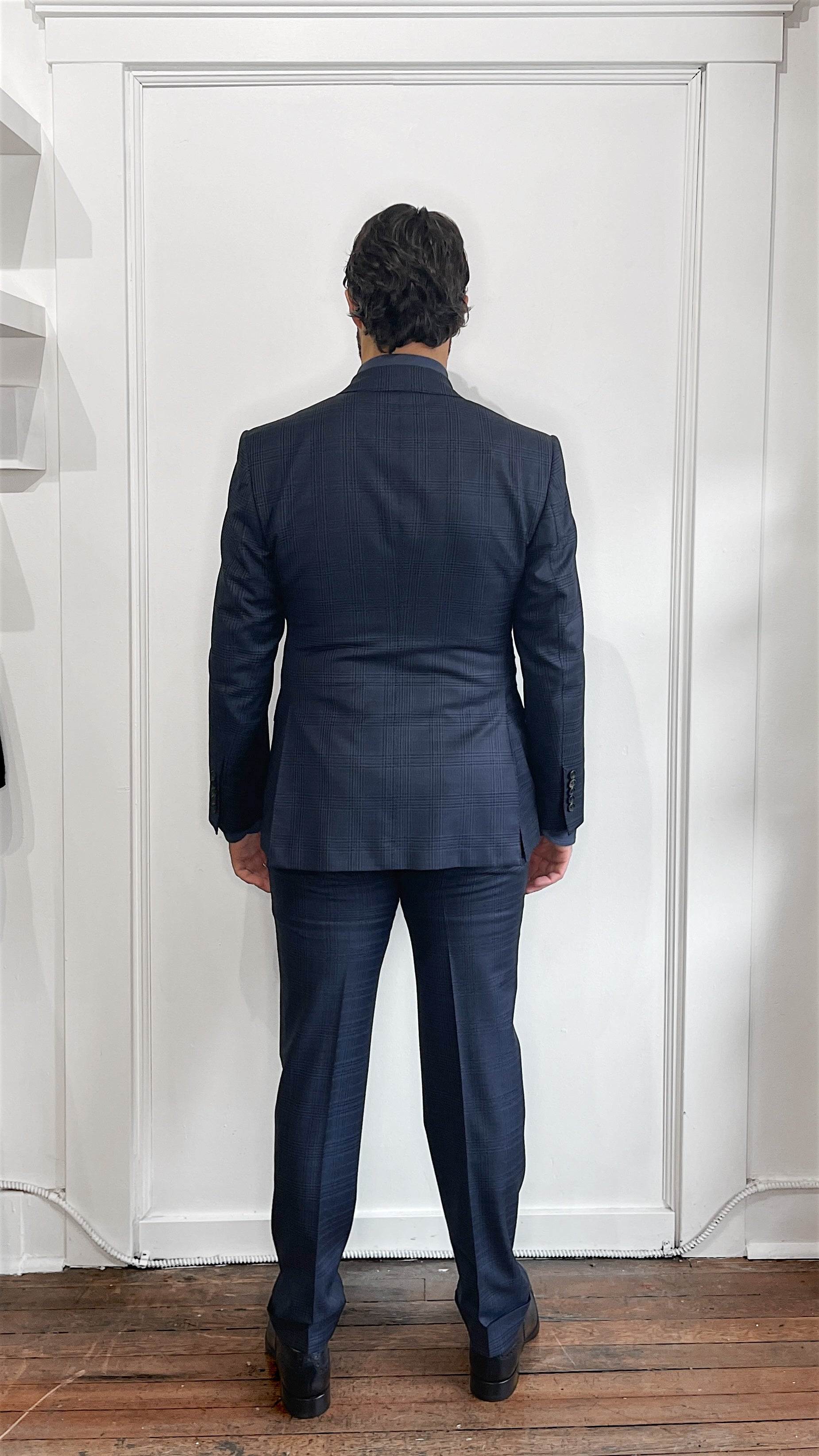 Tom Ford Navy & Black Glen Check Wool 3 Roll 2 Suit 40