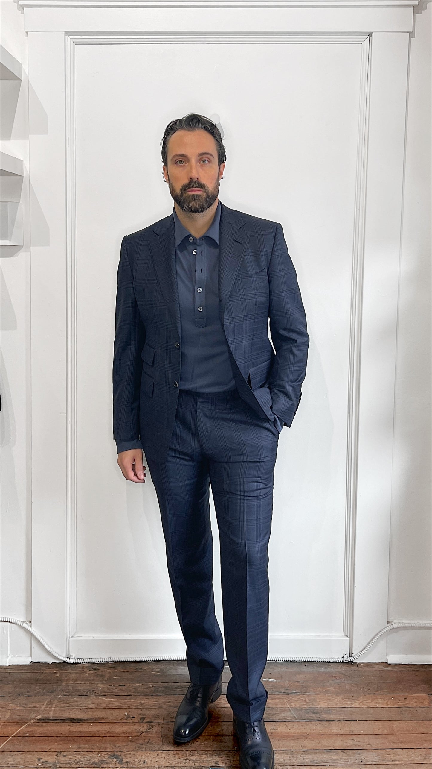Colour: Navy with Glen Check Plaid