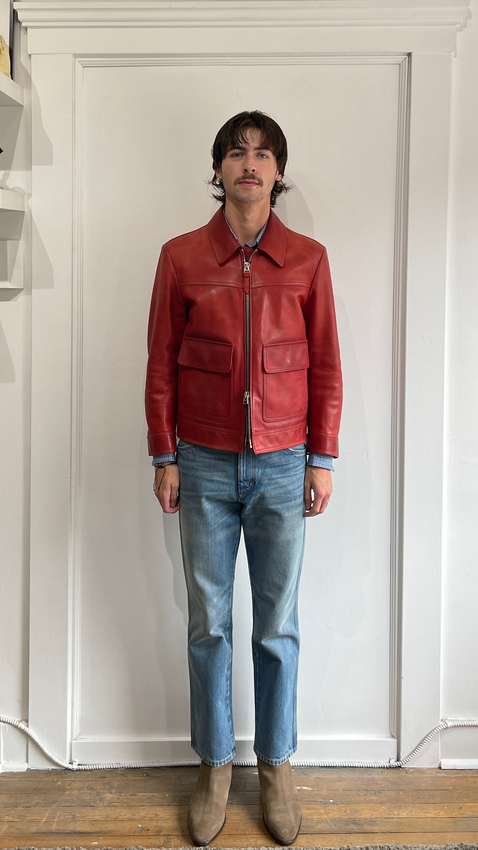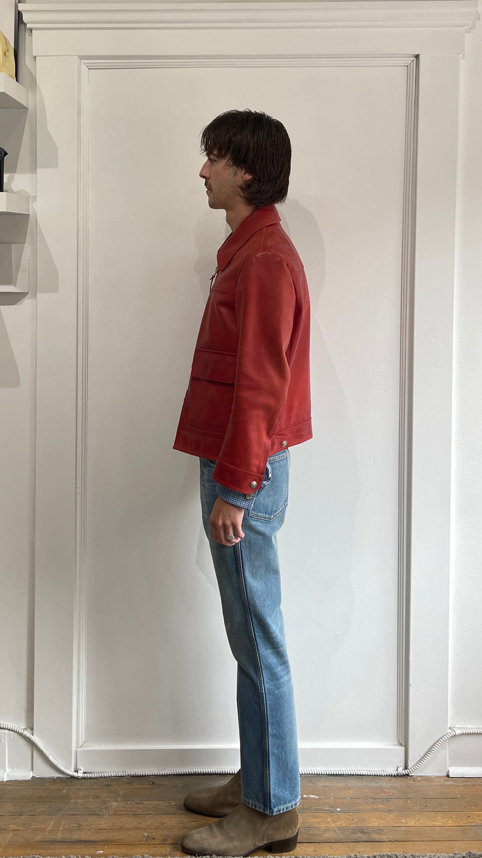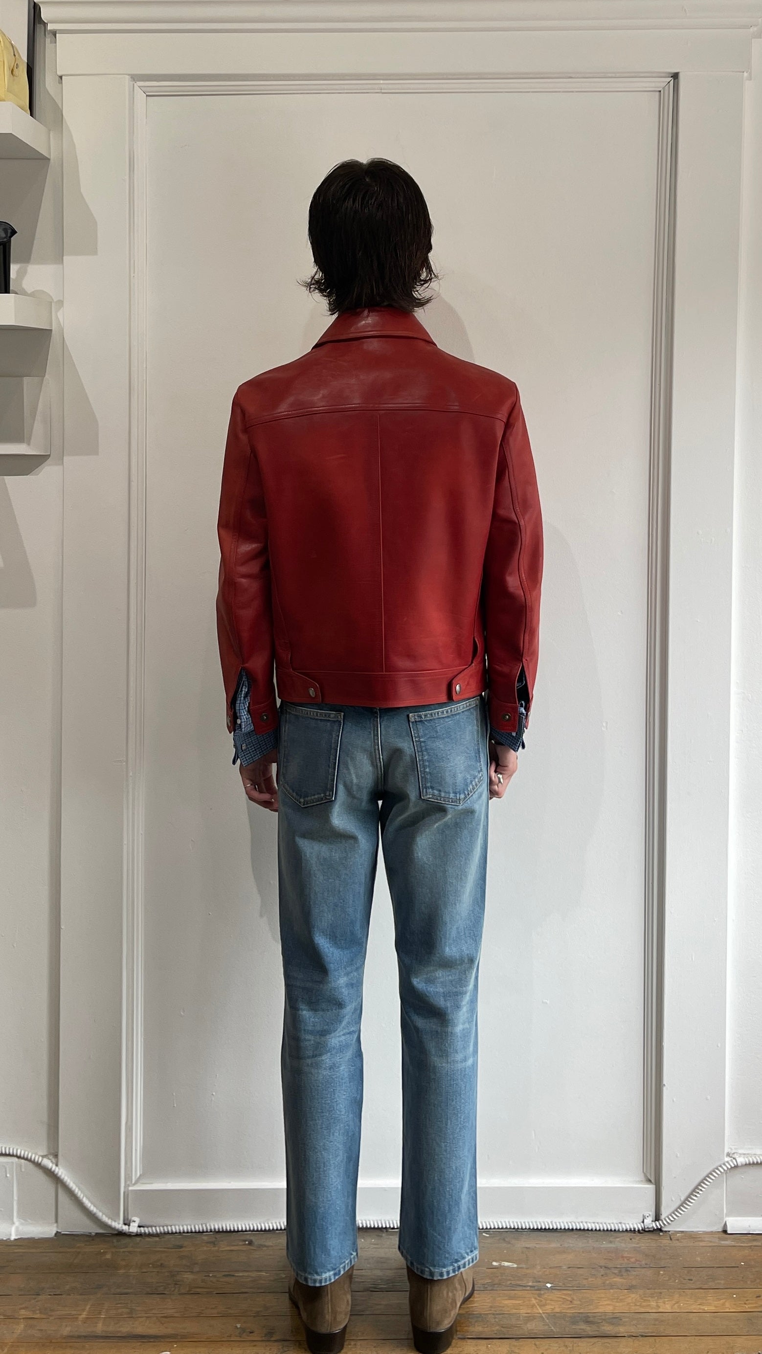Tom Ford Red Embossed Calfskin Leather Trucker Jacket 40R / 50R