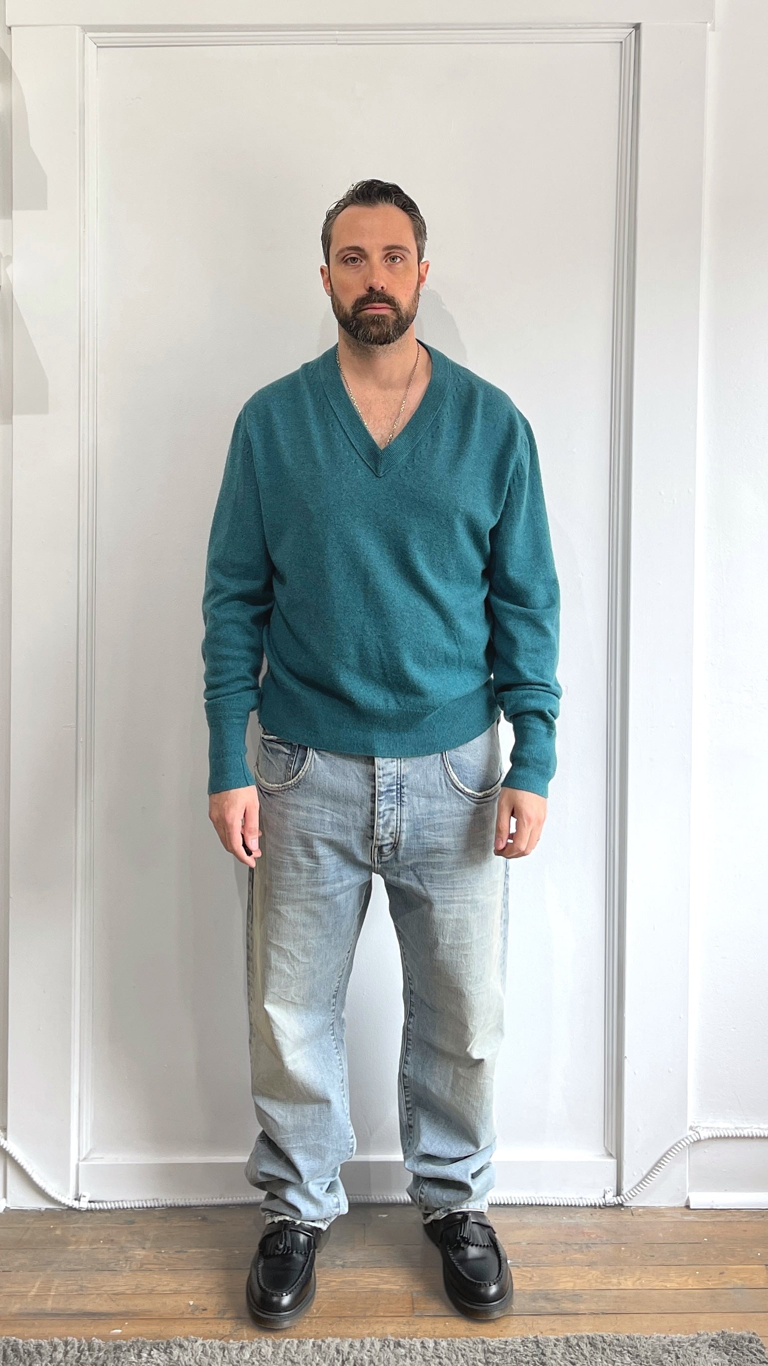 Item: Tom Ford Teal Cashmere V-Neck Sweater 54/44