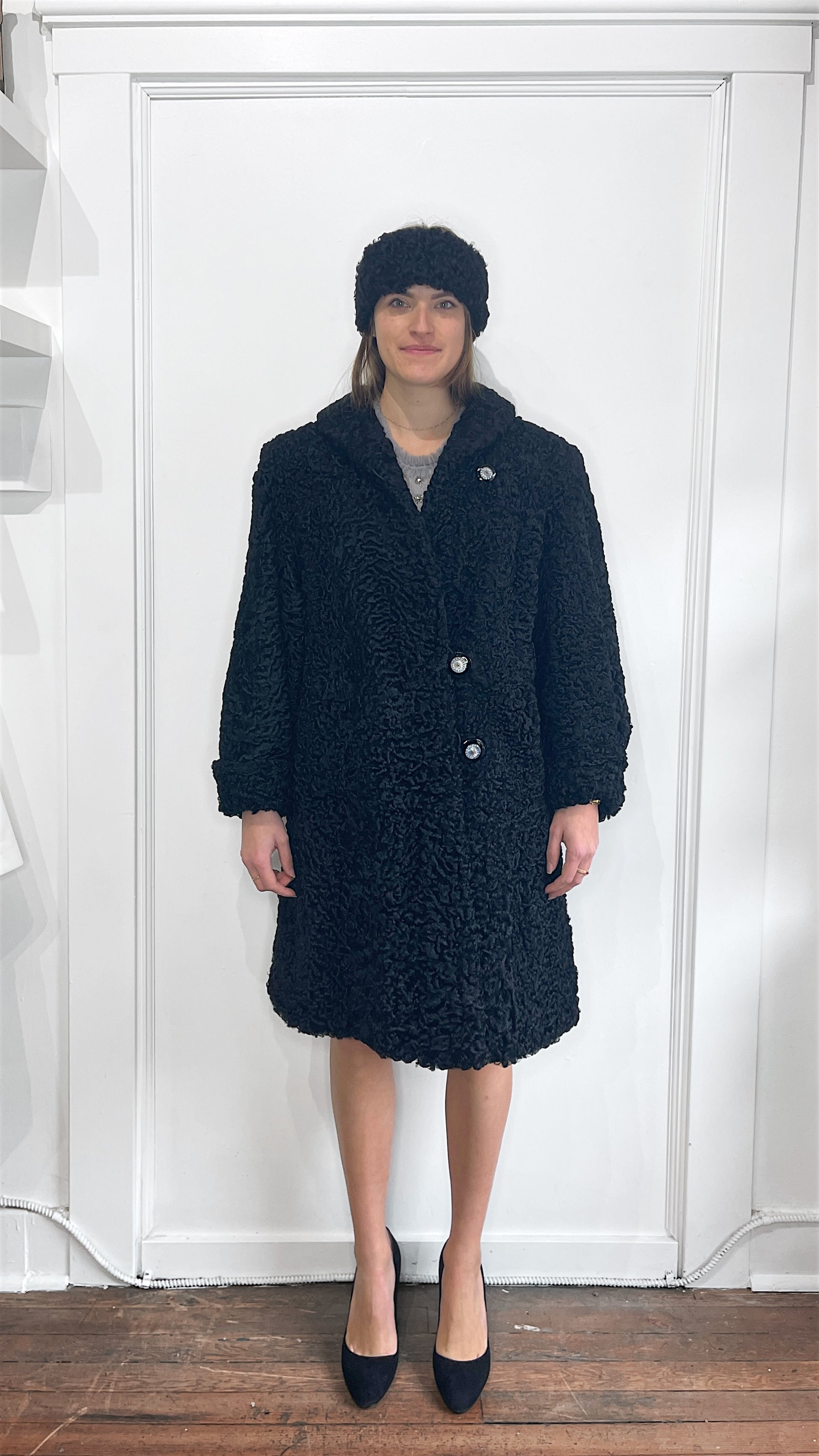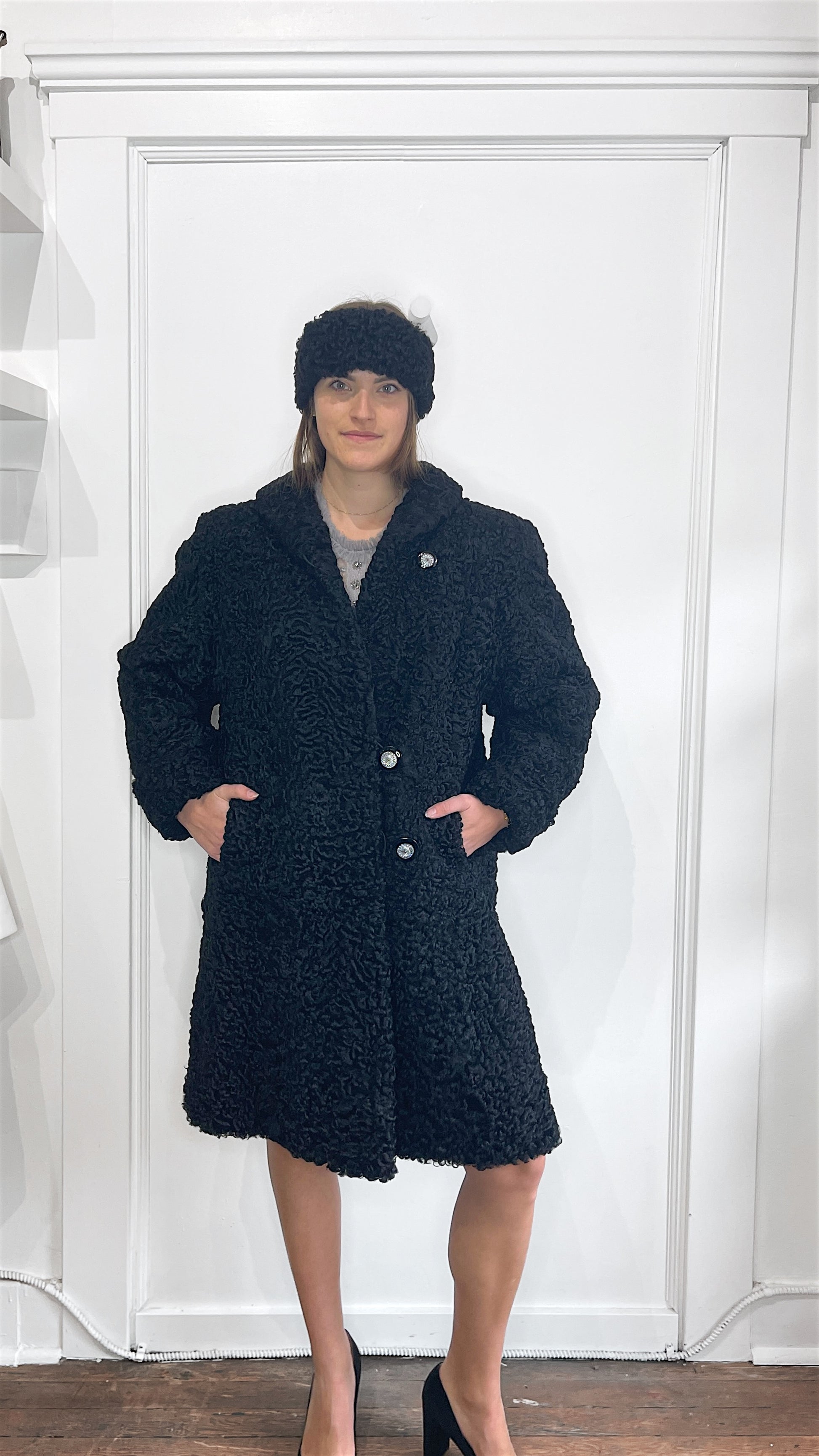 Item: Unbranded Black Sheep Wool Mid Length Overcoat W/ Geometric Buttons Medium