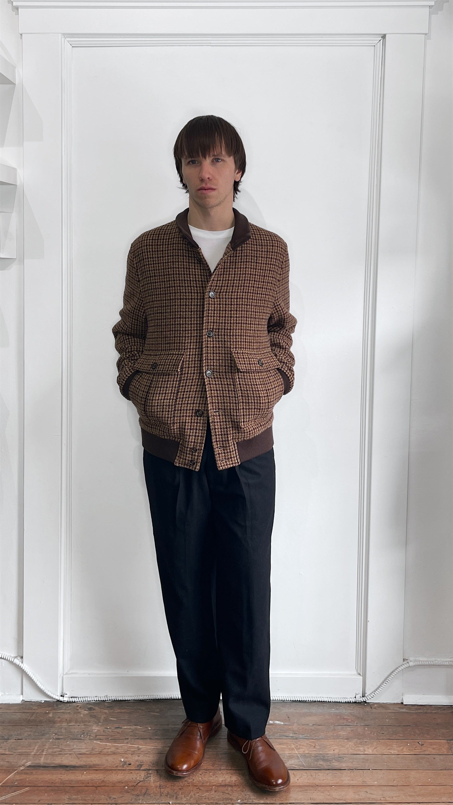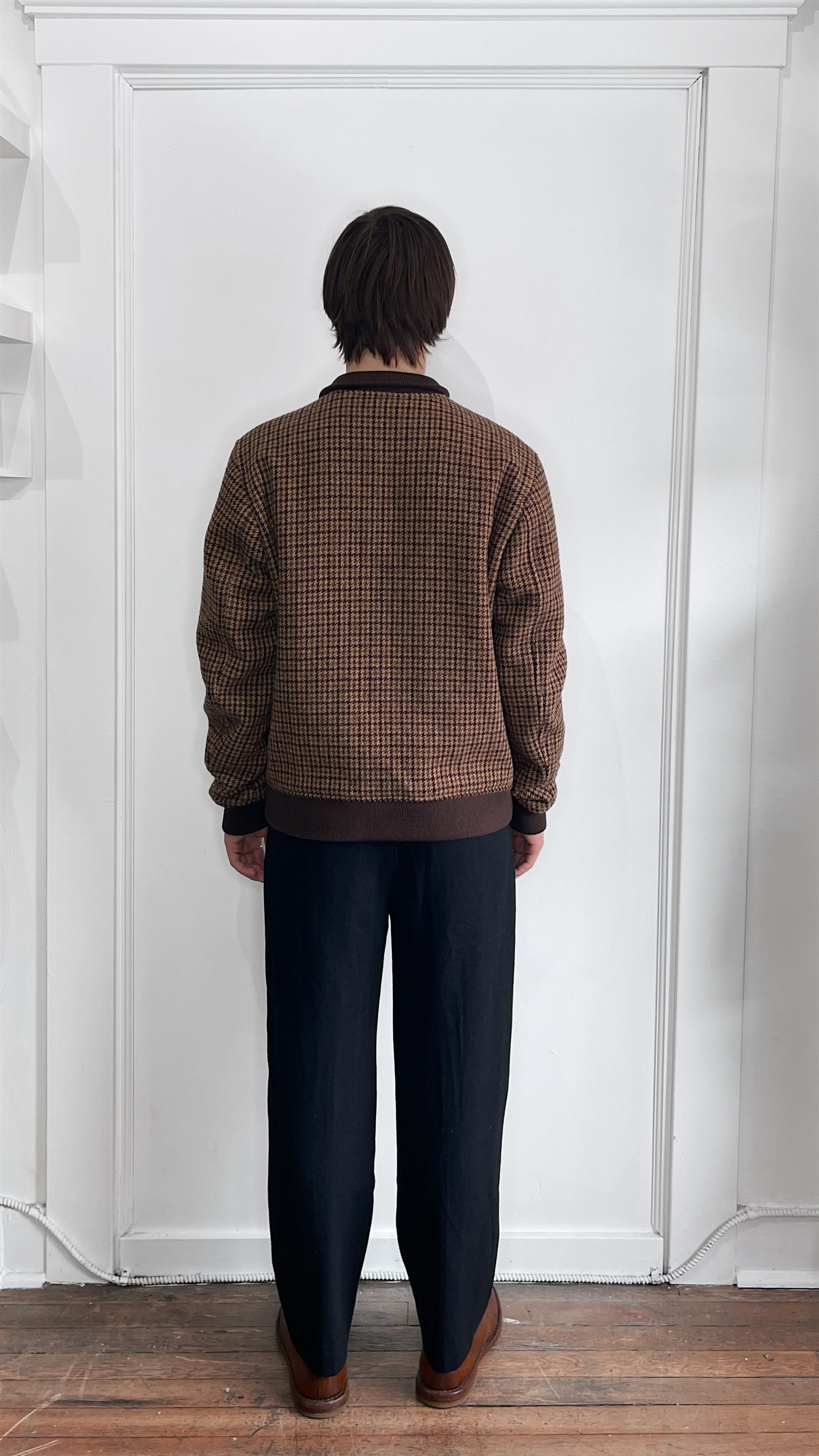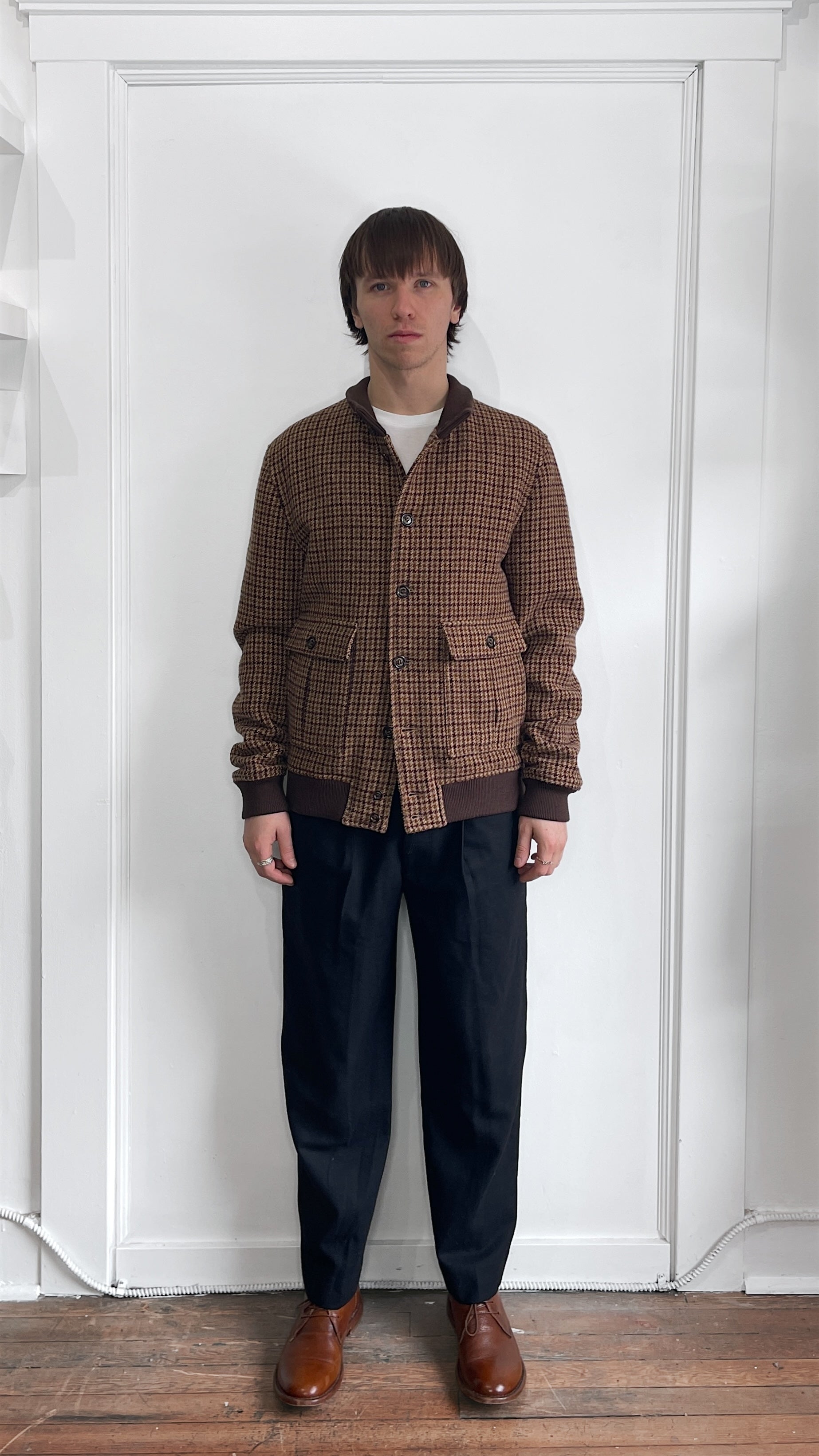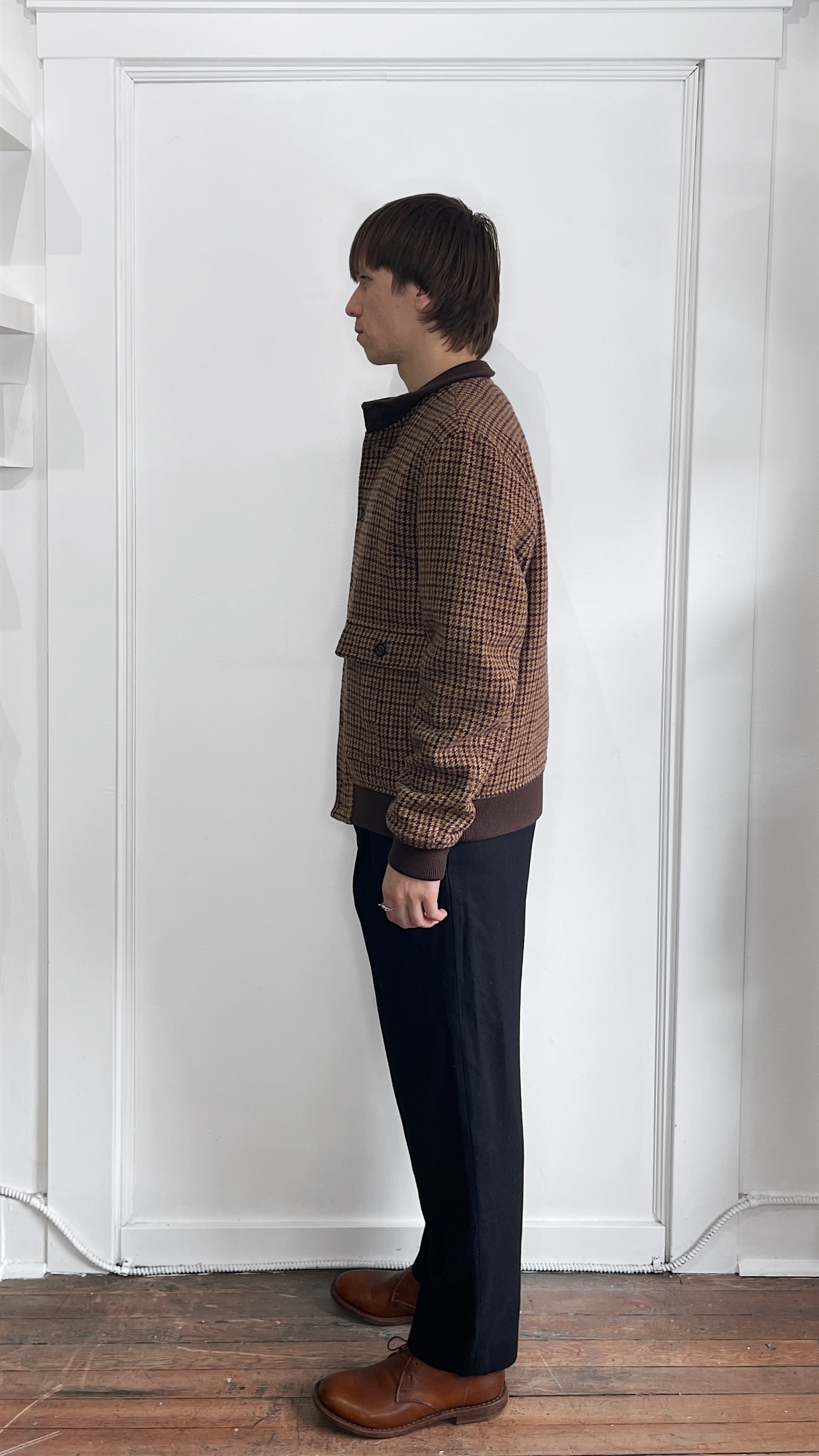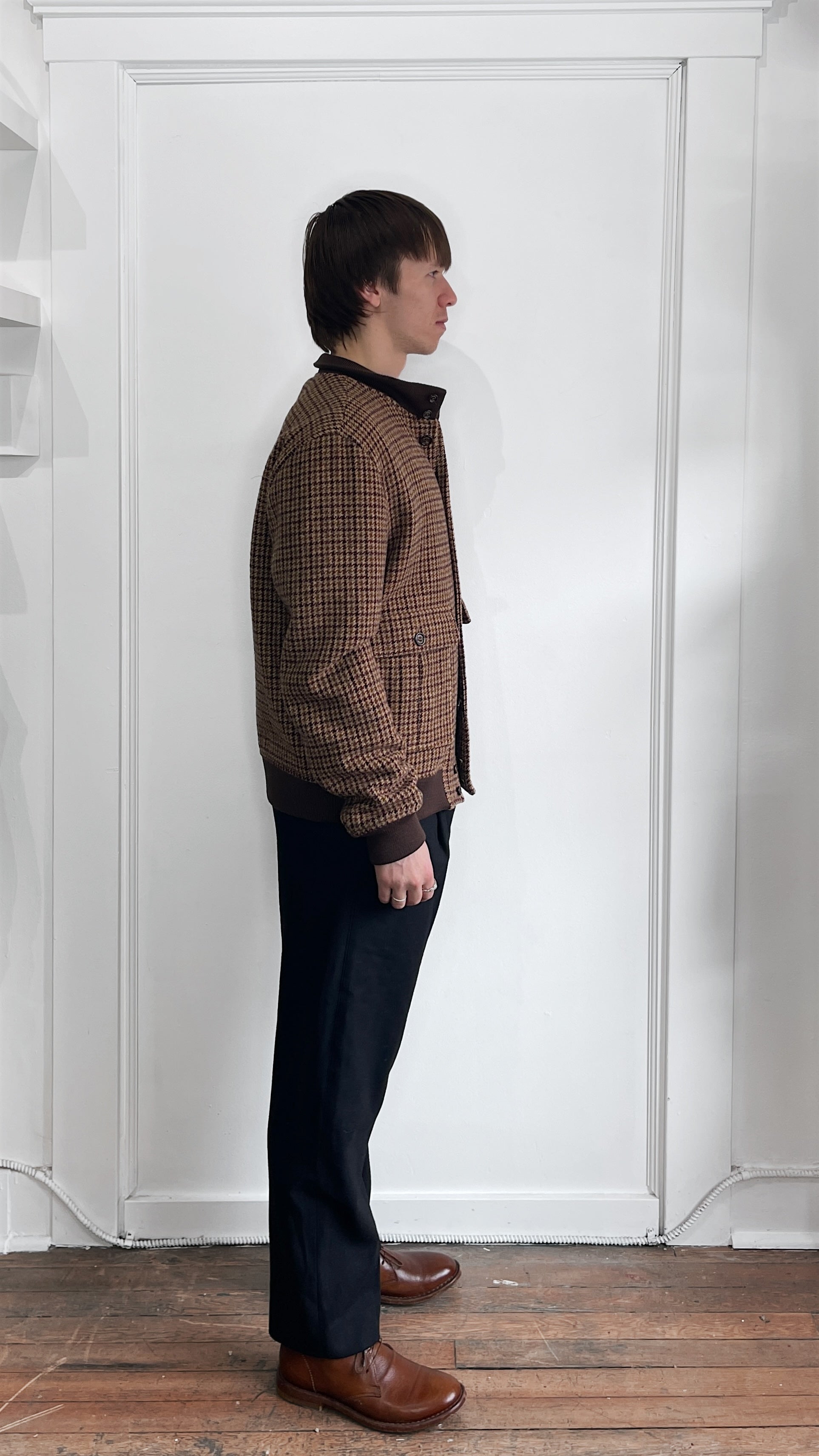 Item: Valstar Multi Brown Houndstooth Plaid Wool Bomber Jacket 42