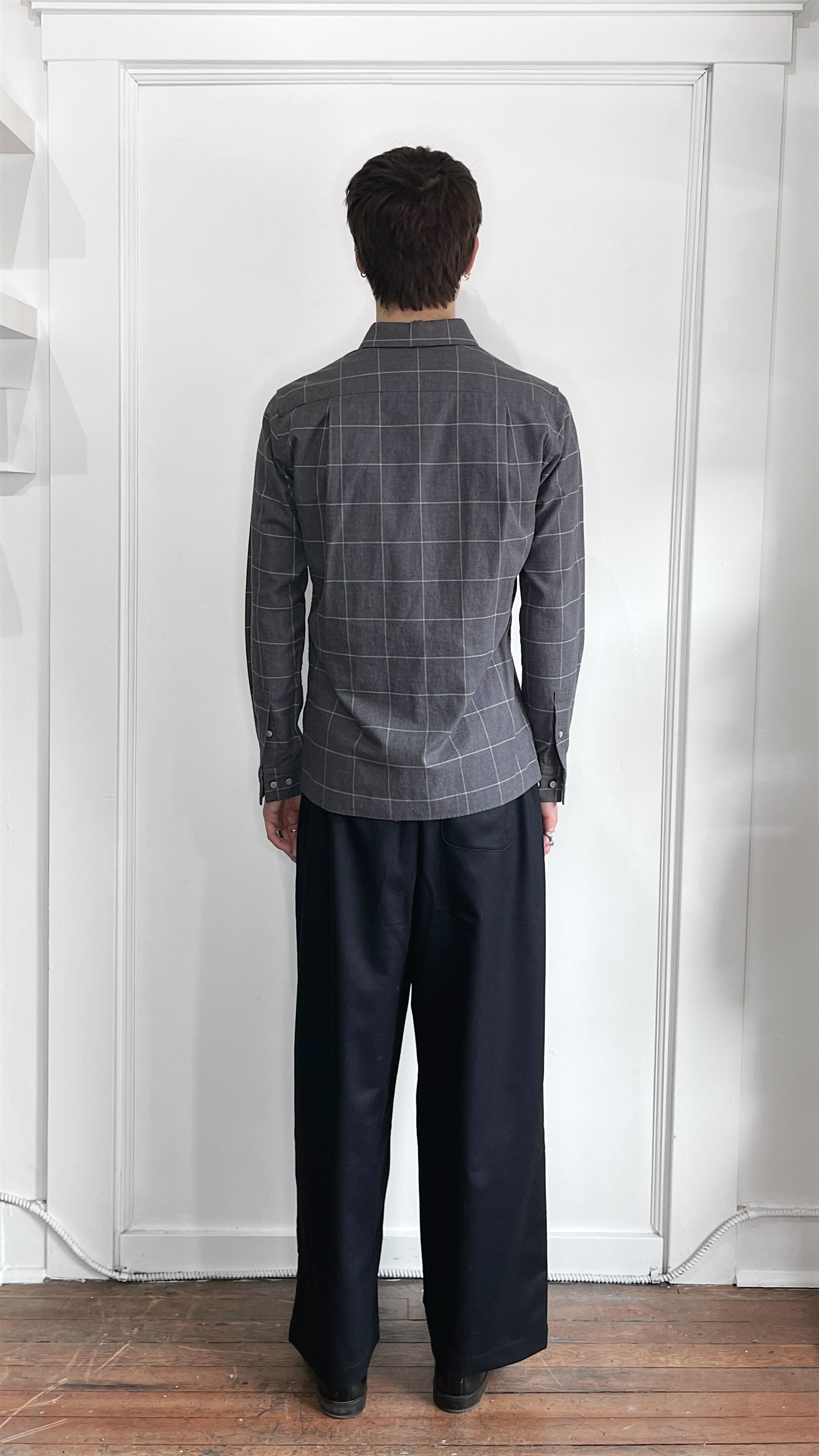 Wings + Horns Grey & White Windowpane Brushed Cotton Flannel Small