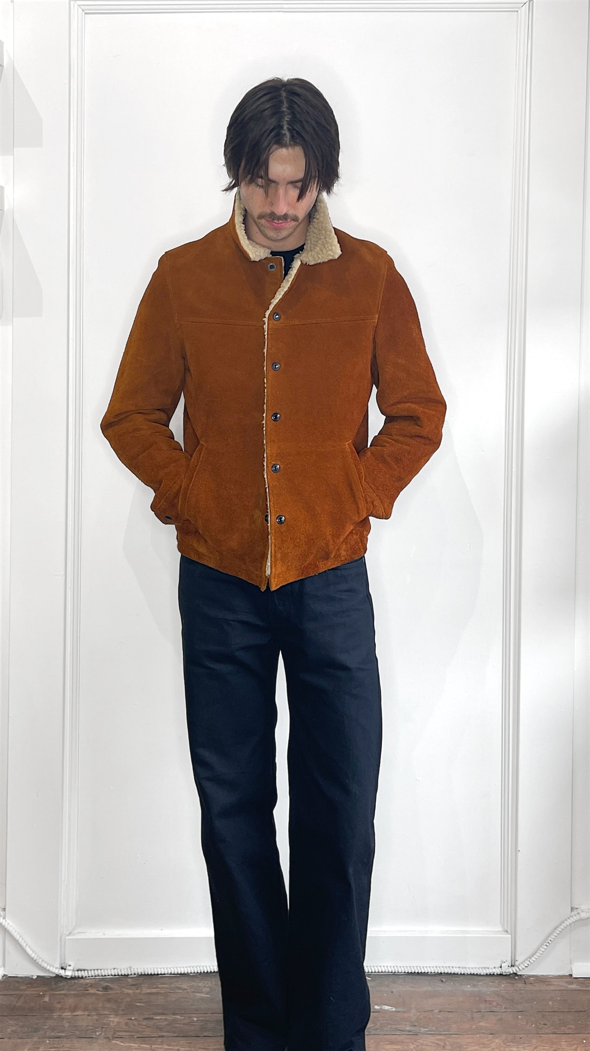 Y'2 Leather Brown Steer Suede Ranch Coat 38