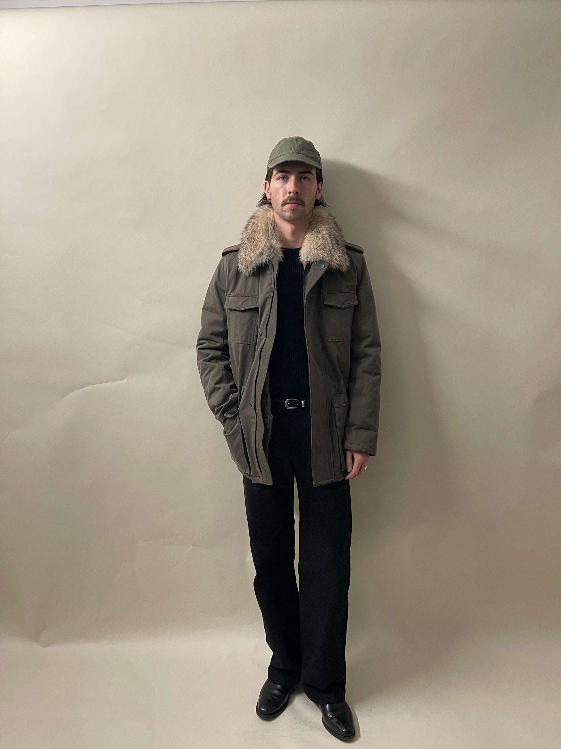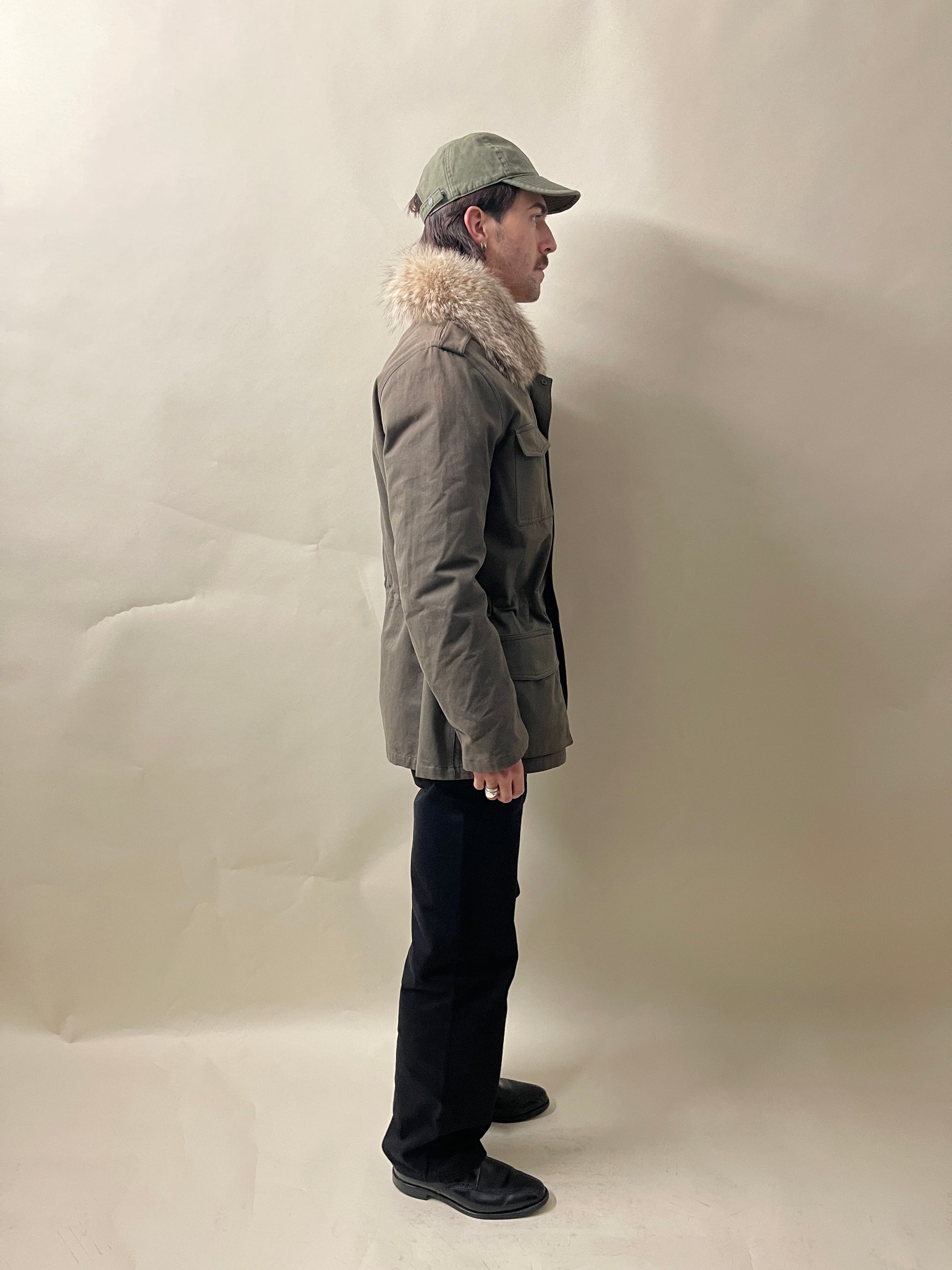 Materials: Cotton Outer, Coyote Fur Collar, Removable Rabbit Fur Liner