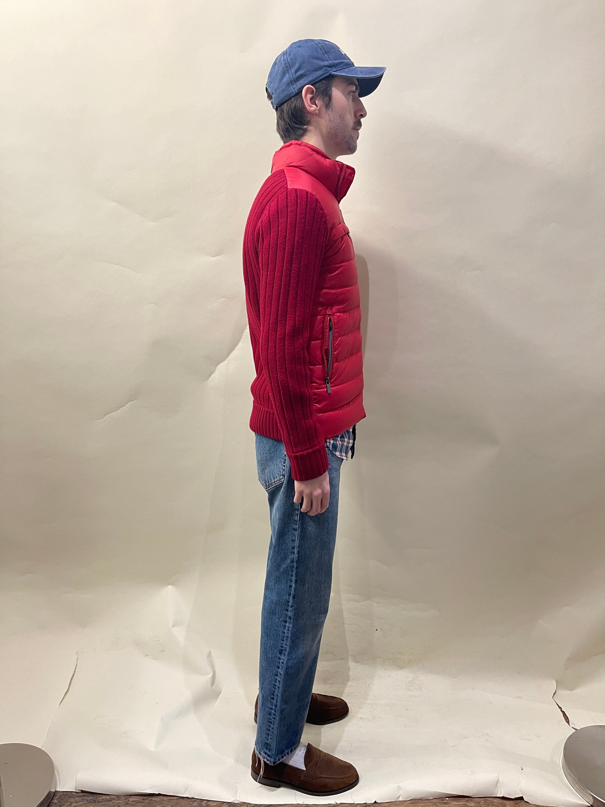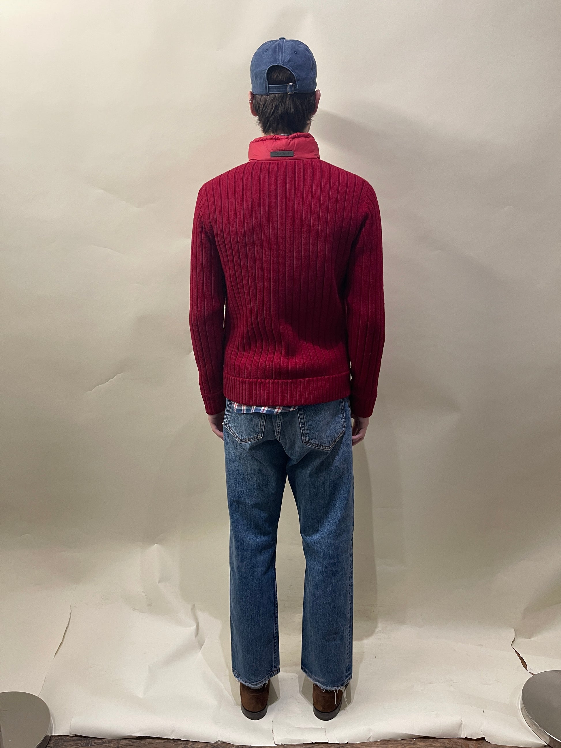 ZegnaSport Red Knit Wool Jacket W/ Down Filled Front Panel Medium - Made in China